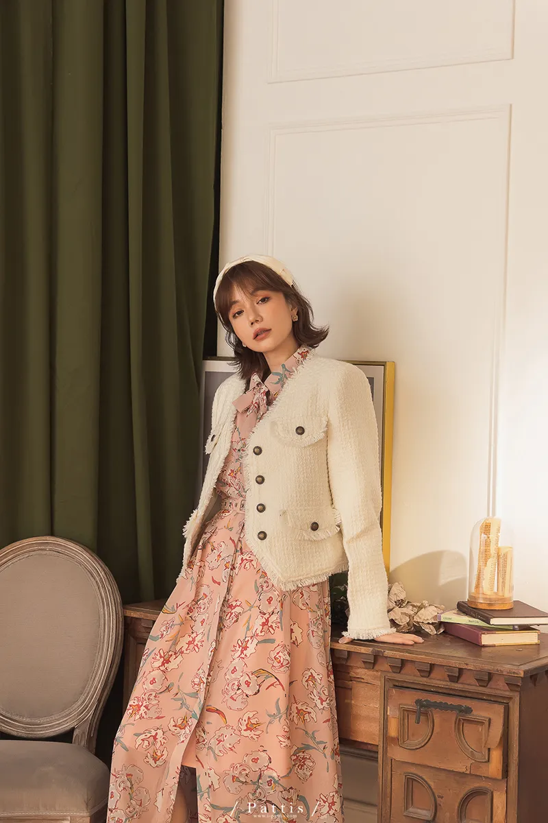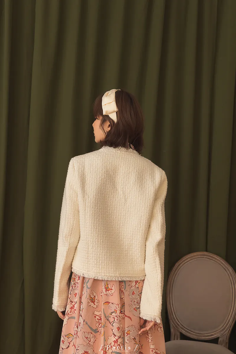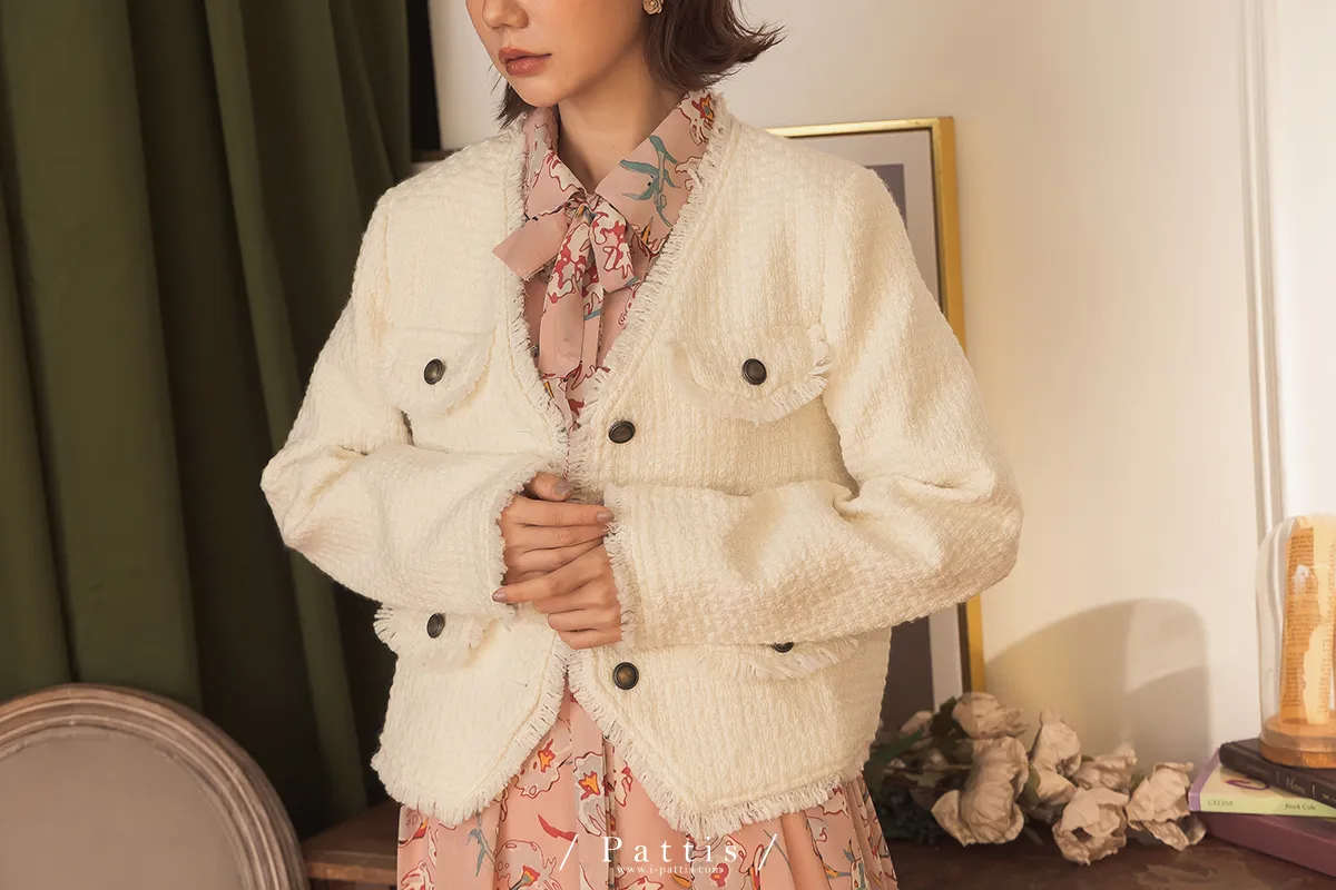 大人物傲氣 | 流蘇不收邊小香風毛料外套(白)