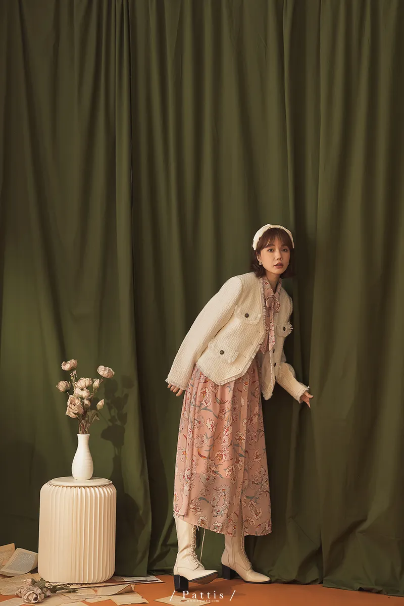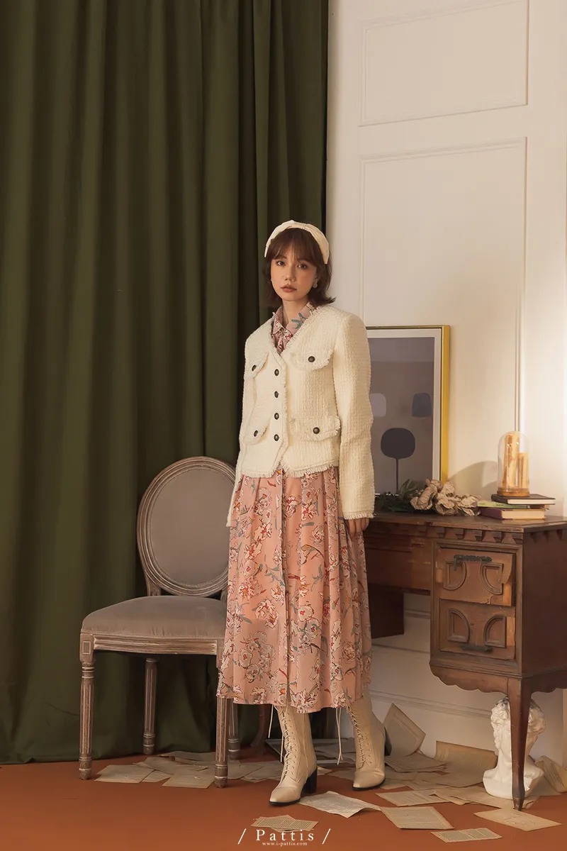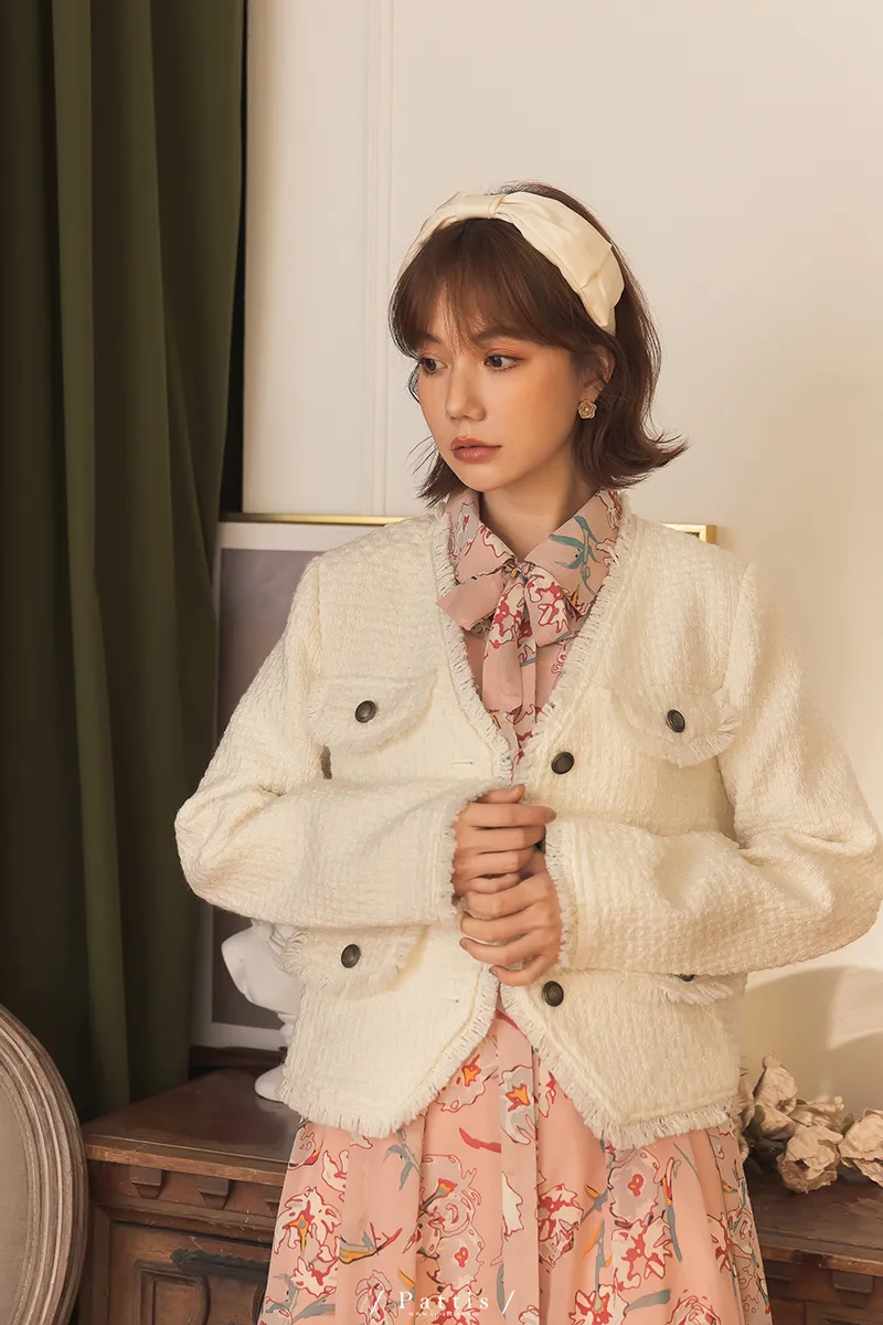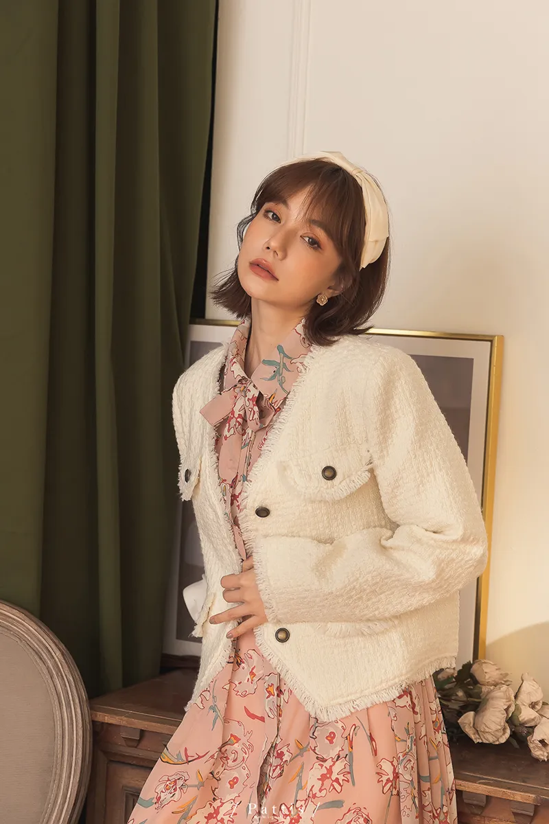 大人物傲氣 | 流蘇不收邊小香風毛料外套(白)