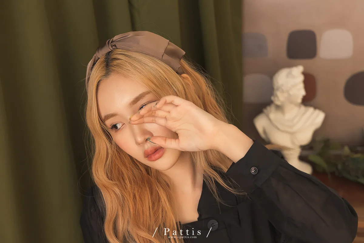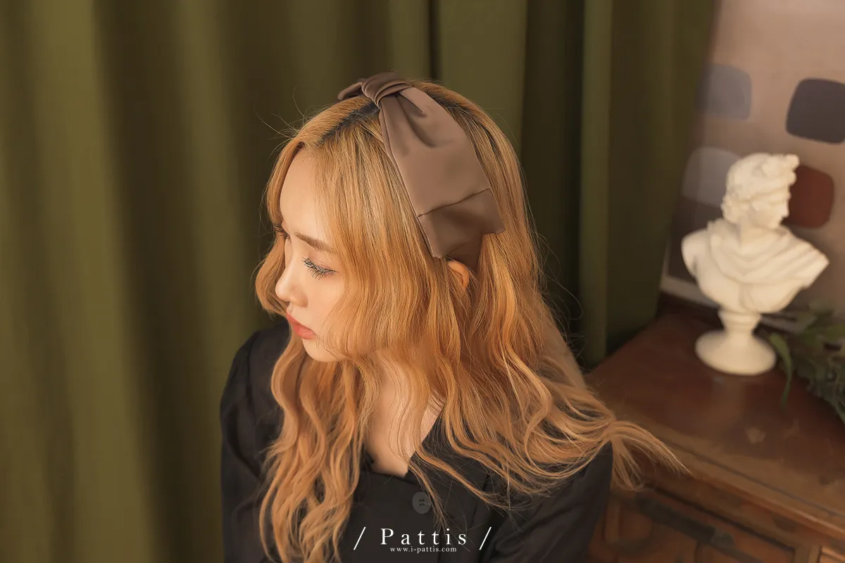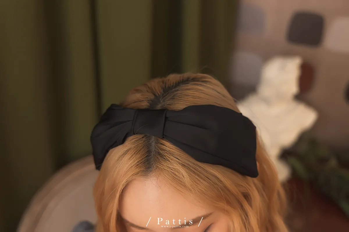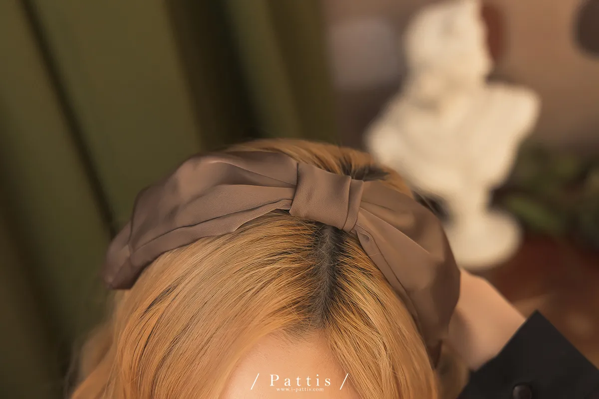 英國腔 | 緞面抓皺蝴蝶結髮箍(米白/棕綠/黑)