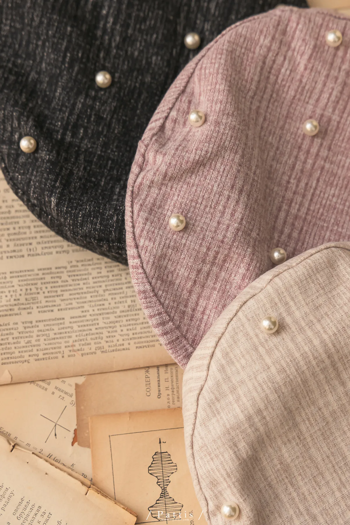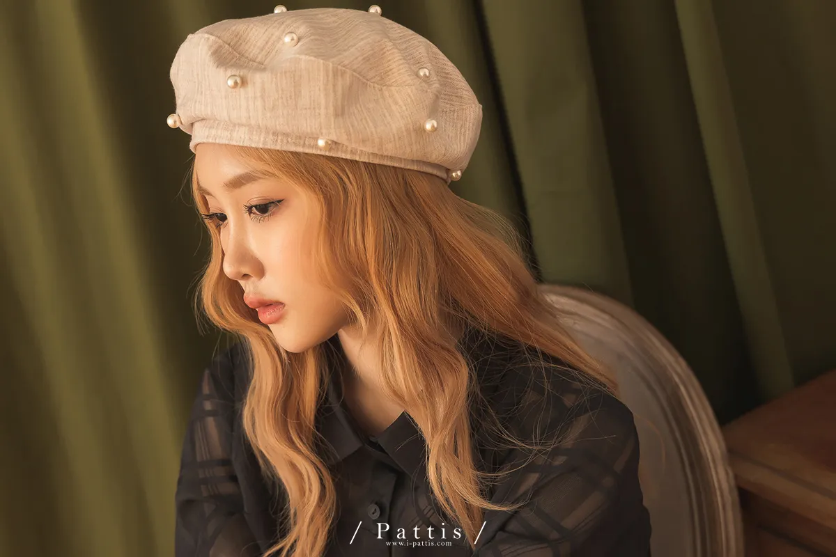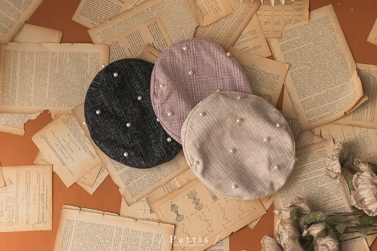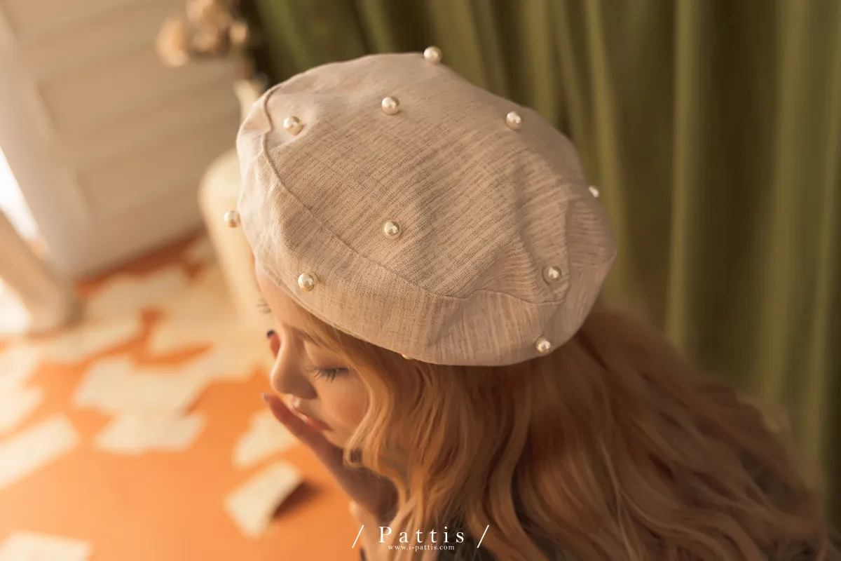 巴黎日光漫走 | 綴珍珠仿毛呢紋路貝蕾帽(米灰/粉/黑)