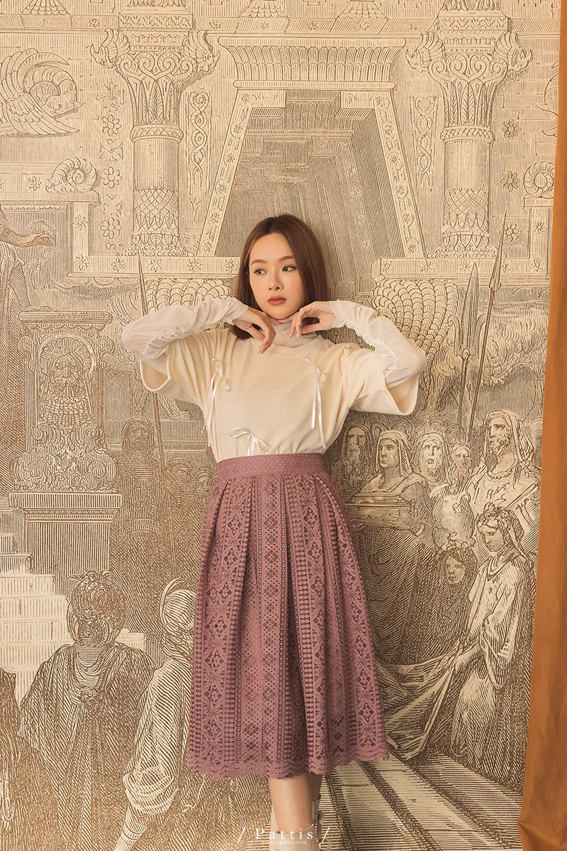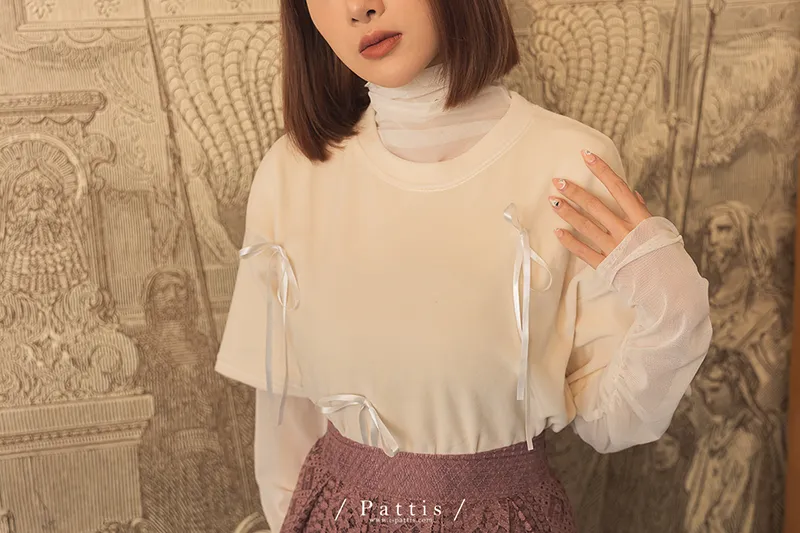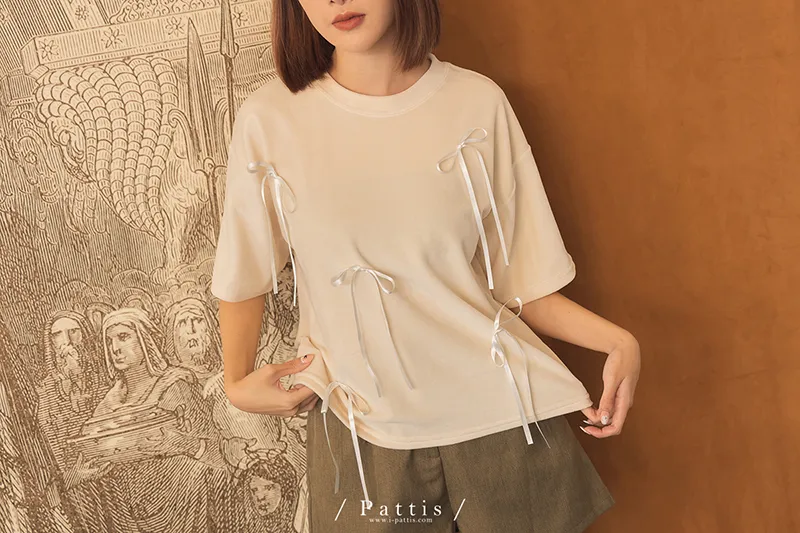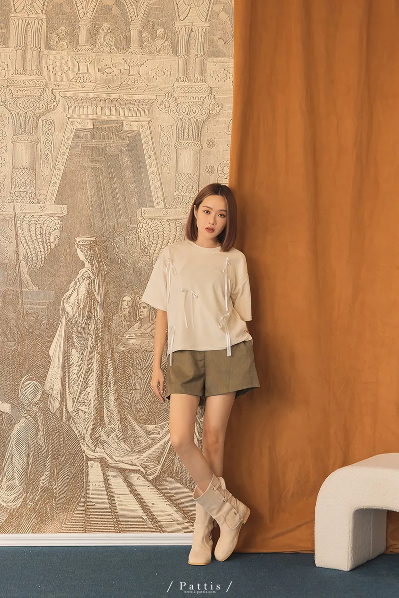 麗莎說糖度正好 | 蝴蝶結造型絨布短袖上衣(米杏)