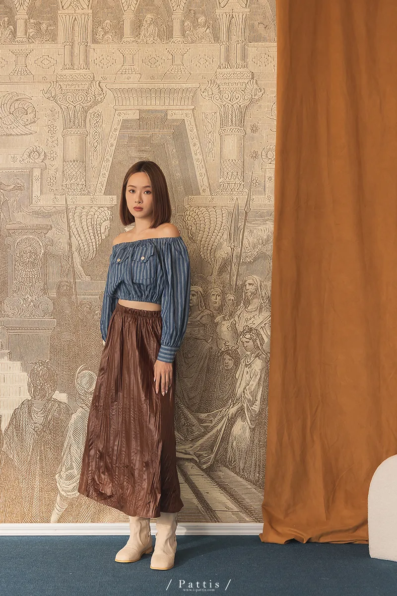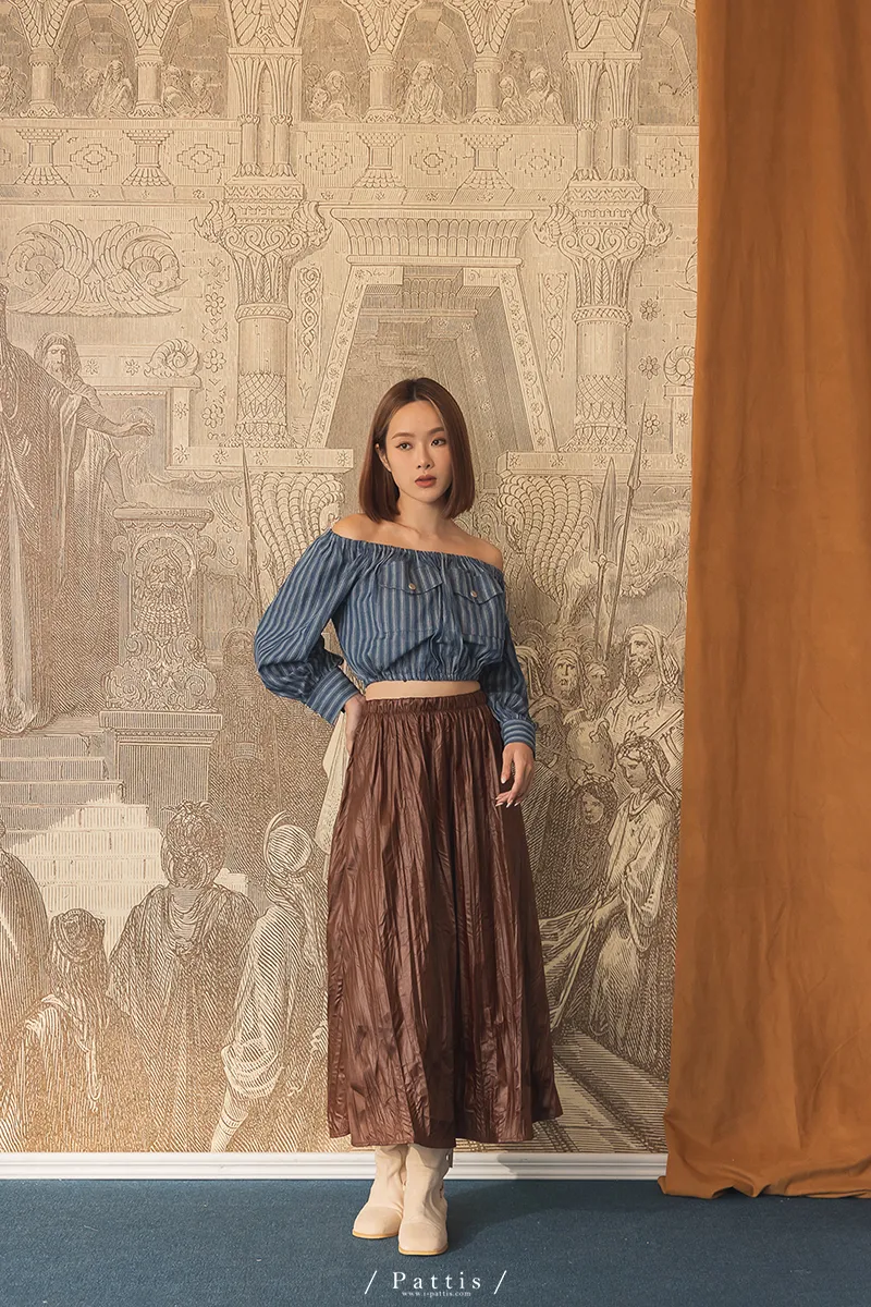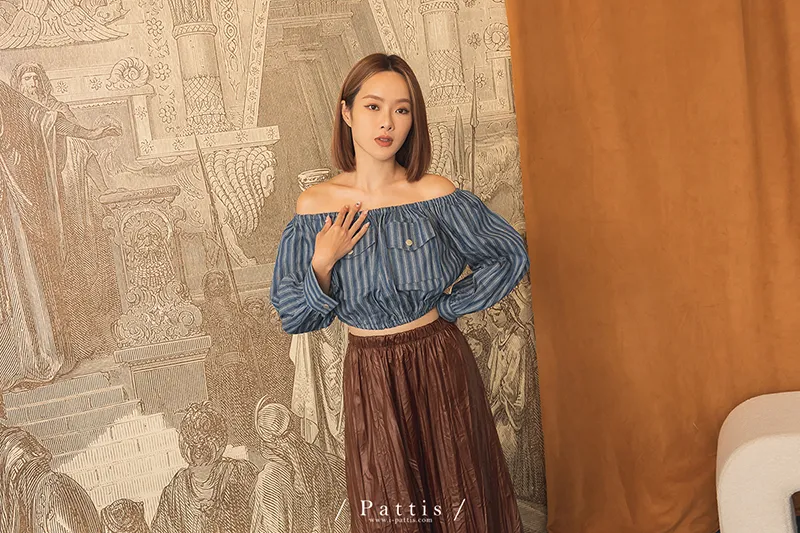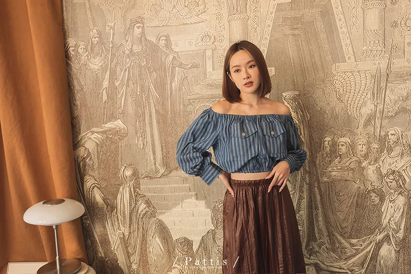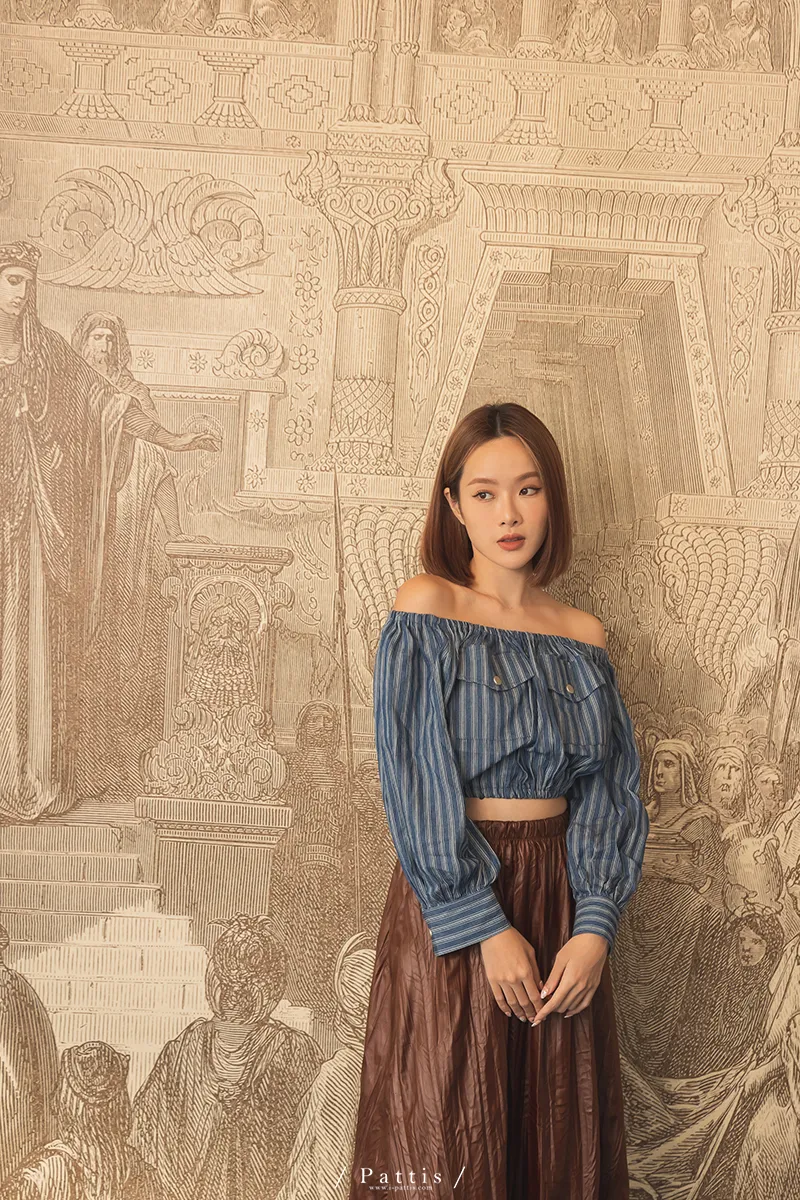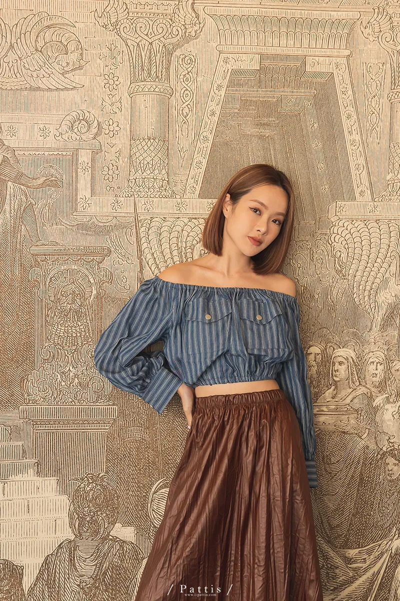 (限量)*特*雙口袋條紋短版上衣(深藍)