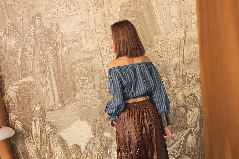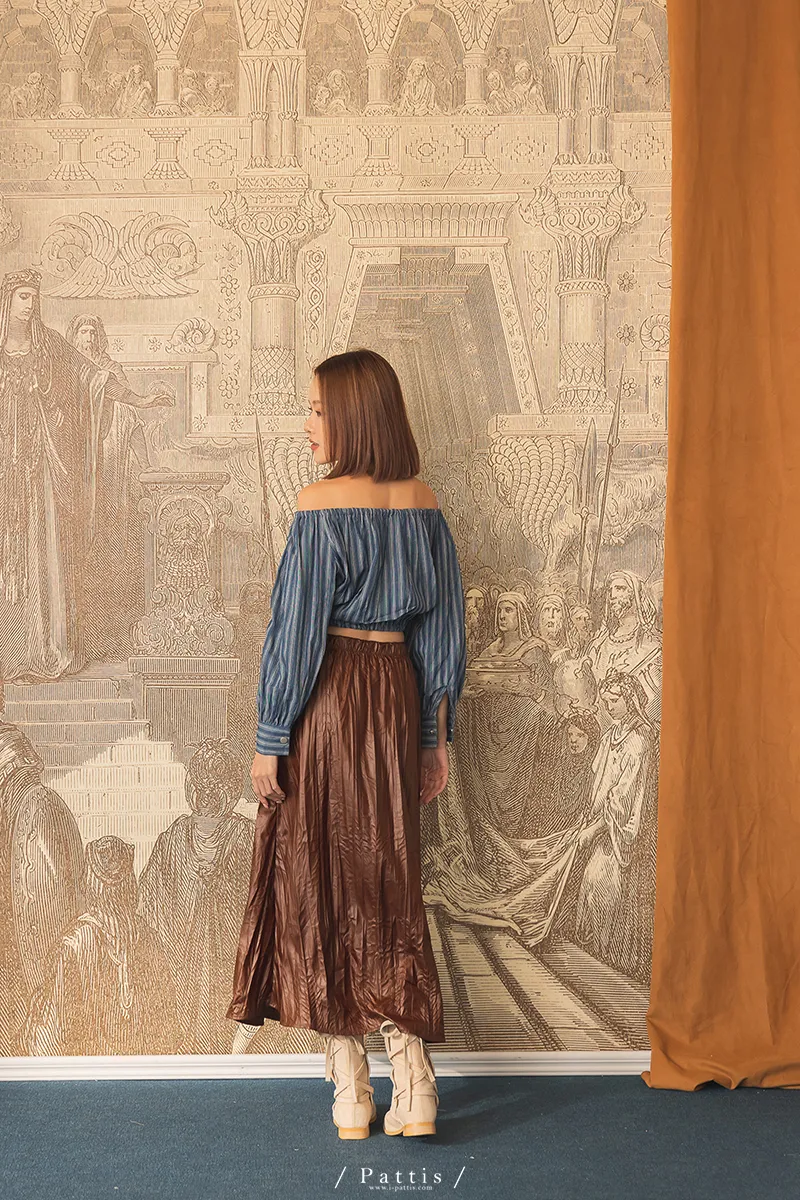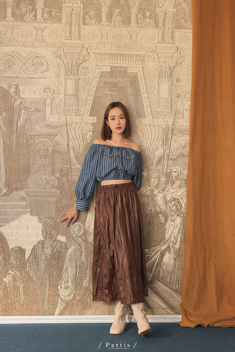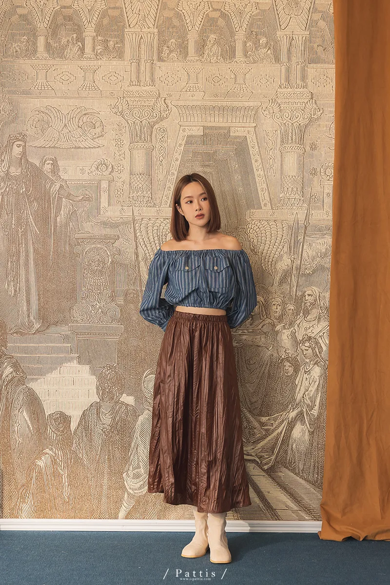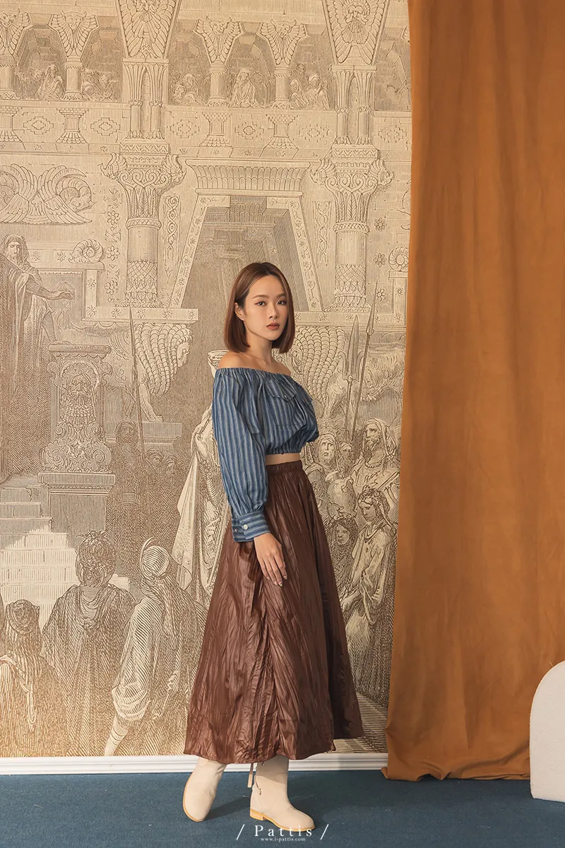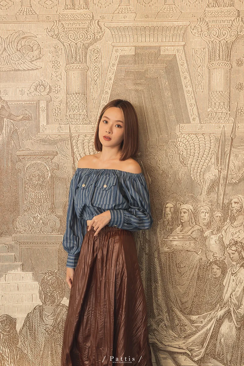 (限量)*特*雙口袋條紋短版上衣(深藍)