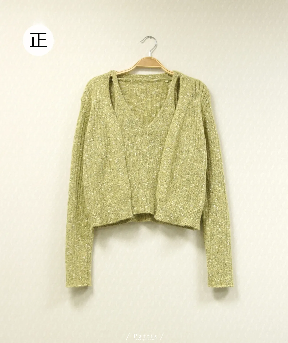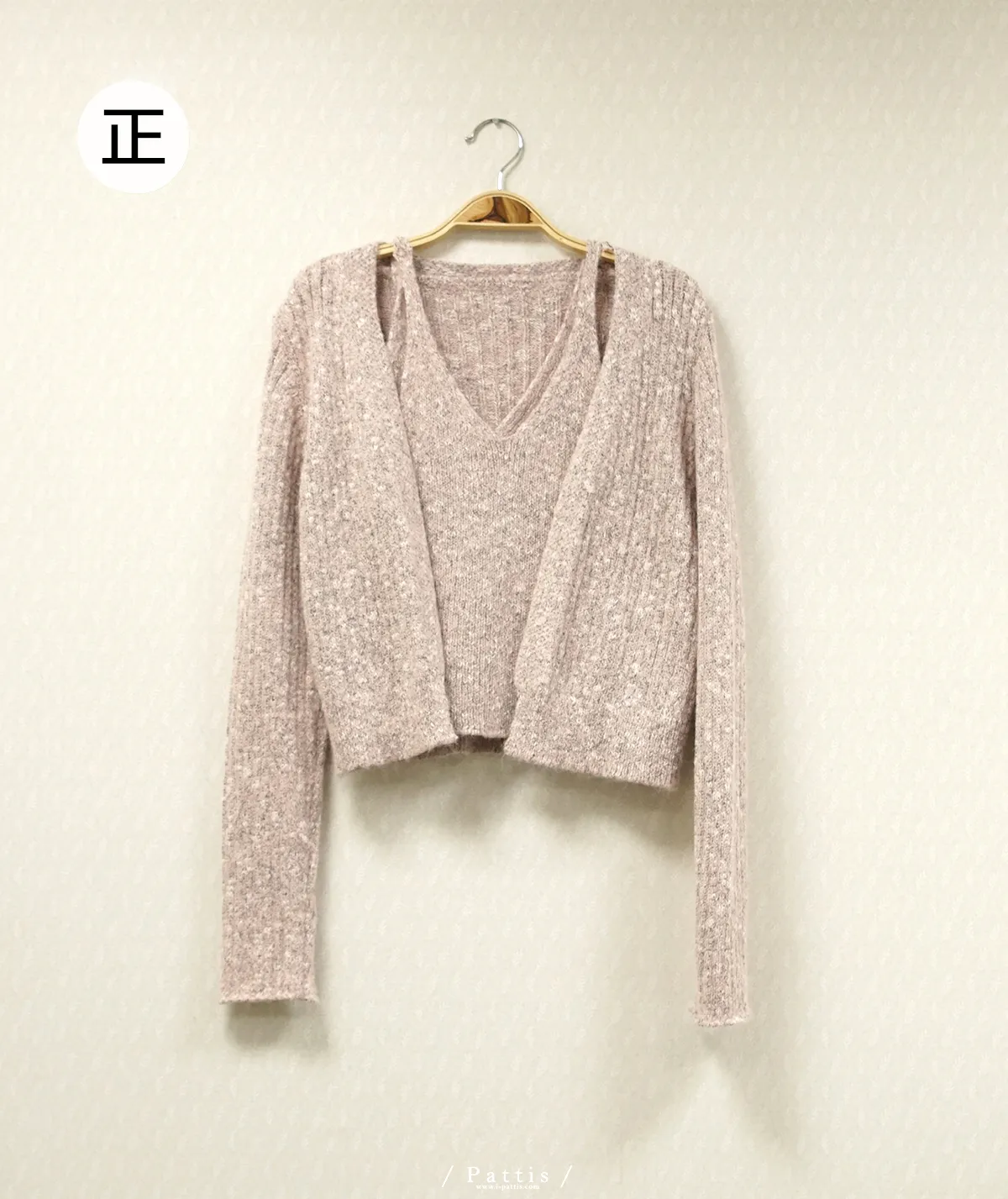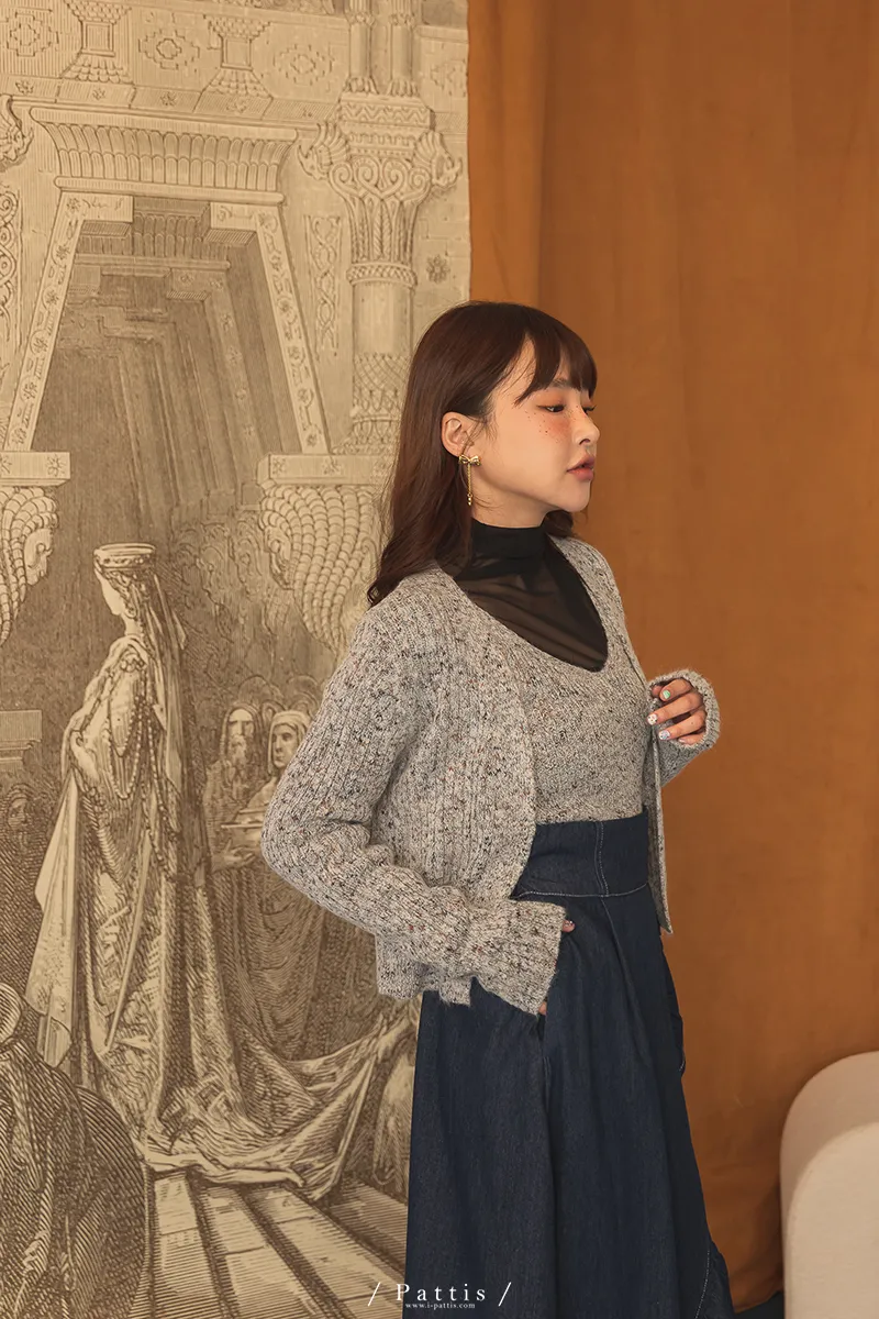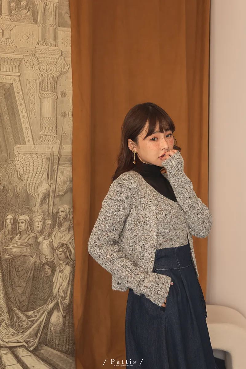 *特*混色V領毛織背心+外套set組(淺灰/粉/淺綠)