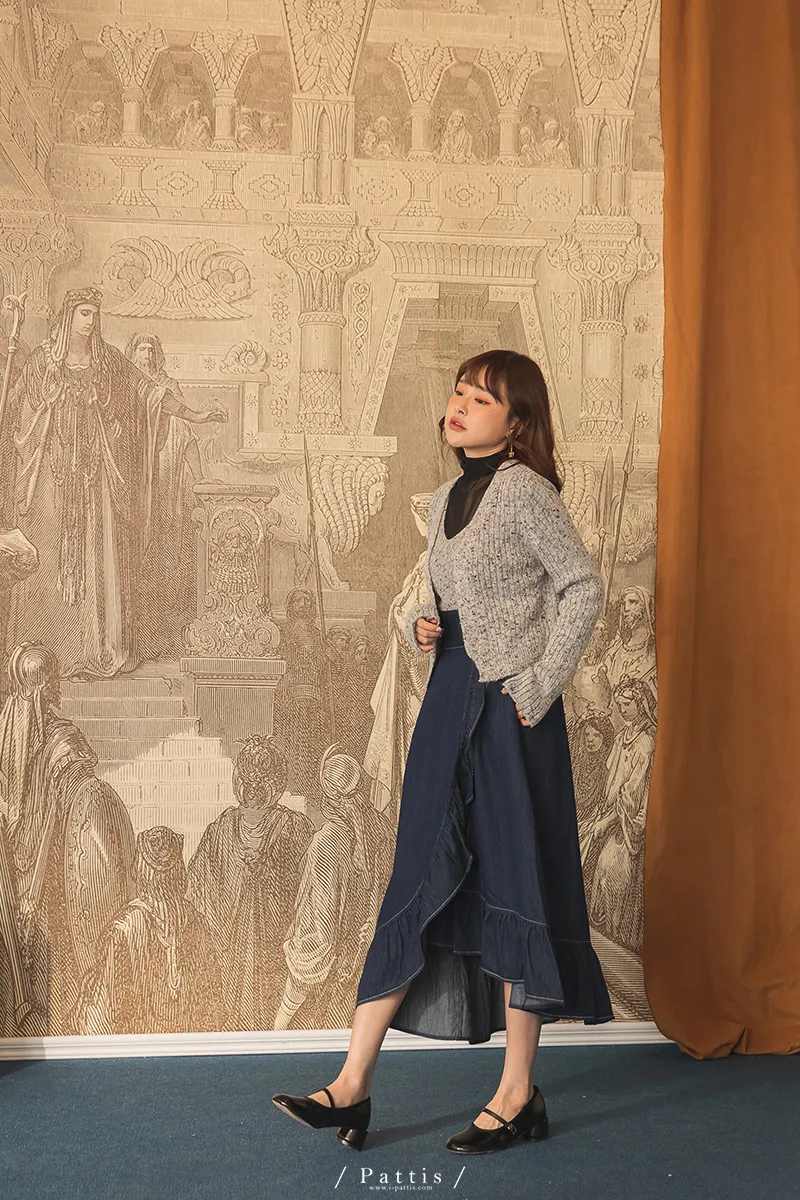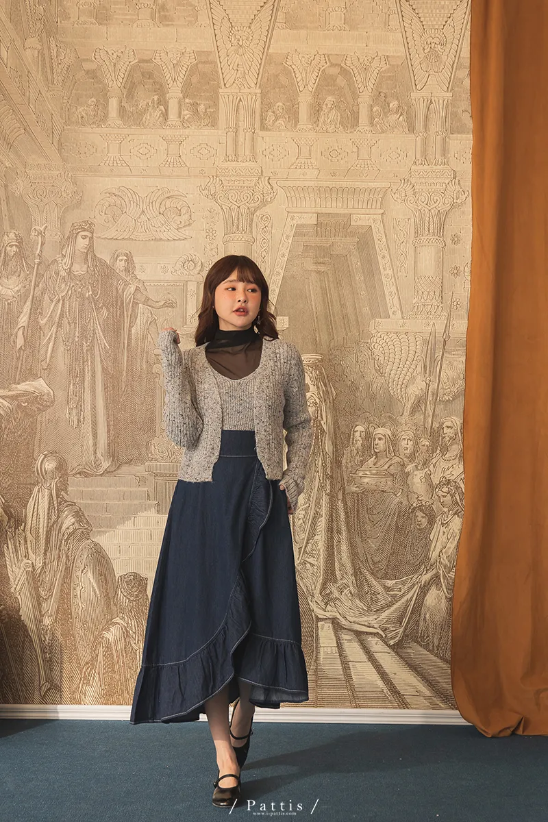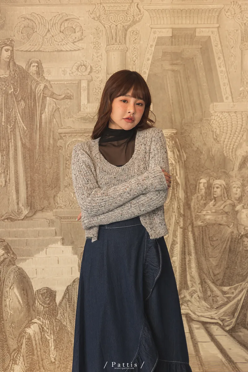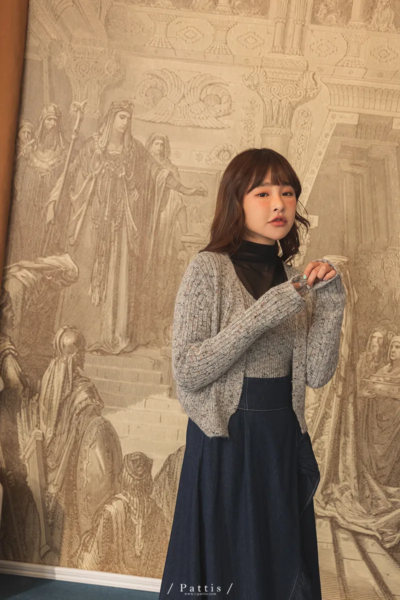 *特*混色V領毛織背心+外套set組(淺灰/粉/淺綠)