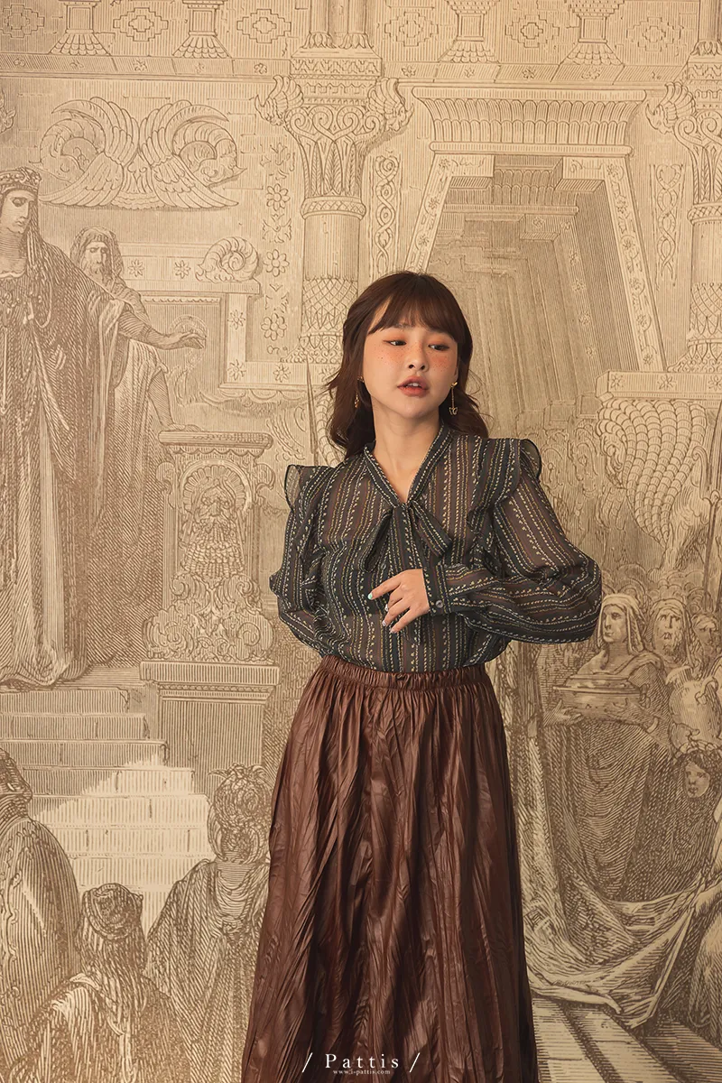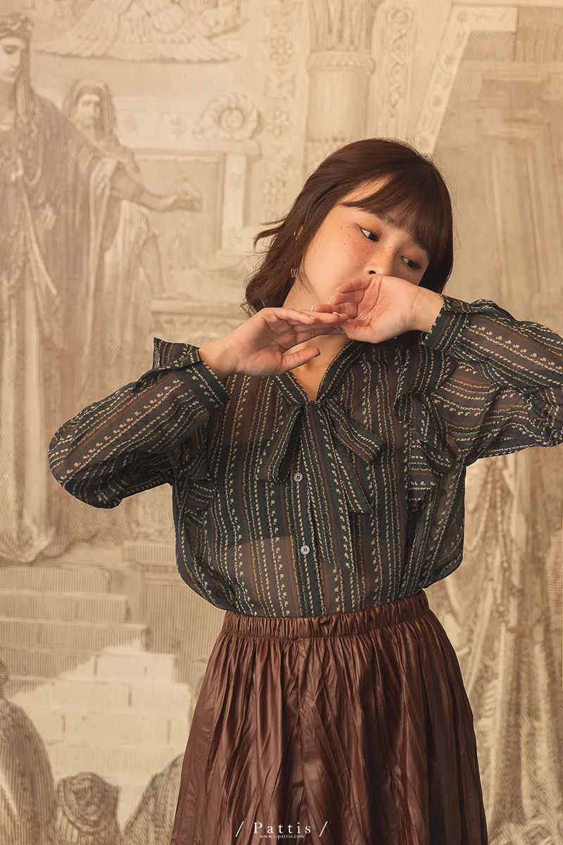 | F | 59 | 42 | 52 | 58 | 59 | 10(有袖扣) | 16 | 25 | 雪紡 | 無 | 前鈕扣全開 | 領口綁帶不可拆 |