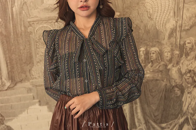 點點荷葉綁帶雪紡上衣(綠)
