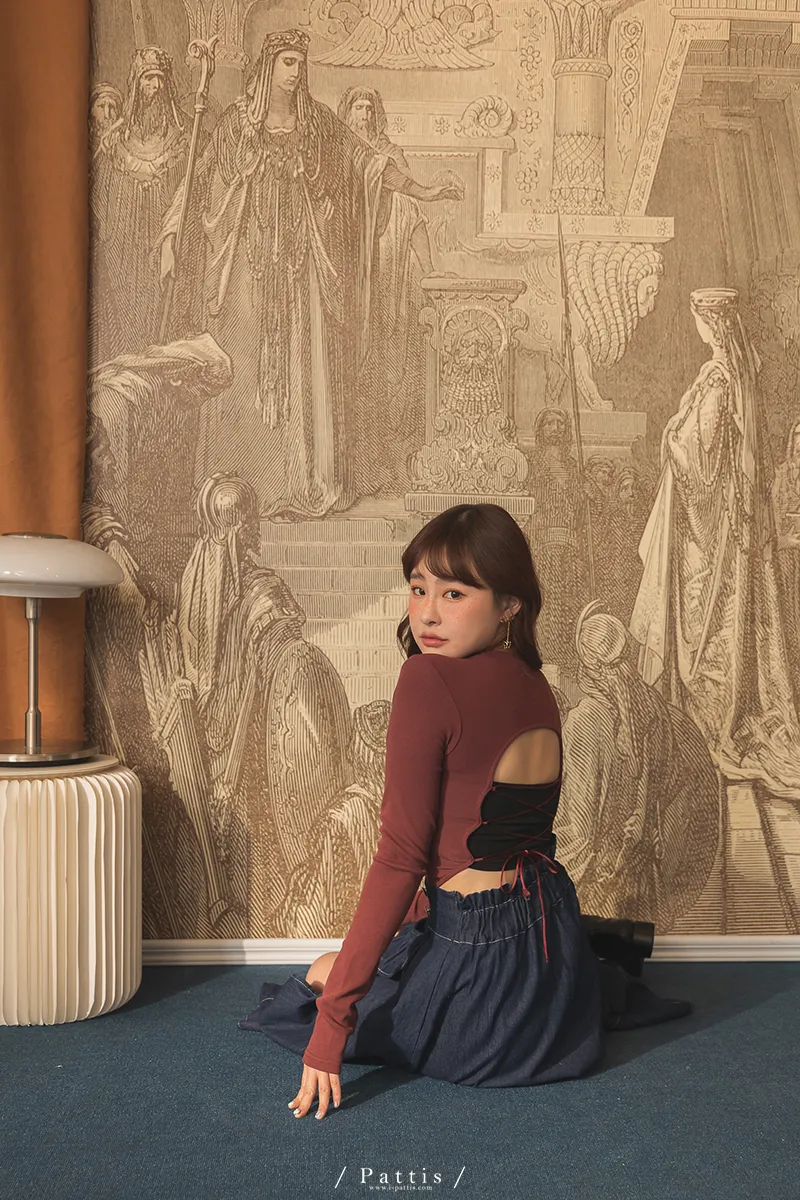 *特*後交叉綁帶美背長袖BRATOP(紅)