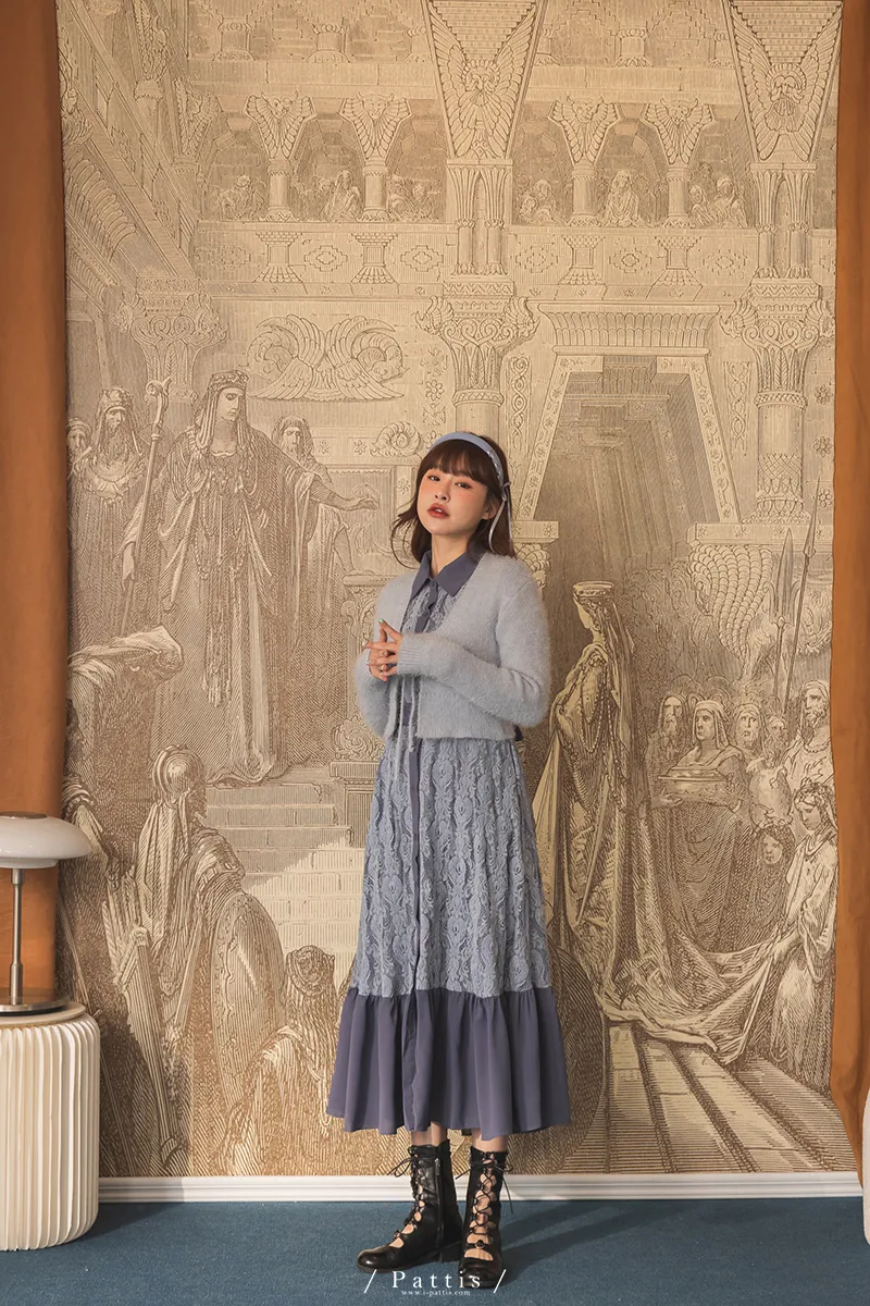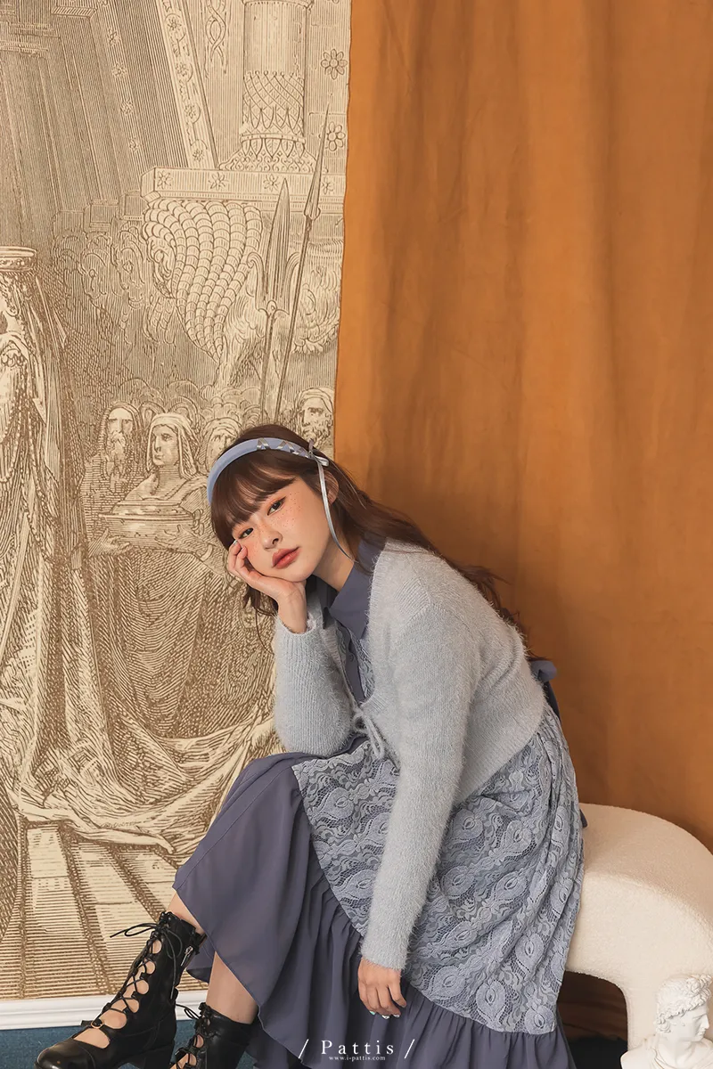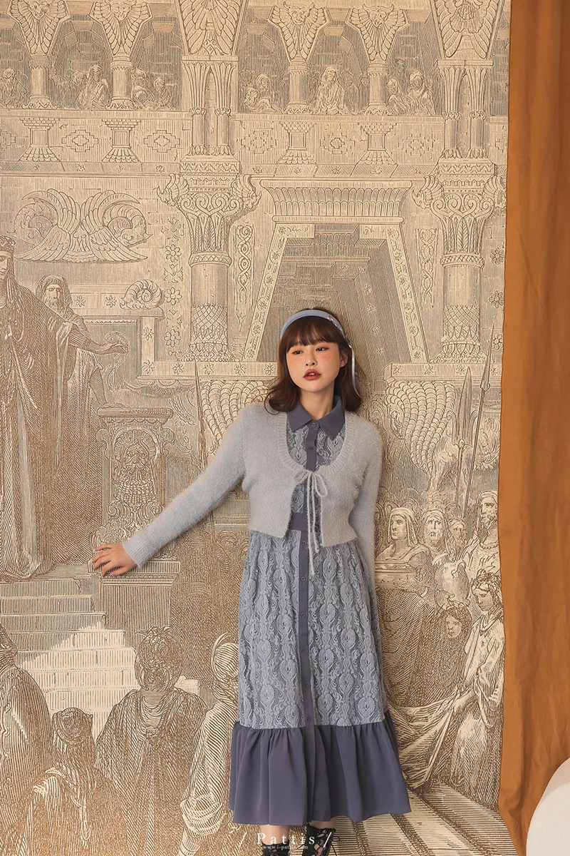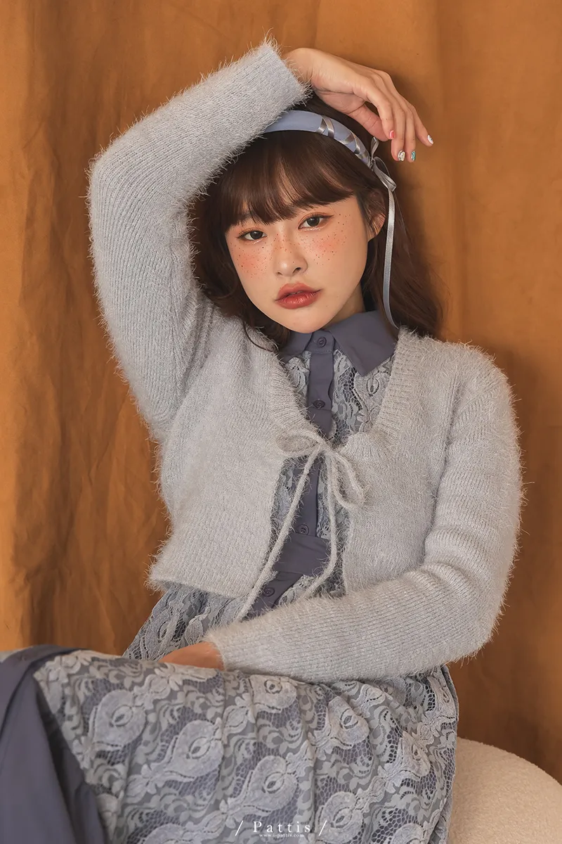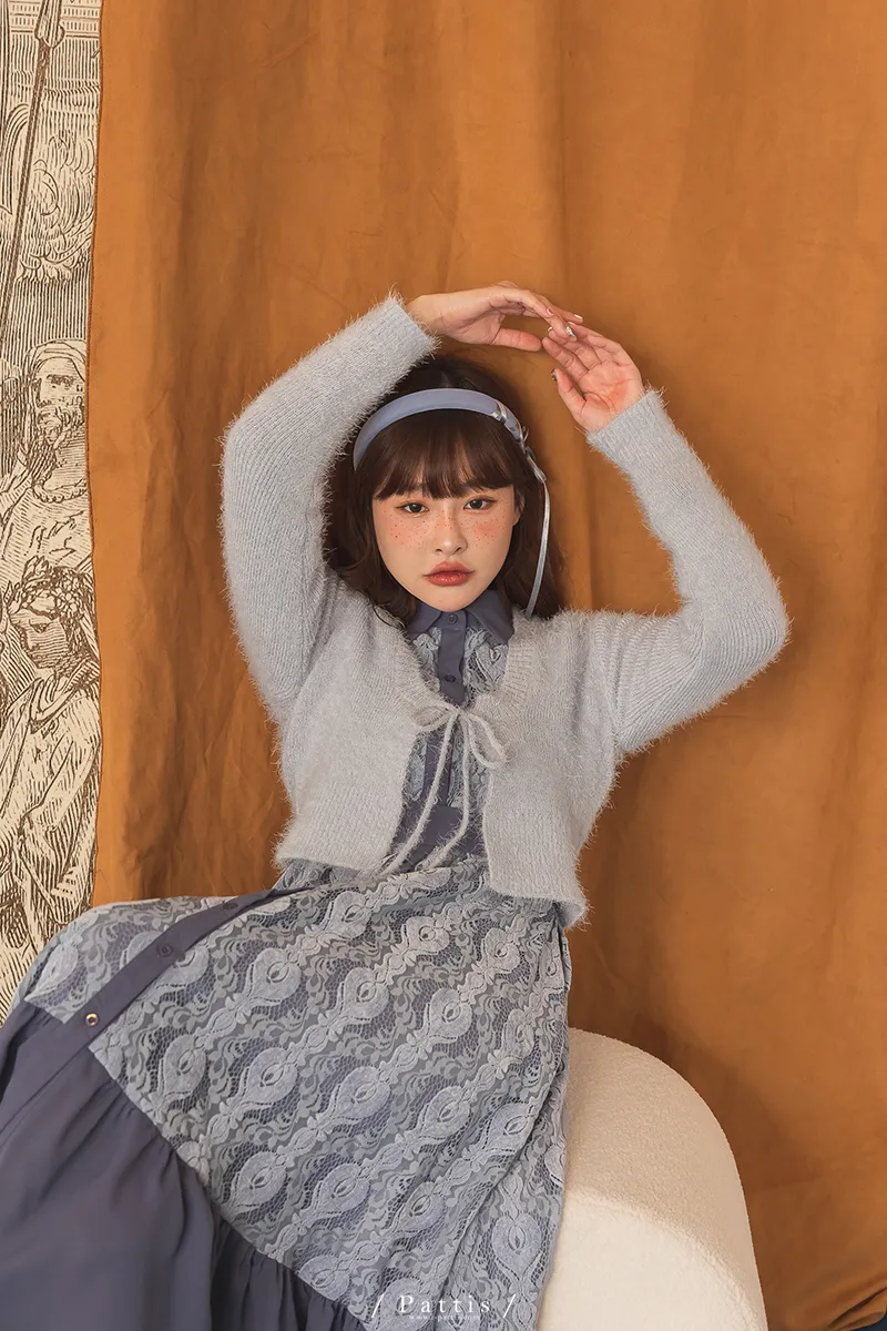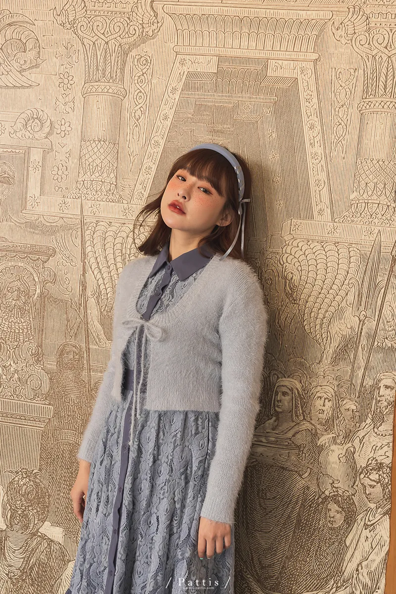 與珊瑚礁吻別 | 軟毛短版綁帶外套(淡灰藍)
