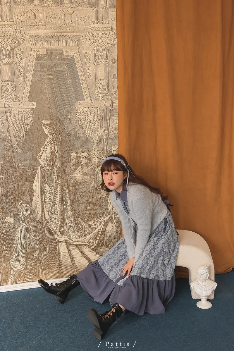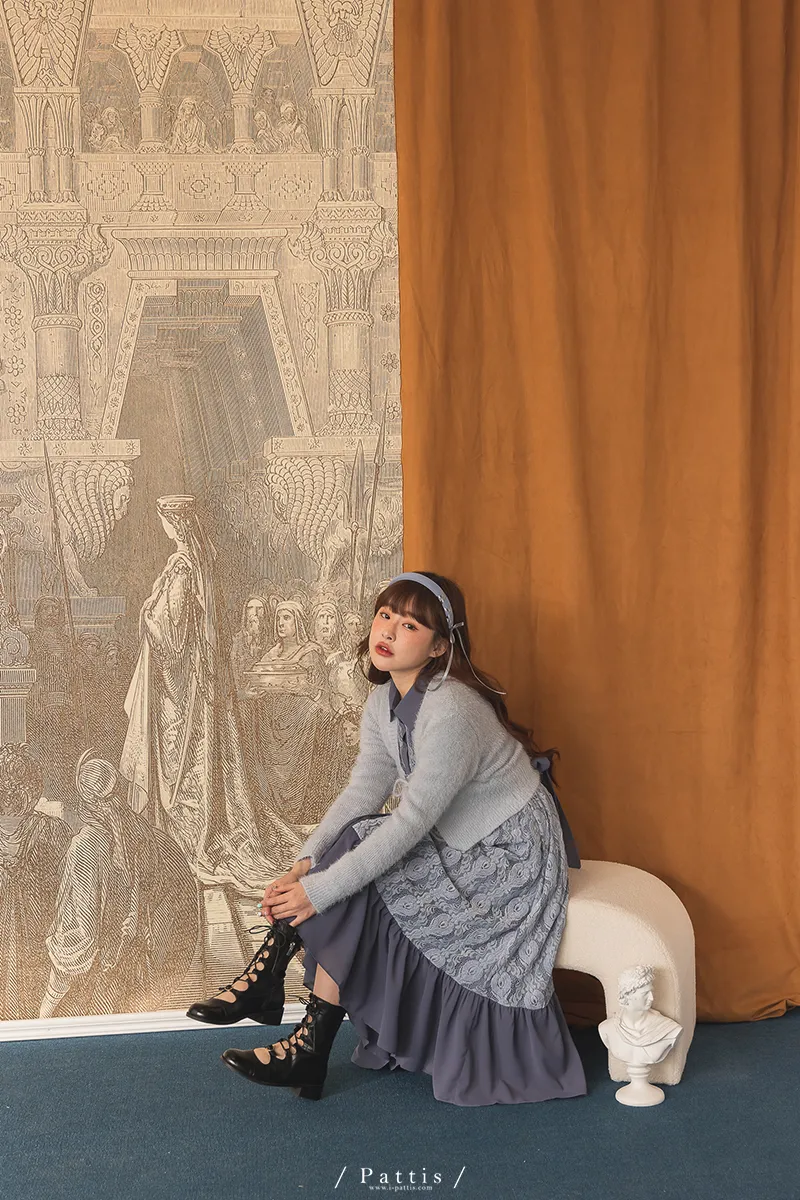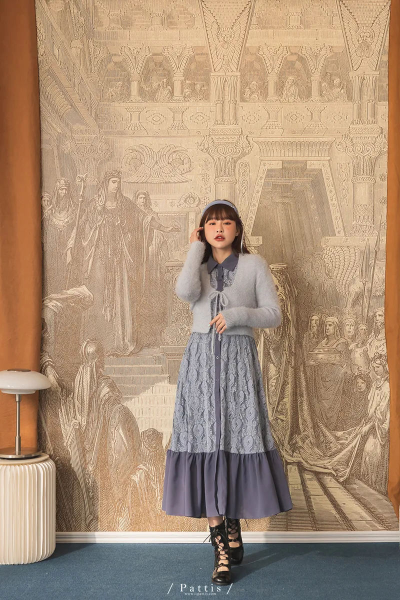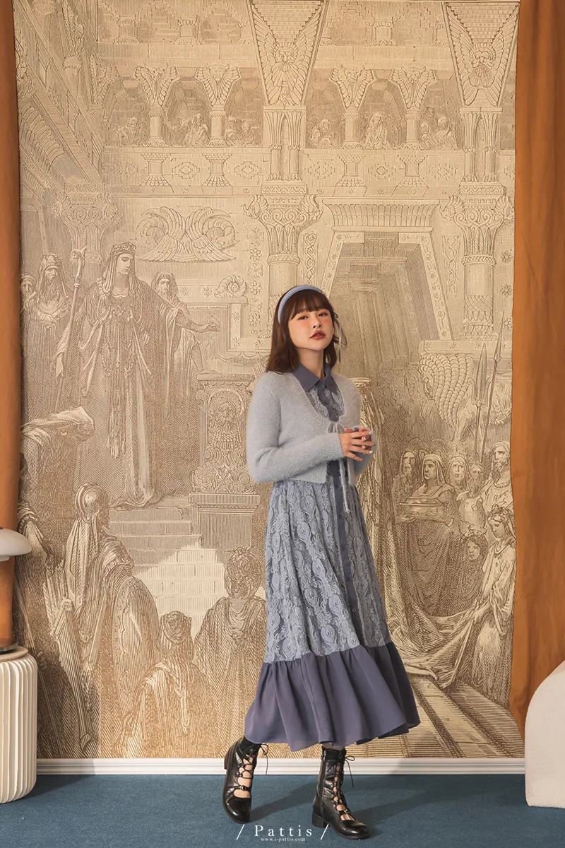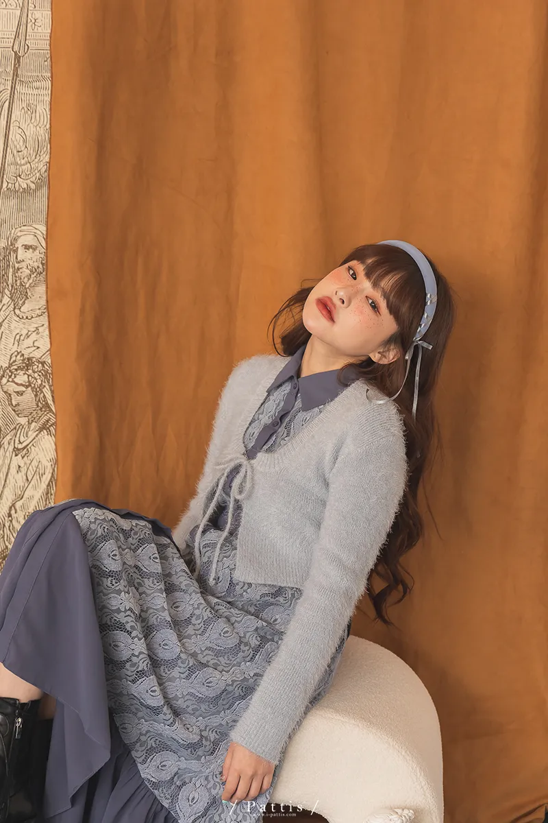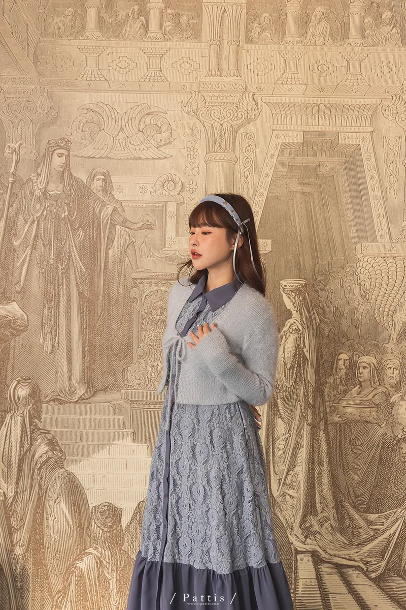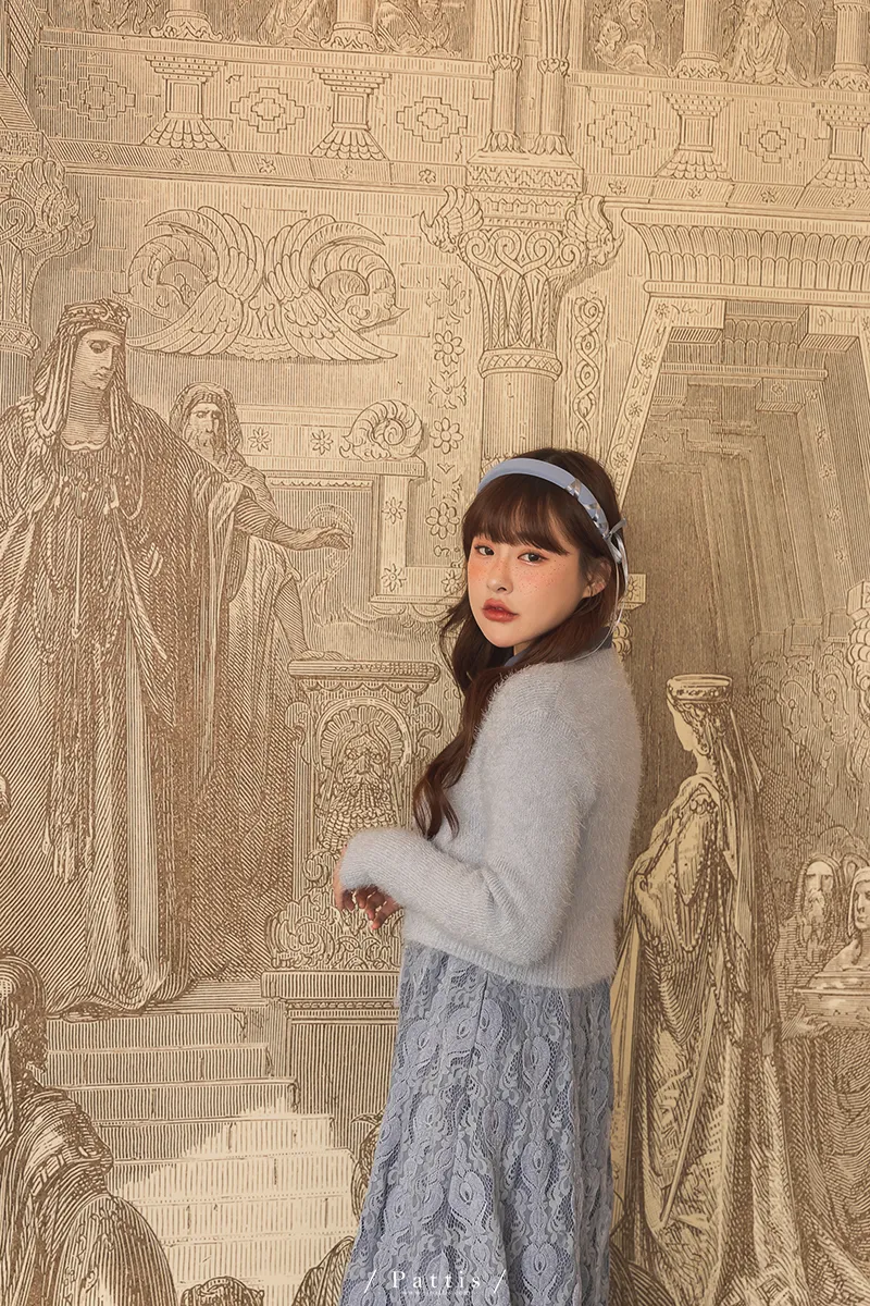 與珊瑚礁吻別 | 軟毛短版綁帶外套(淡灰藍)
