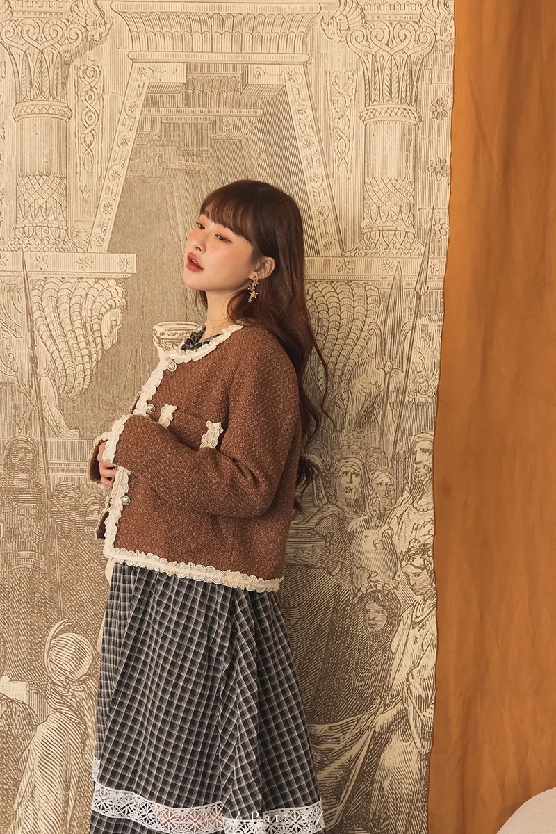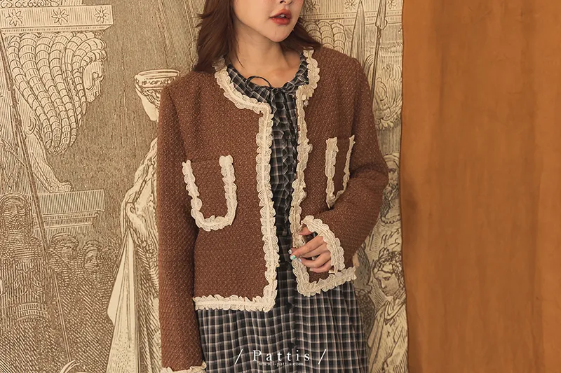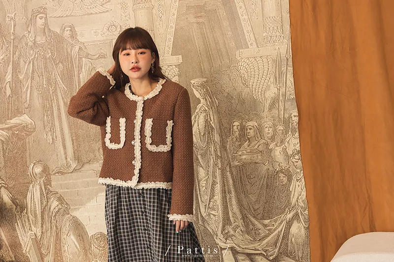 / NG品 原價$1650 /愛人的那些心思 | 荷葉花邊設計口袋外套(咖啡)