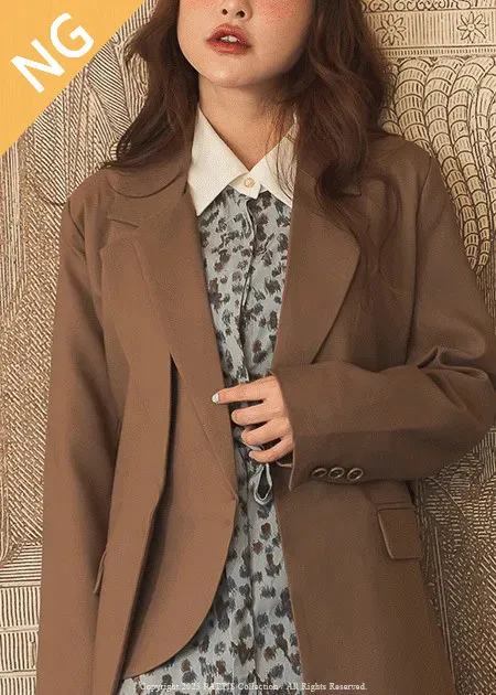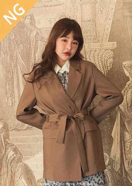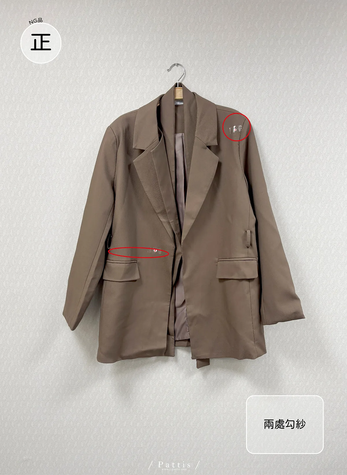 / NG品 原價$1680/ 不對稱翻領繫帶長版西裝外套(棕)