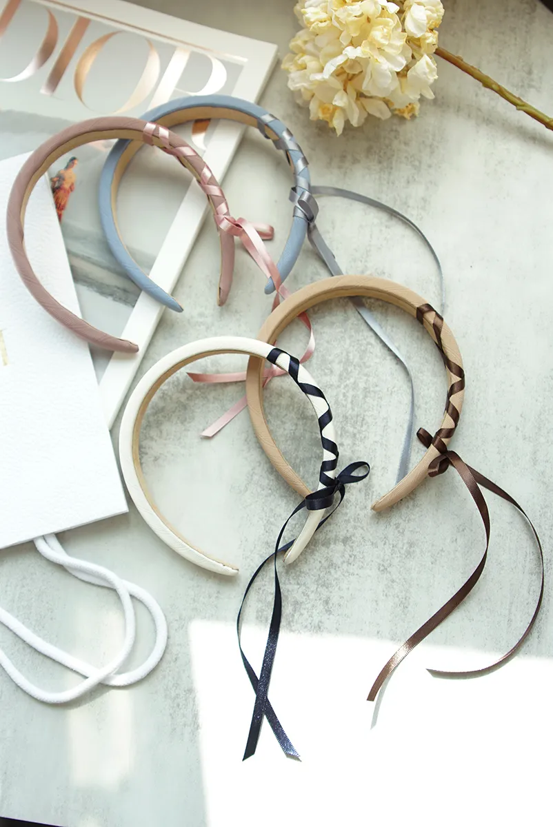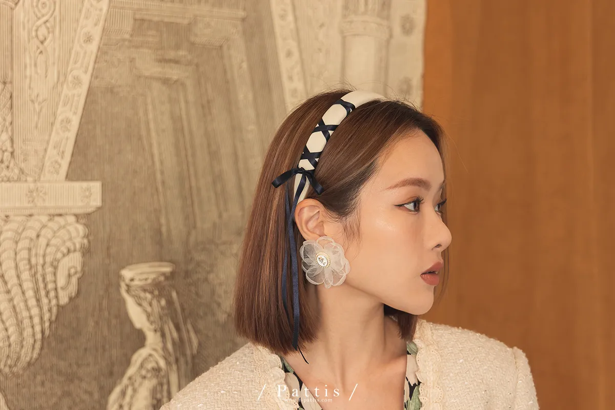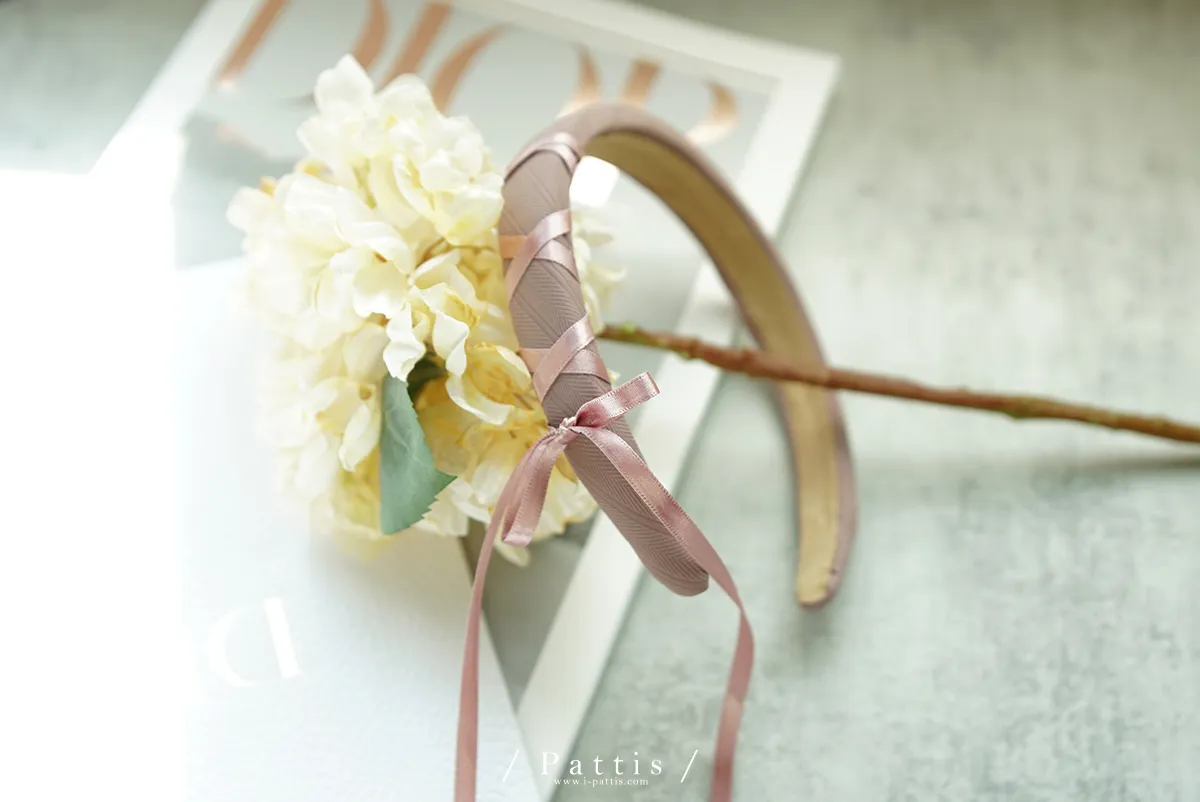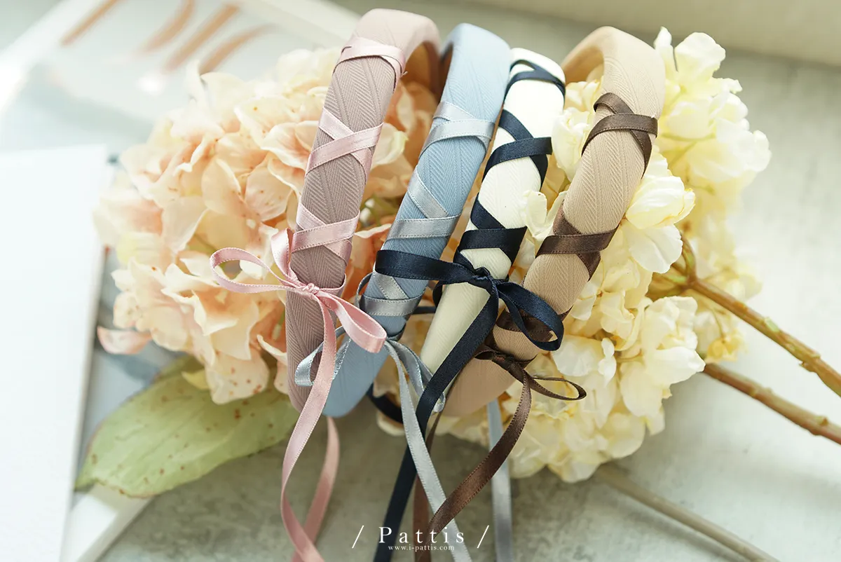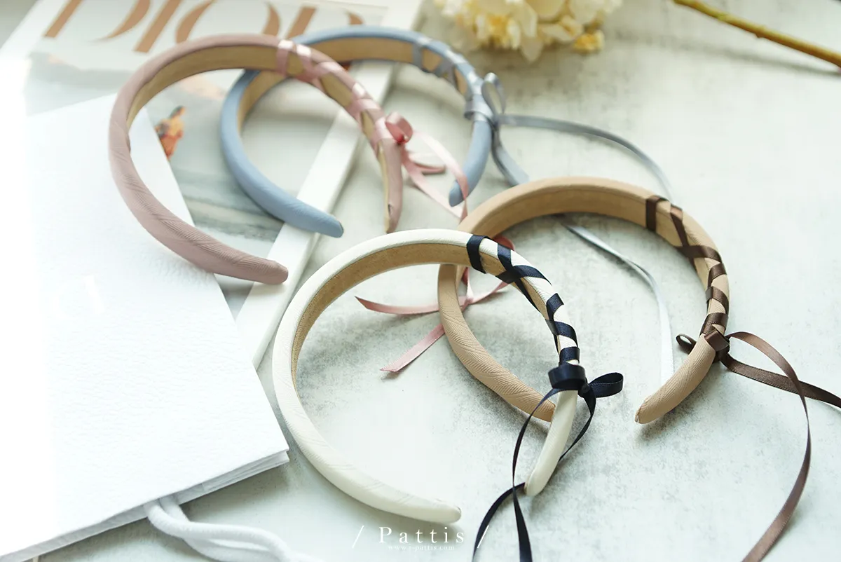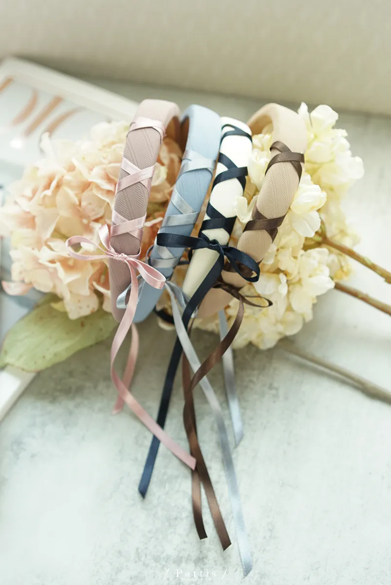 交叉綁帶雙色澎澎髮箍(白/棕/藕粉/淺藍)