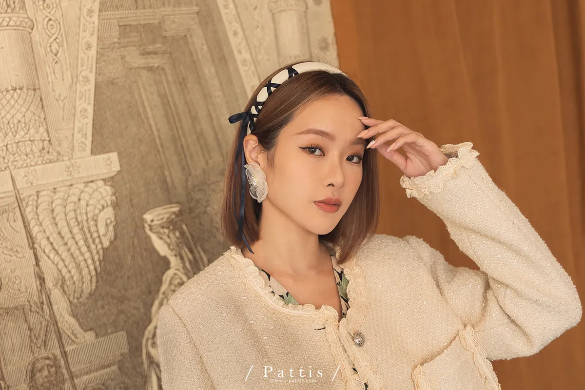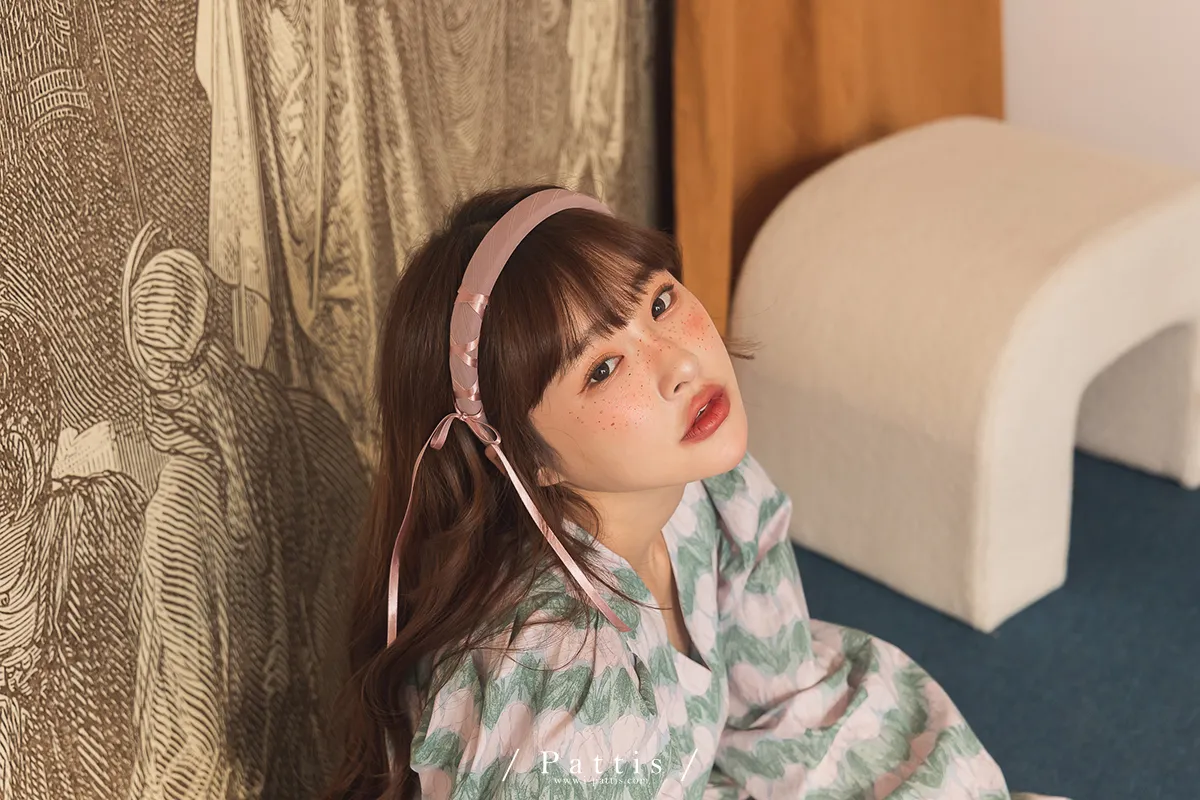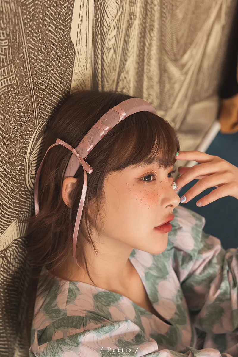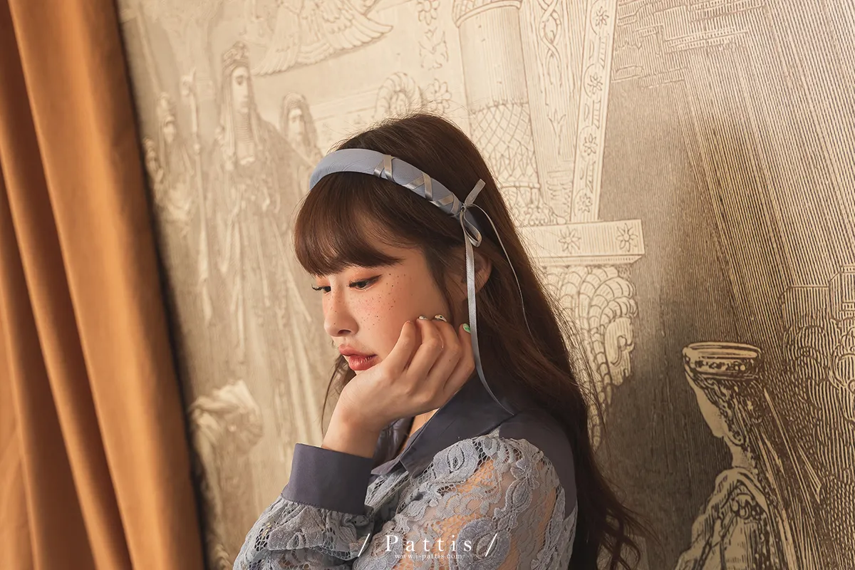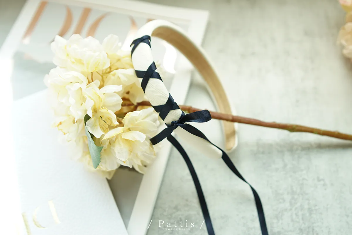 交叉綁帶雙色澎澎髮箍(白/棕/藕粉/淺藍)