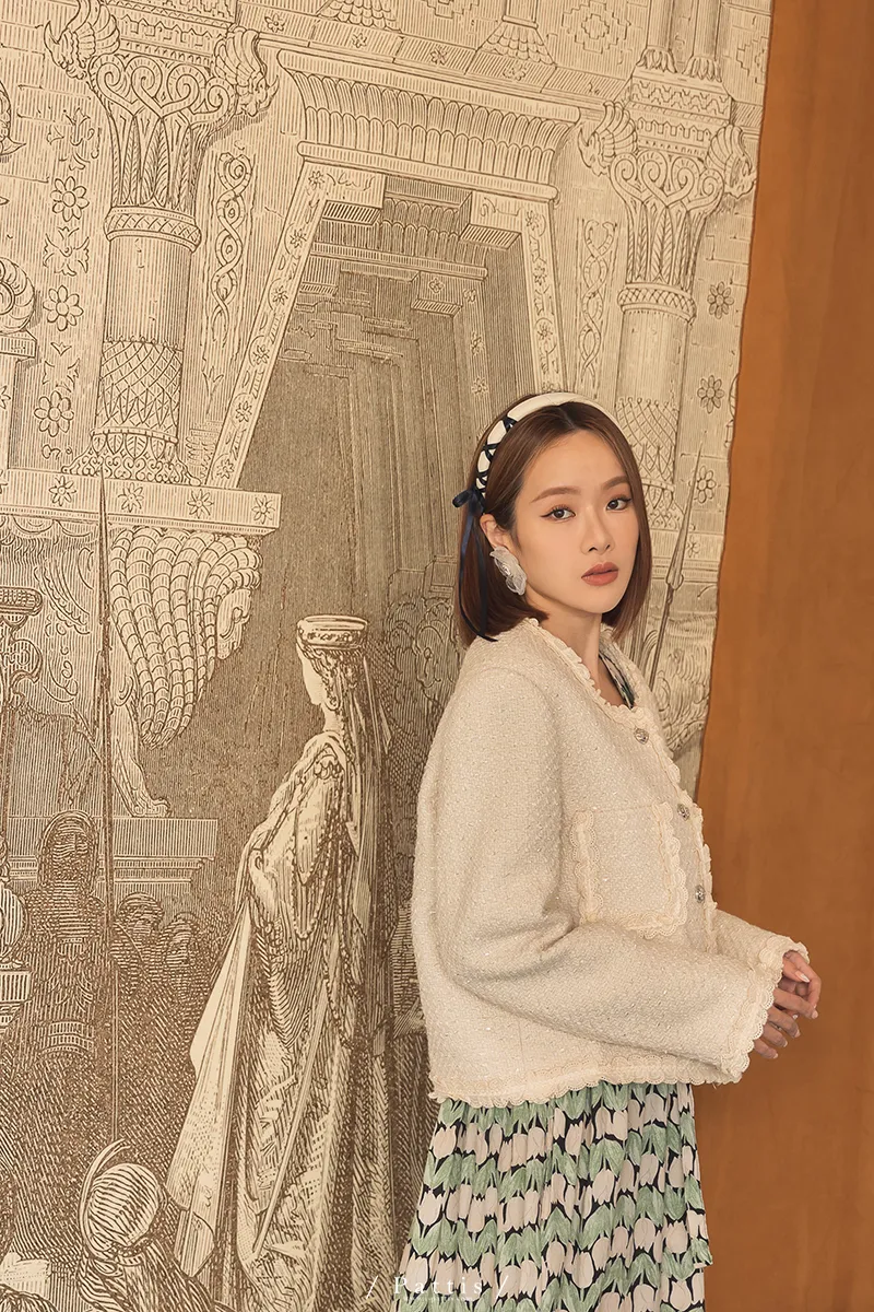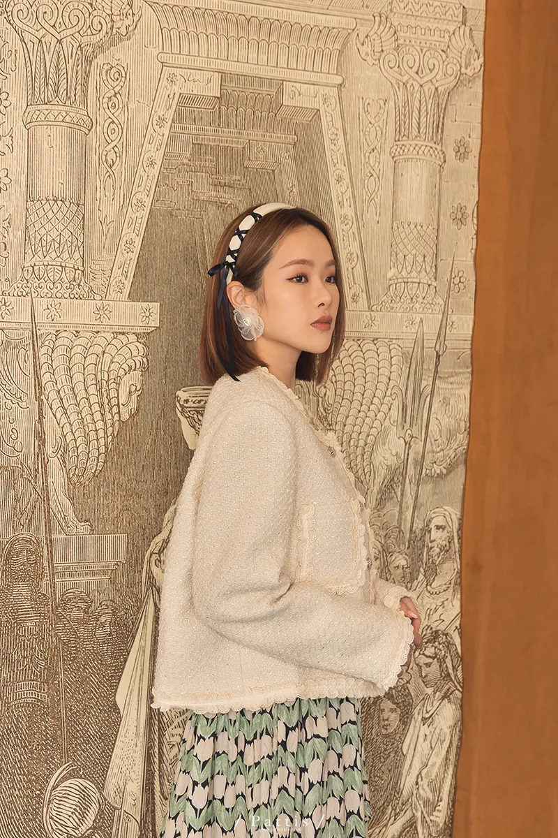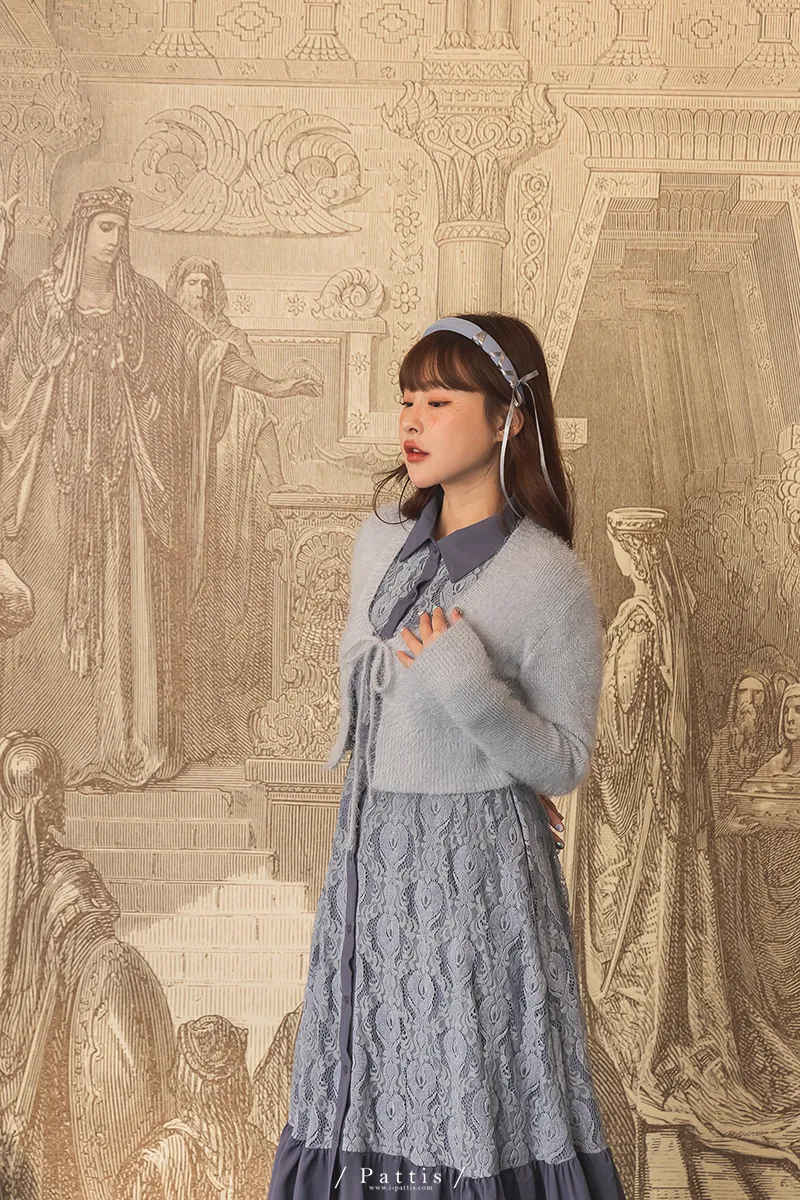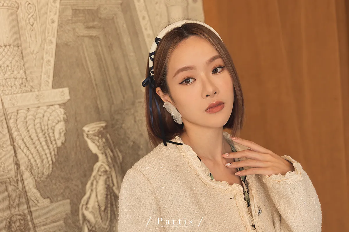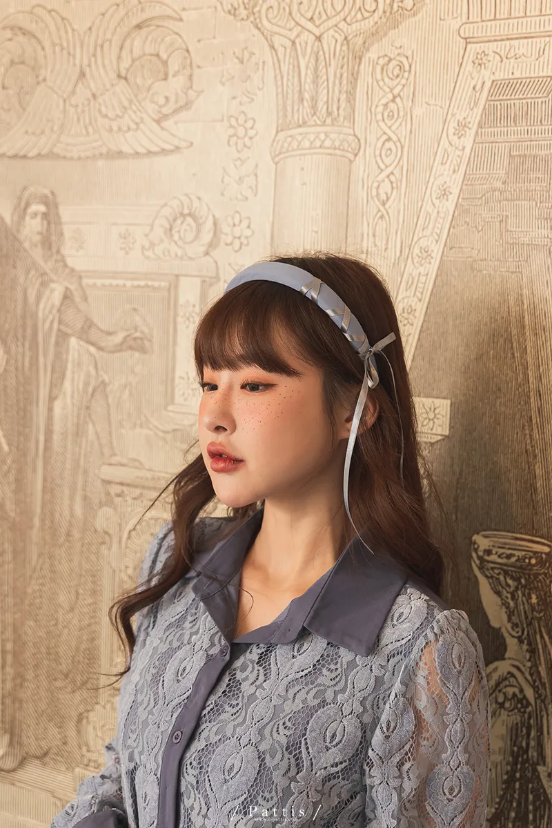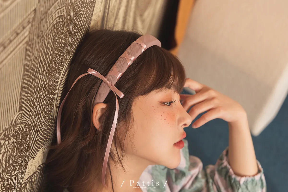 交叉綁帶雙色澎澎髮箍(白/棕/藕粉/淺藍)