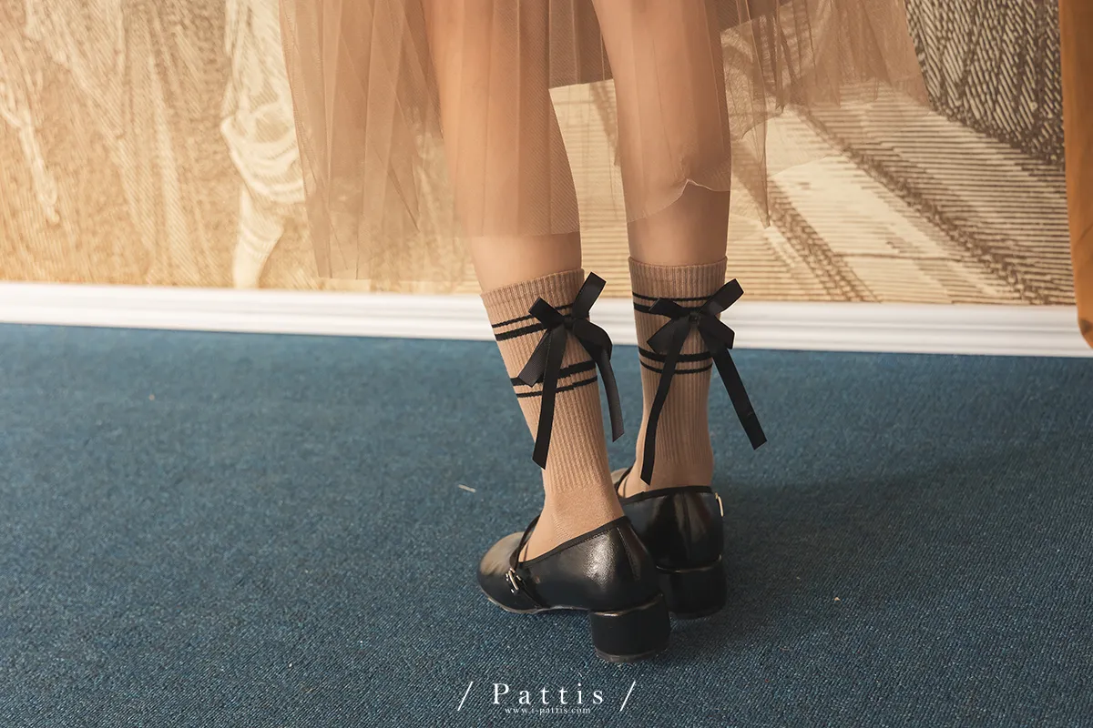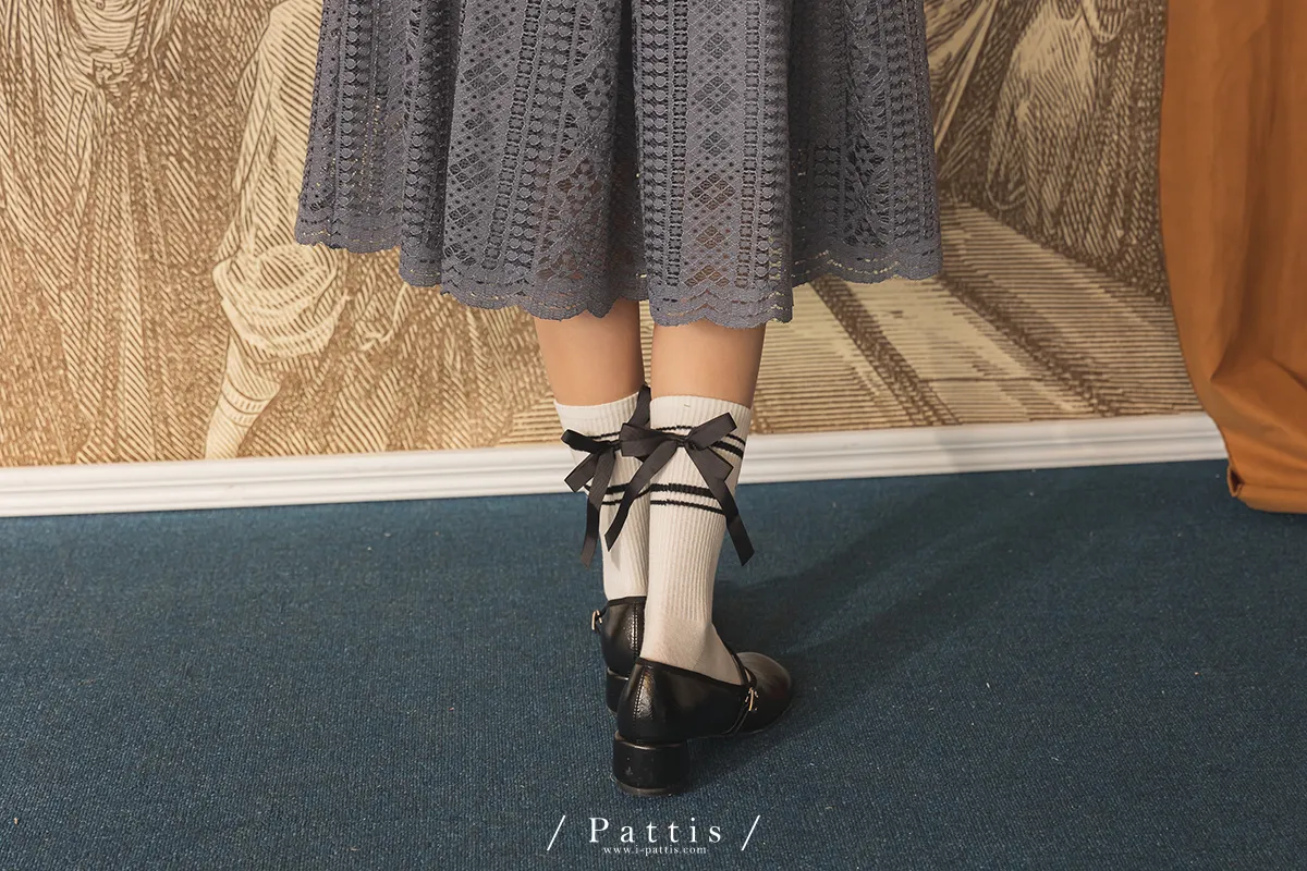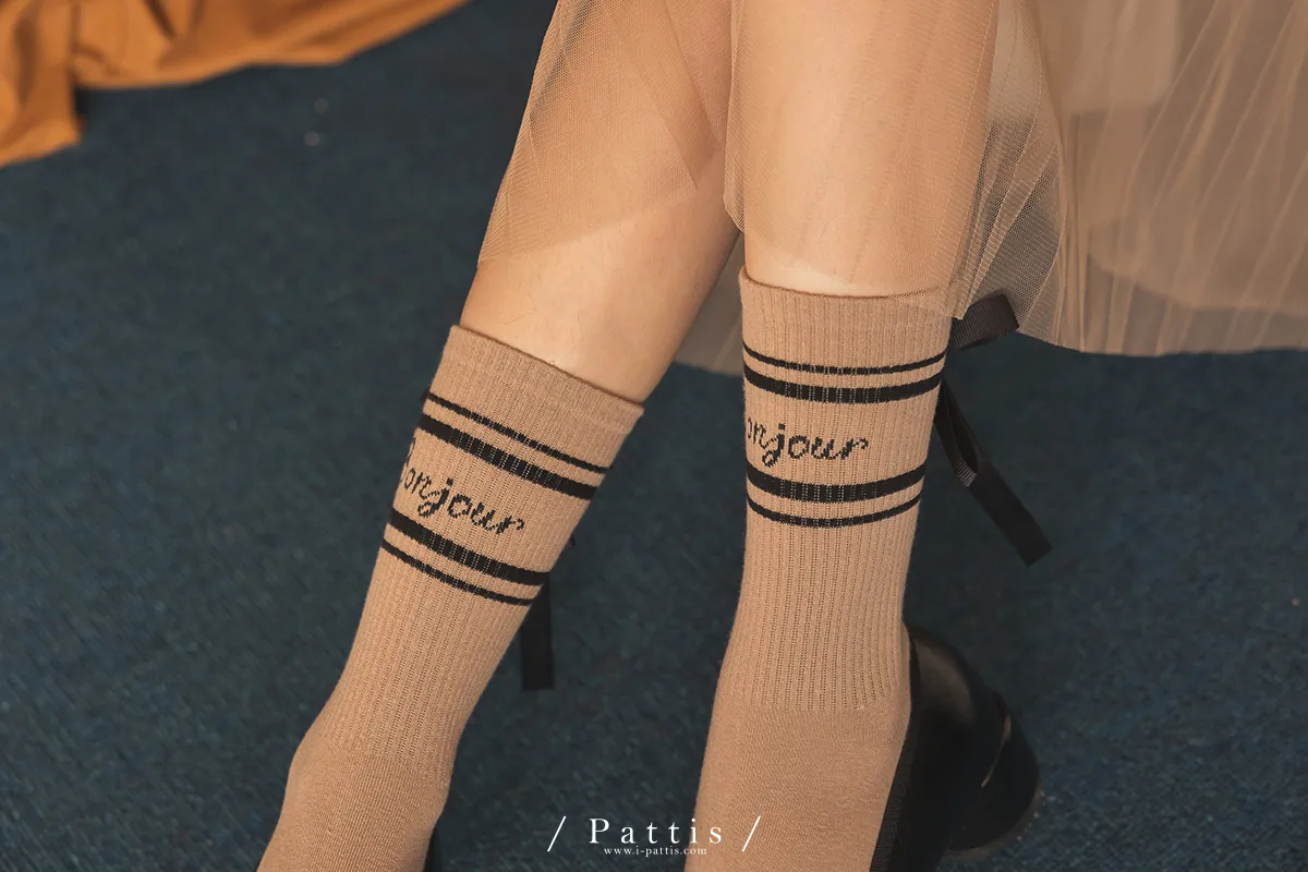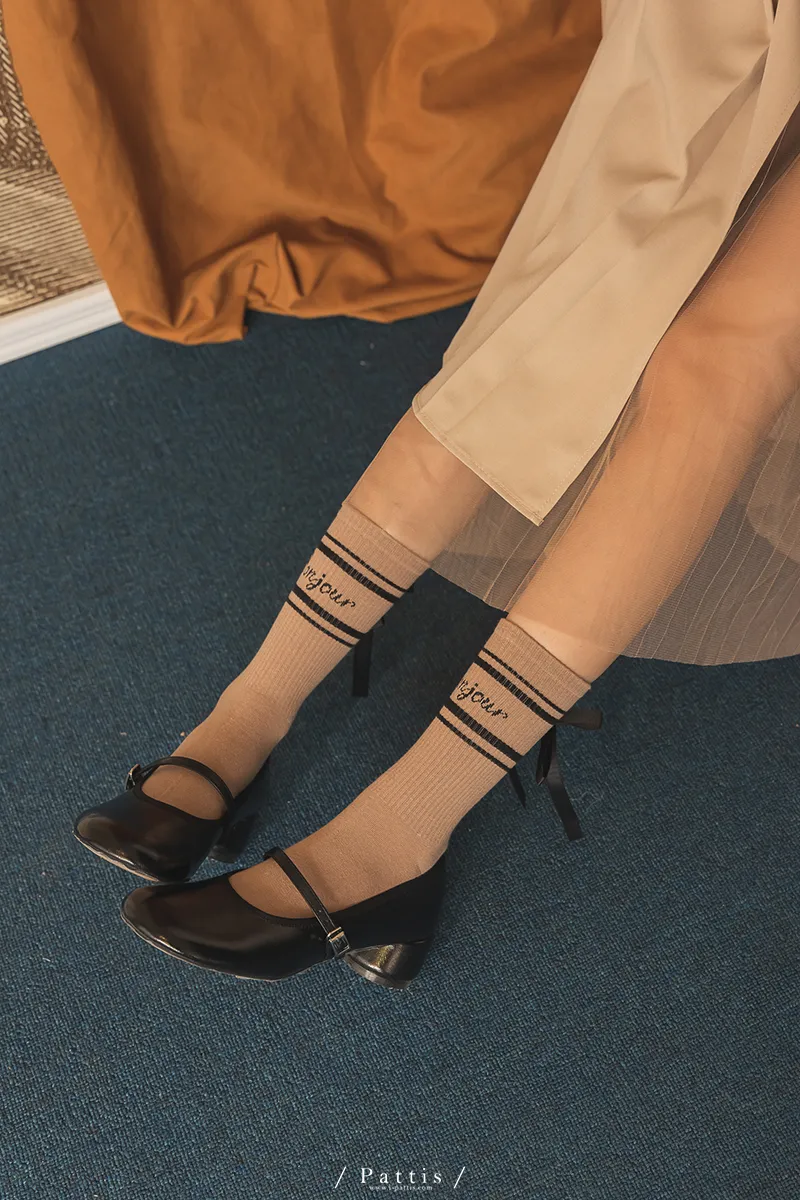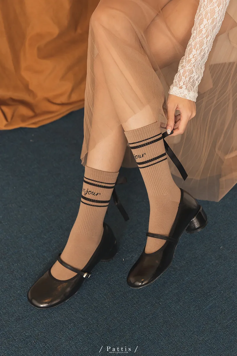 法式蝴蝶結綁帶字母短襪(白/咖啡/黑)