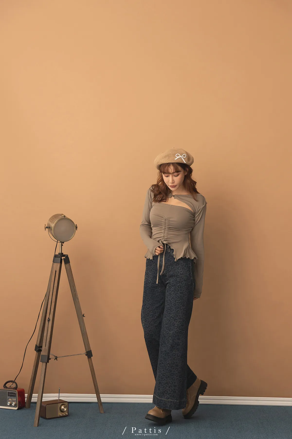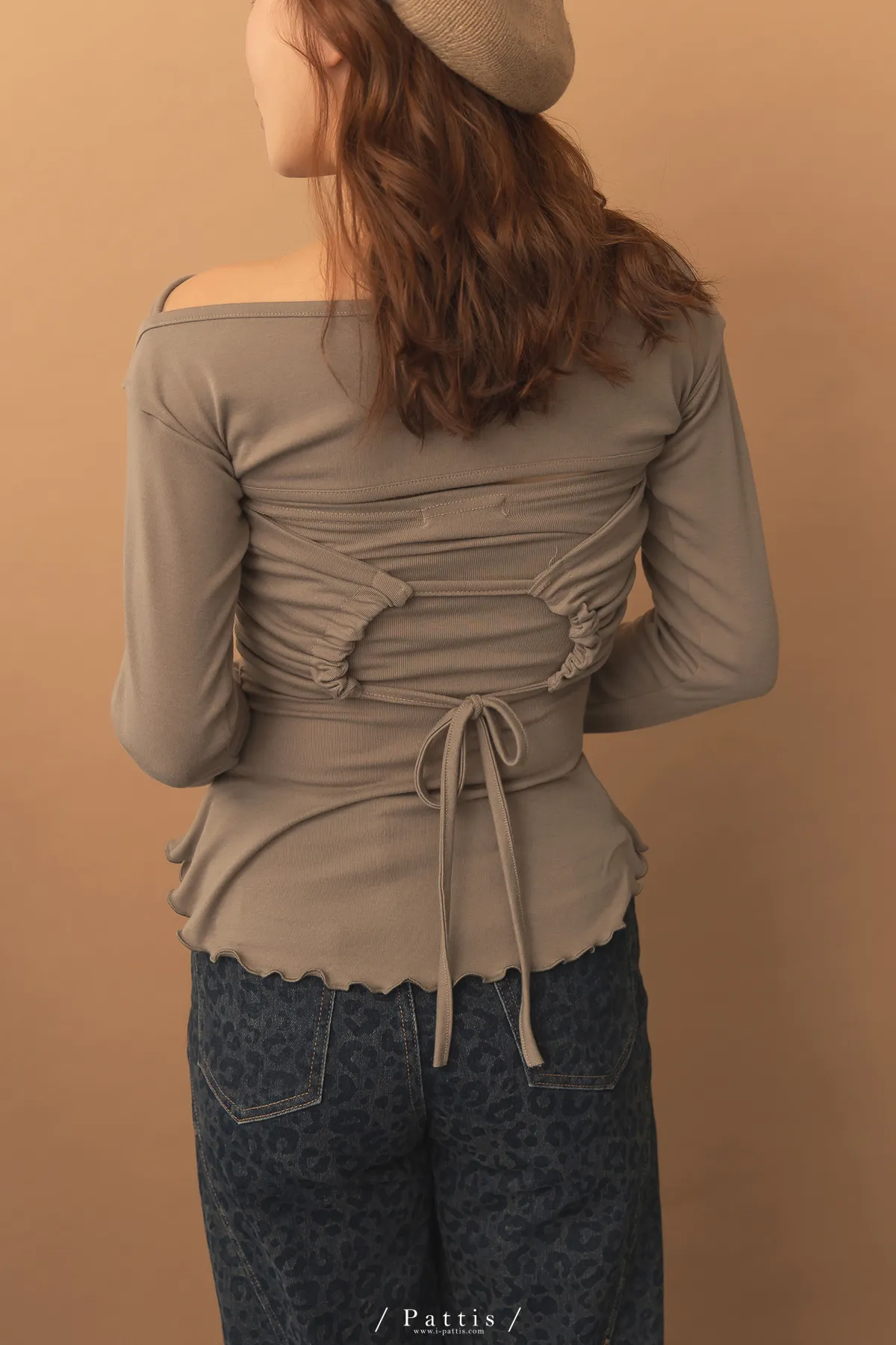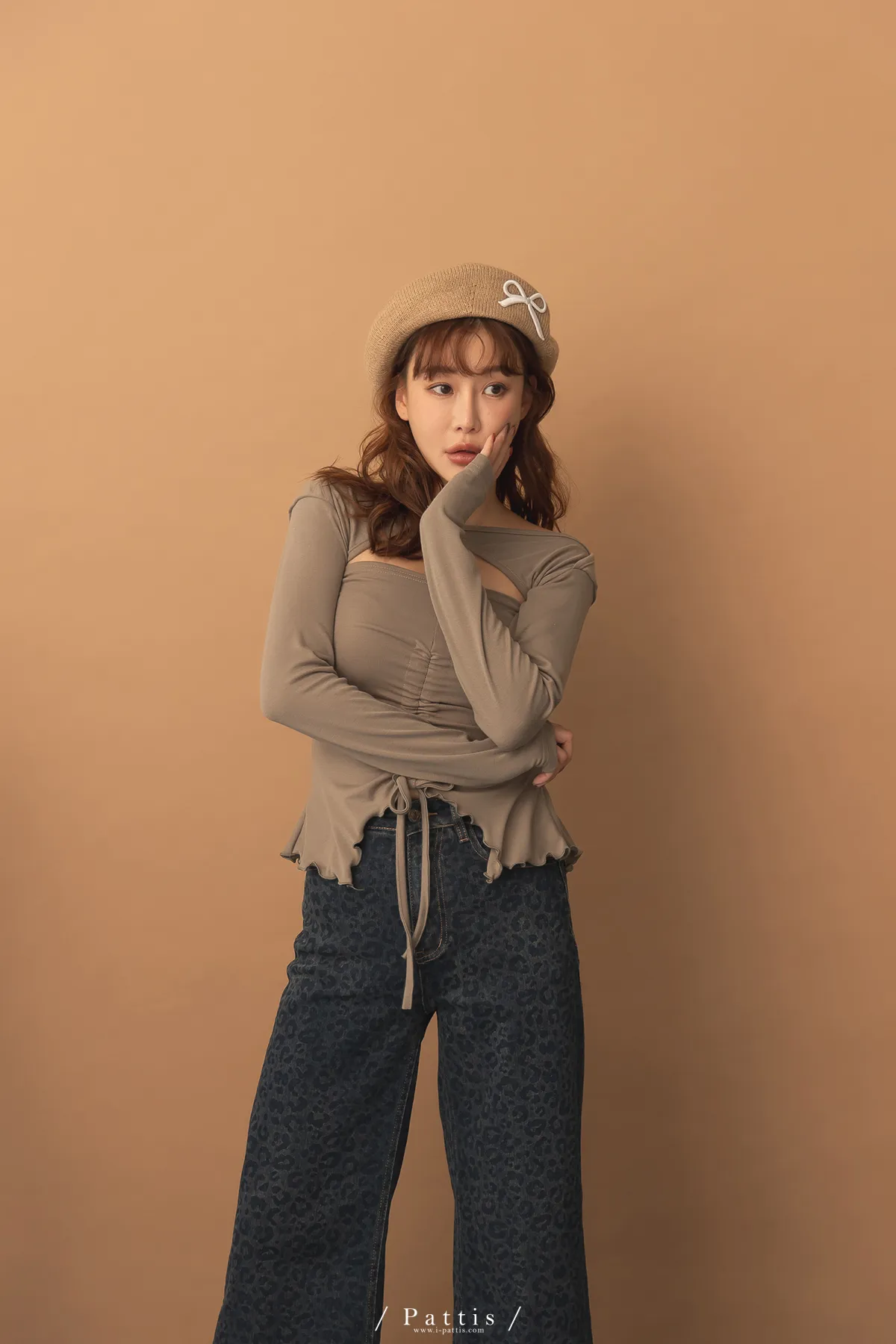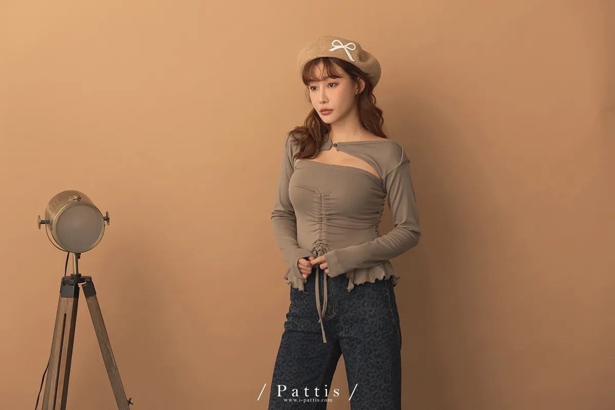 單混入夢境的狂想曲 | 親膚彈性抽繩抓皺平口上衣+外罩set(灰)