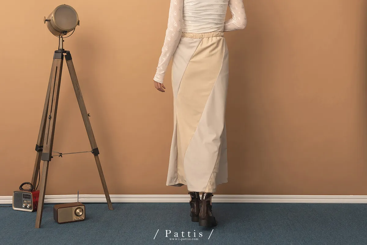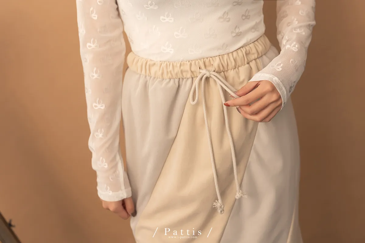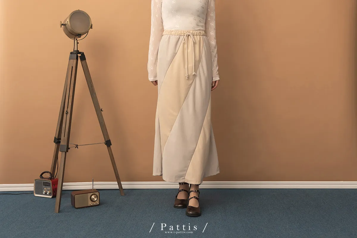 私藏的棉花糖 | 斜邊拼接雙色綁帶裙(淺米灰)