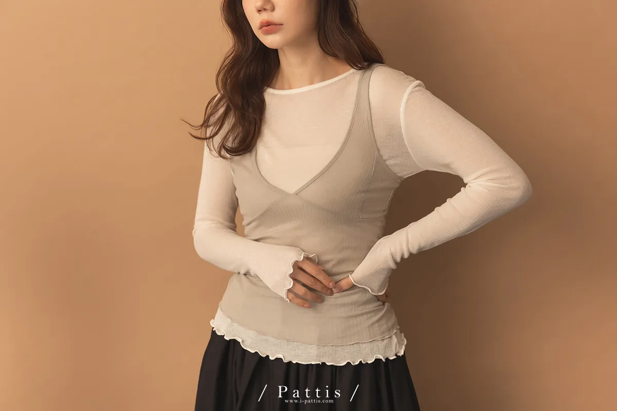 *特*無拘 | V字車線感親膚透肌背心(灰)