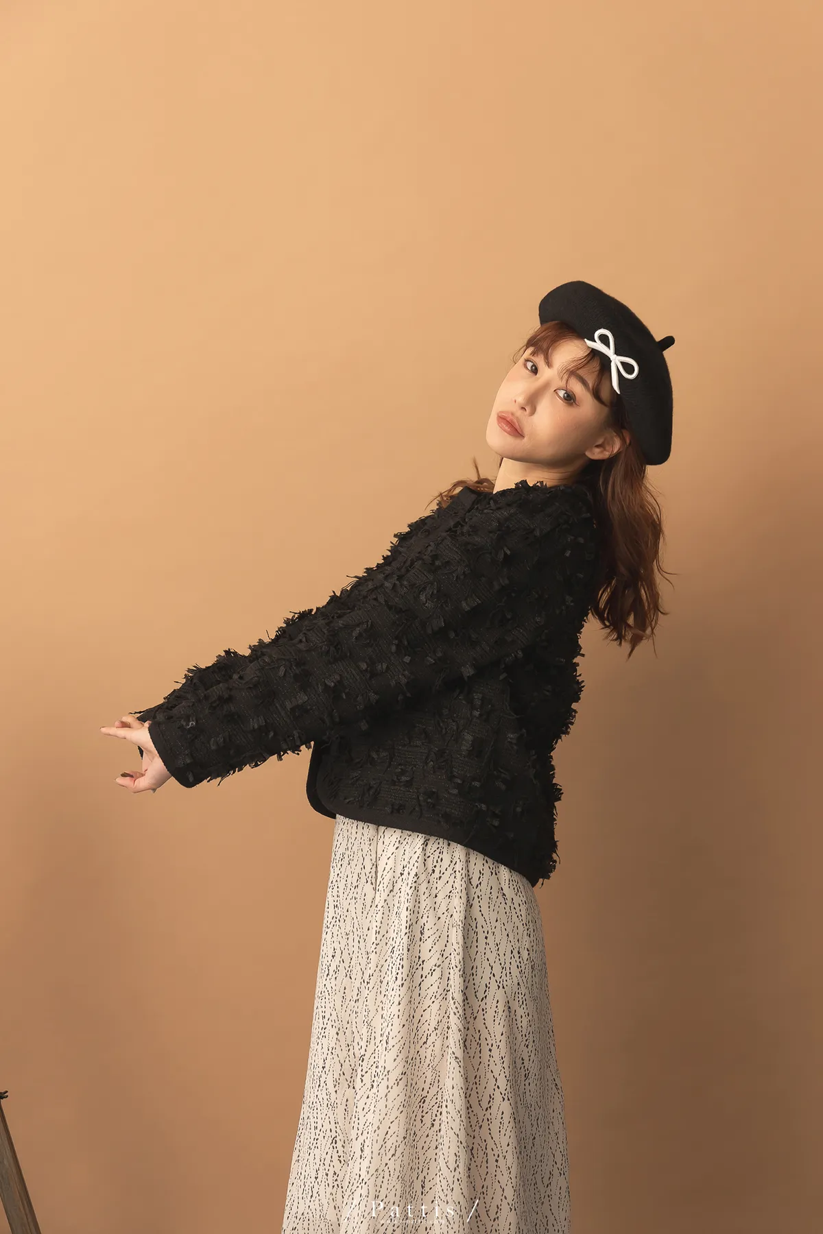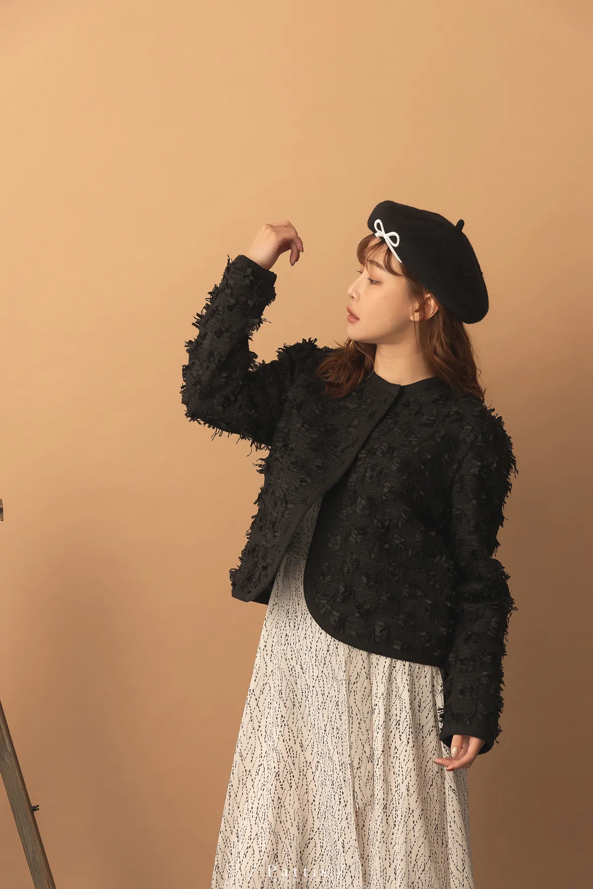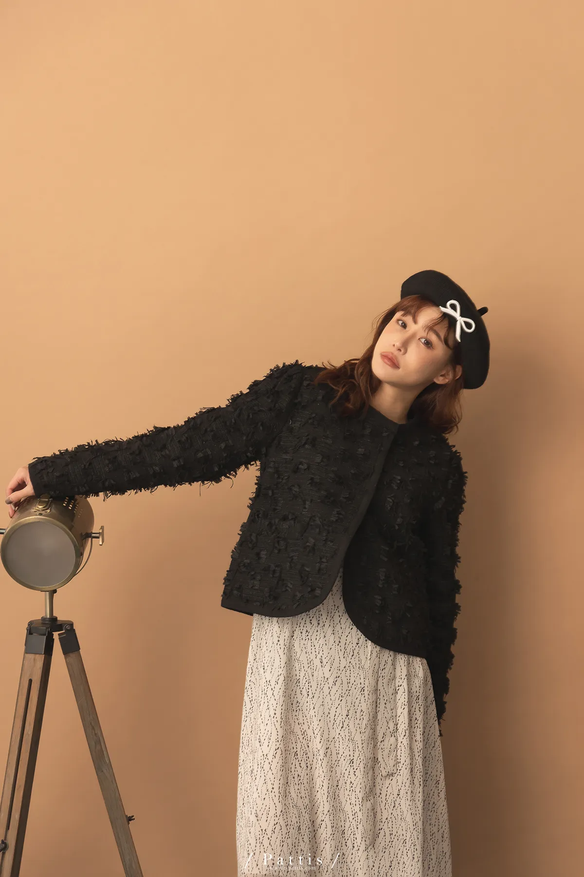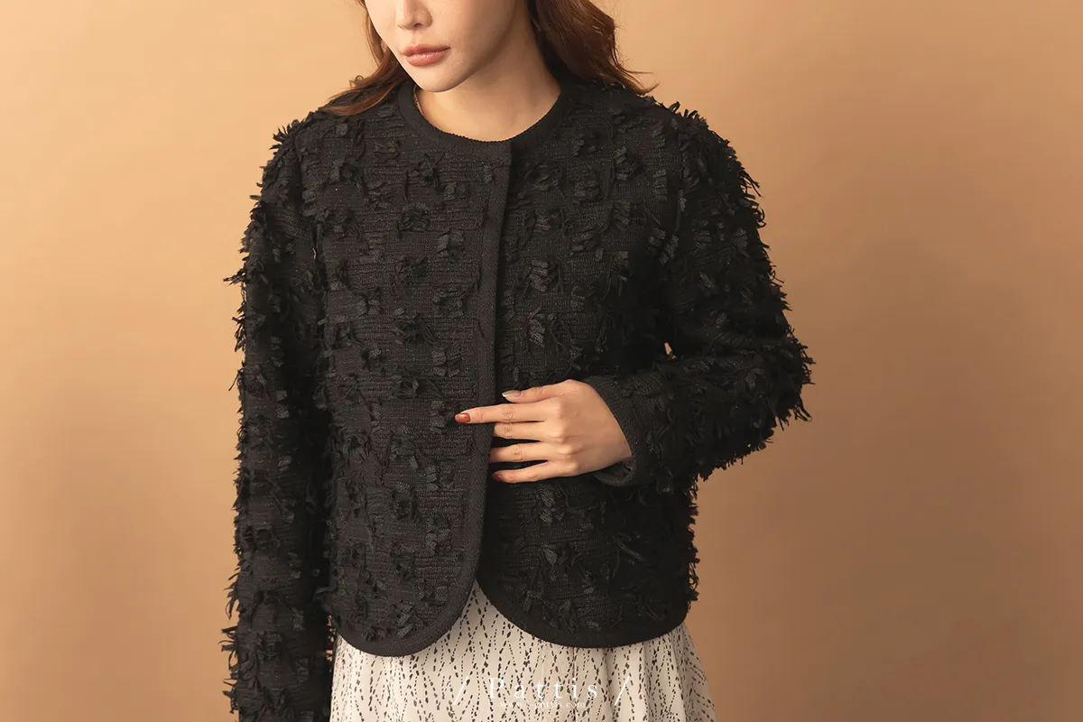 小羽翼收藏家 | 小香風流蘇滾邊釘扣外套(黑)