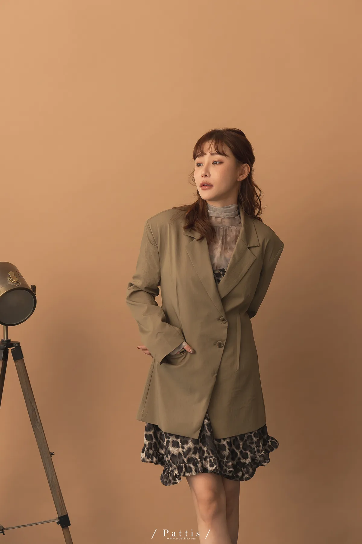那些隱藏的小心思 | 設計感後縷空造型西裝外套(卡其綠)