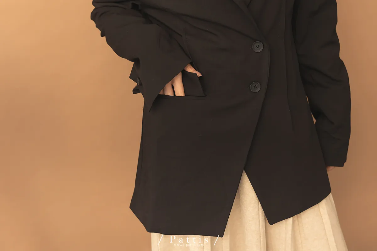 那些隱藏的小心思 | 設計感後縷空造型西裝外套(黑)