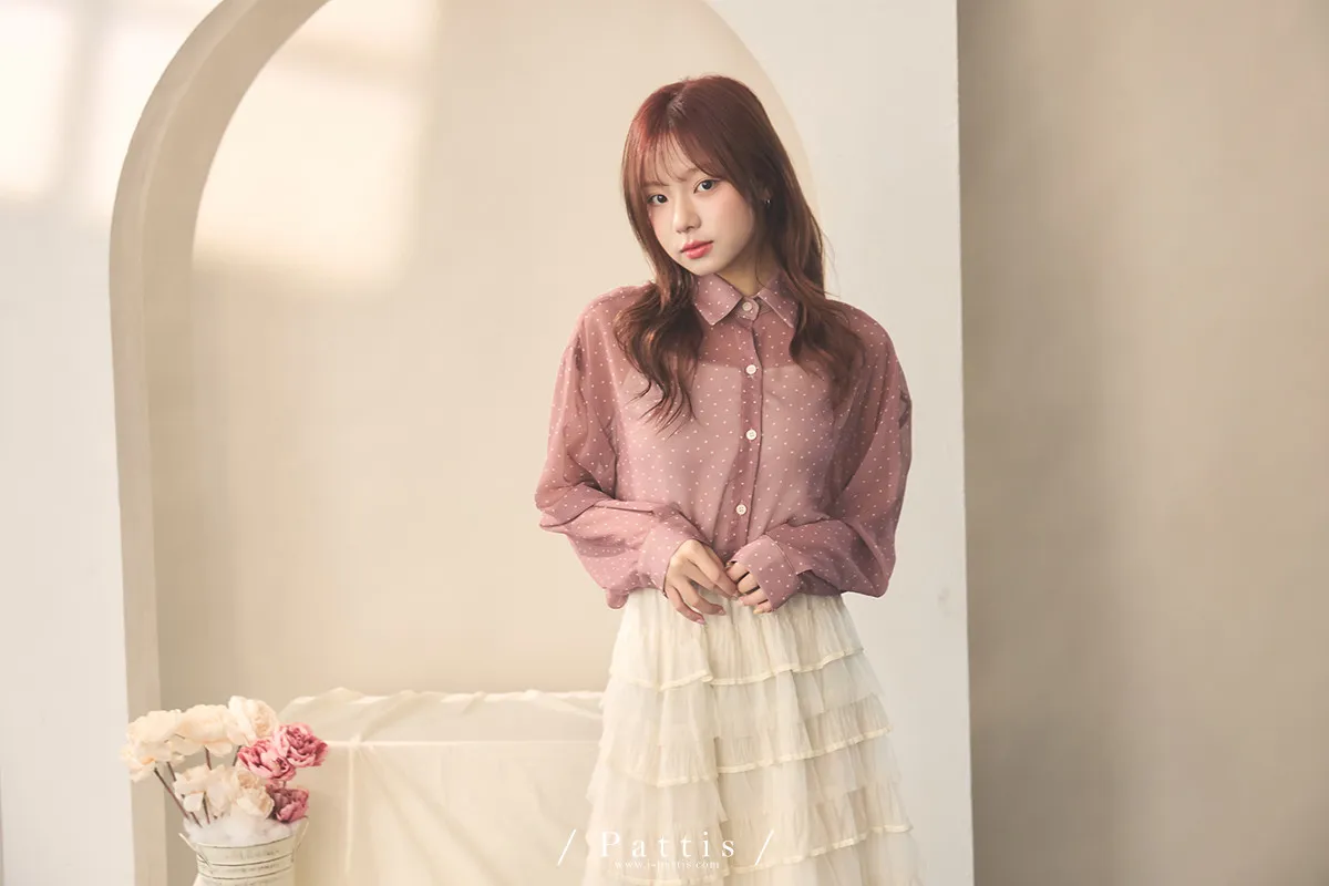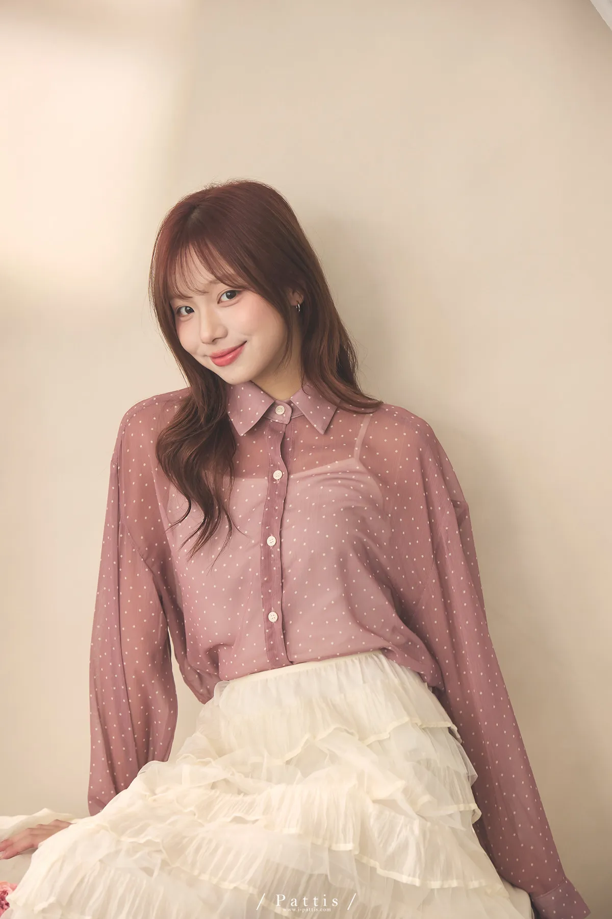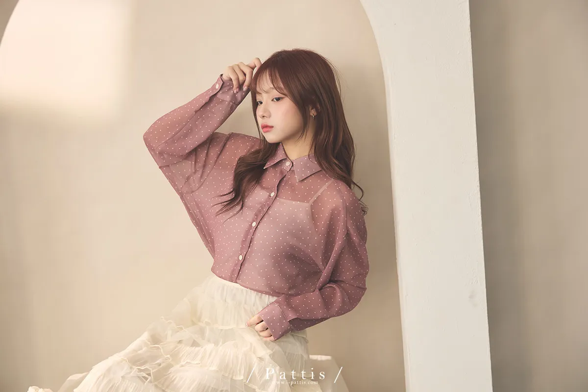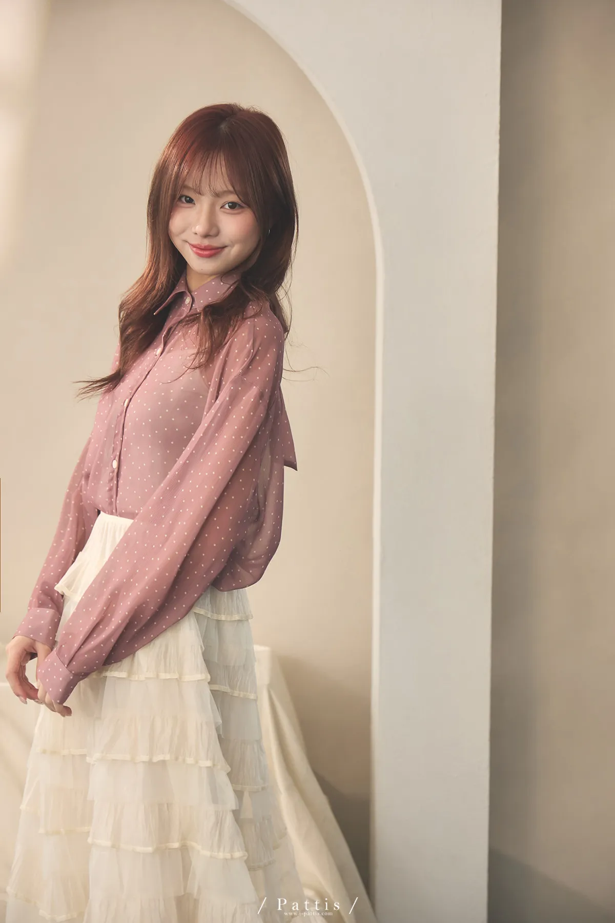 (現貨)後頸是我的領地 | 後領巾綁帶點點透肌襯衫上衣(深粉)