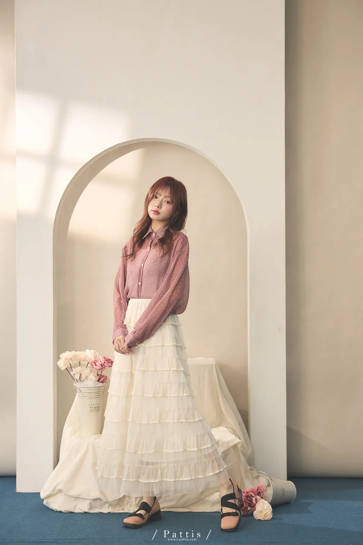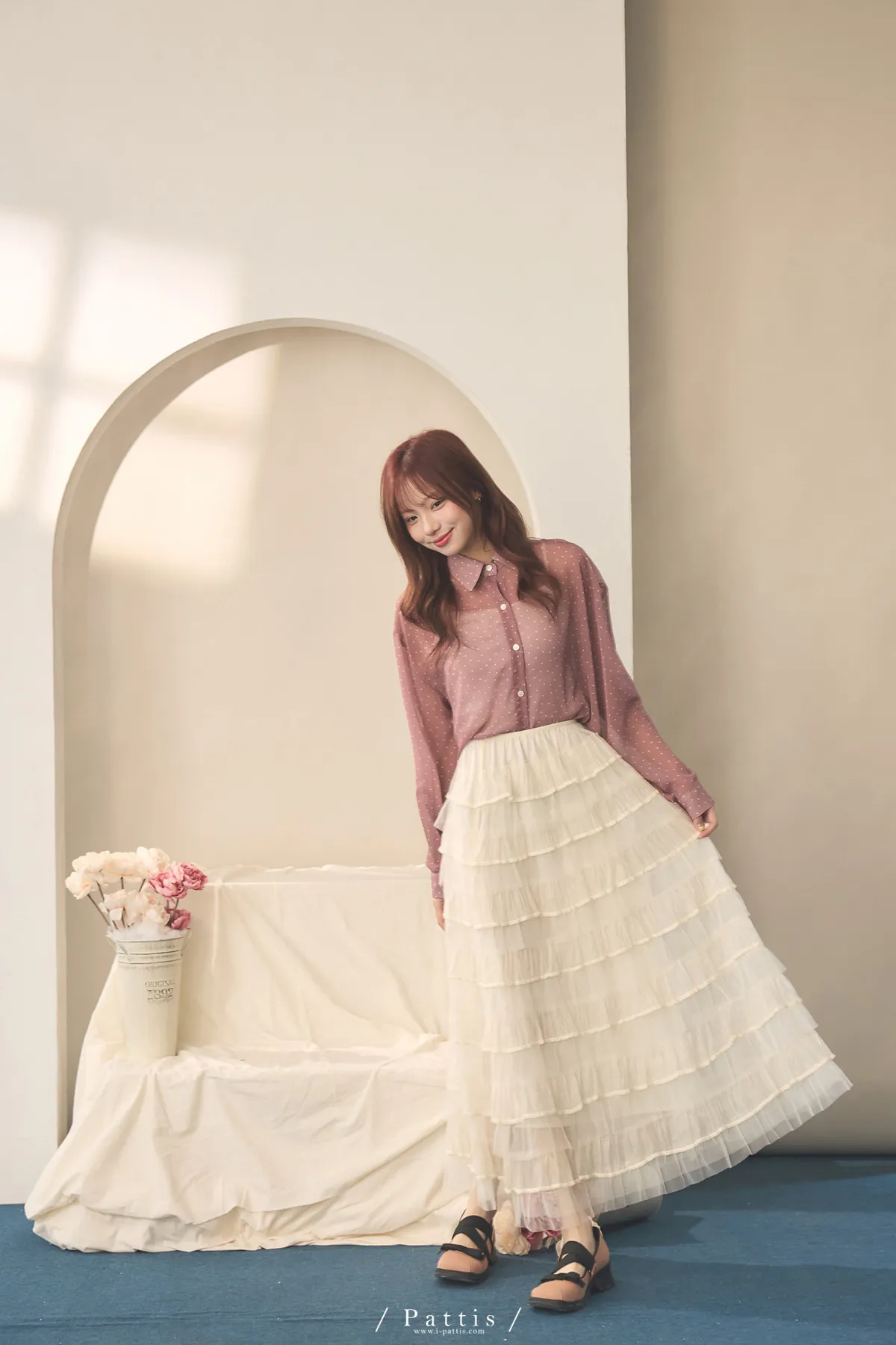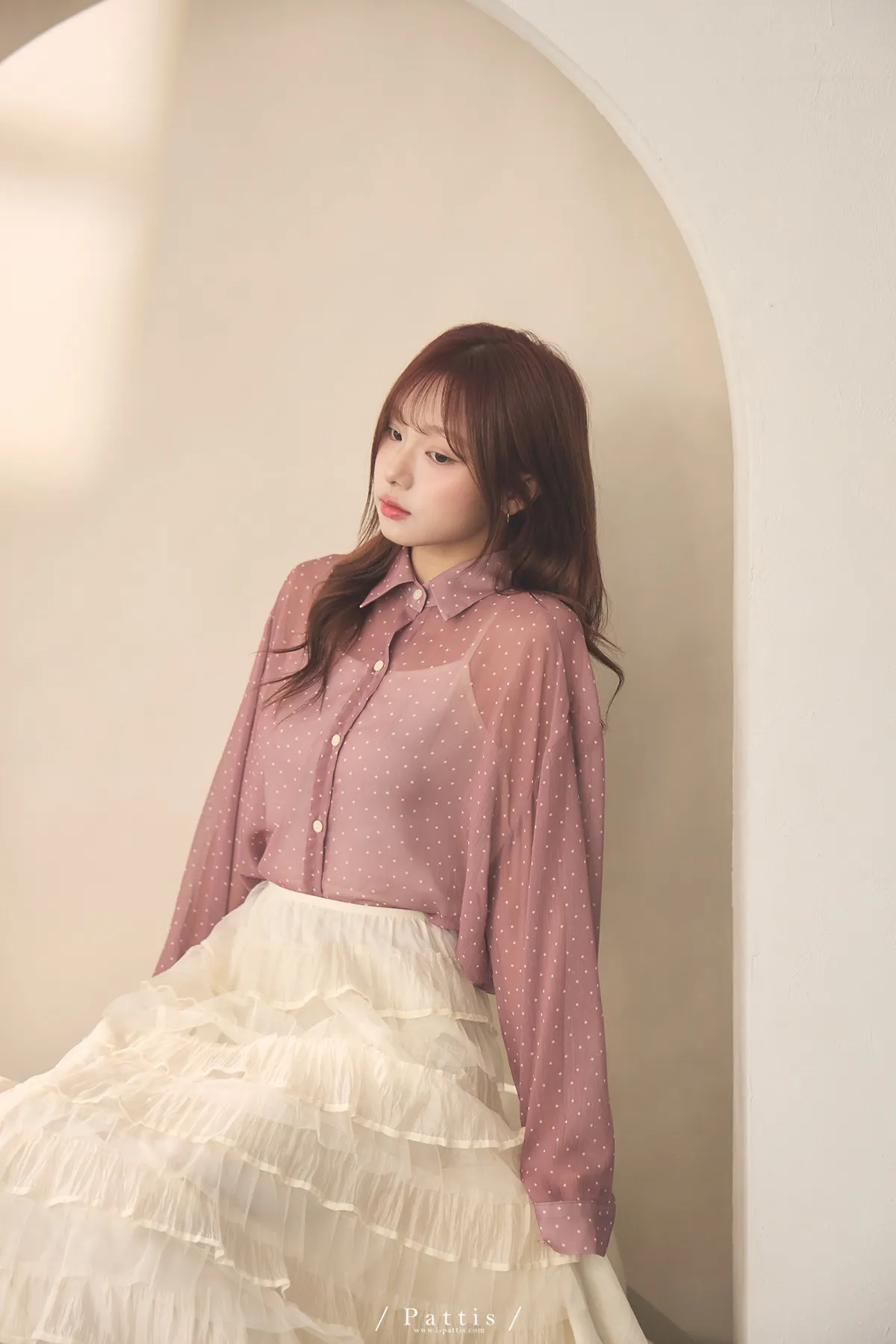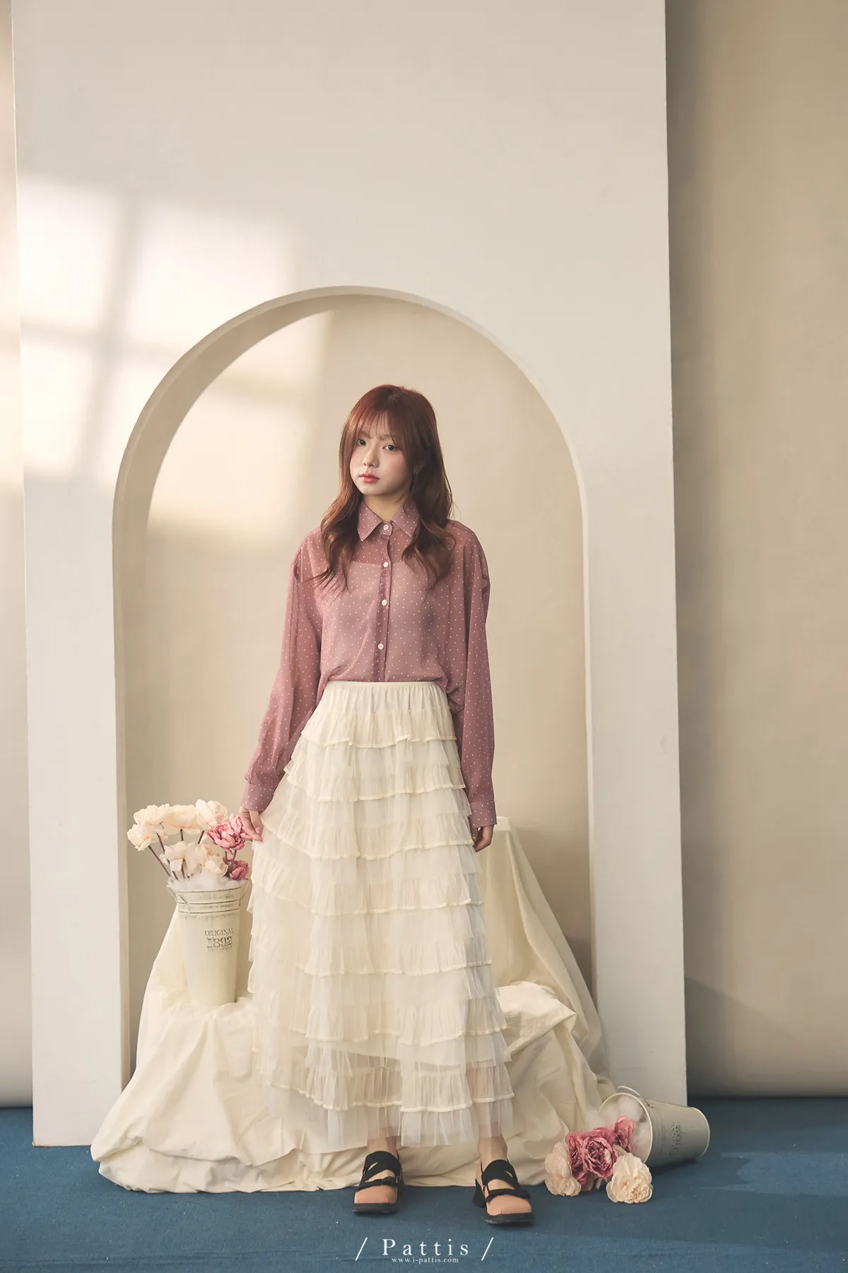 (現貨)後頸是我的領地 | 後領巾綁帶點點透肌襯衫上衣(深粉)