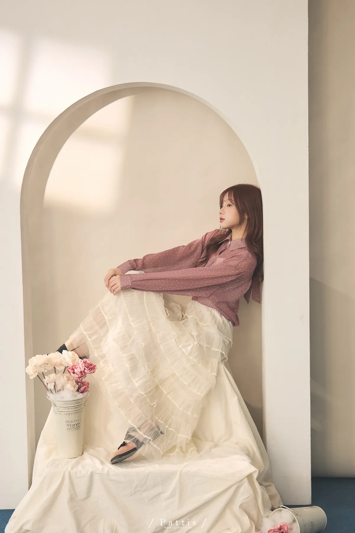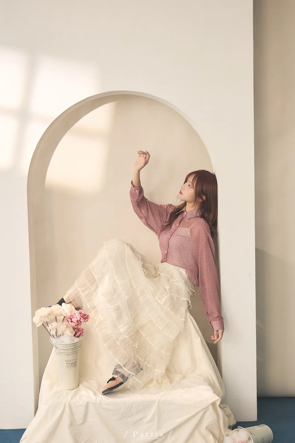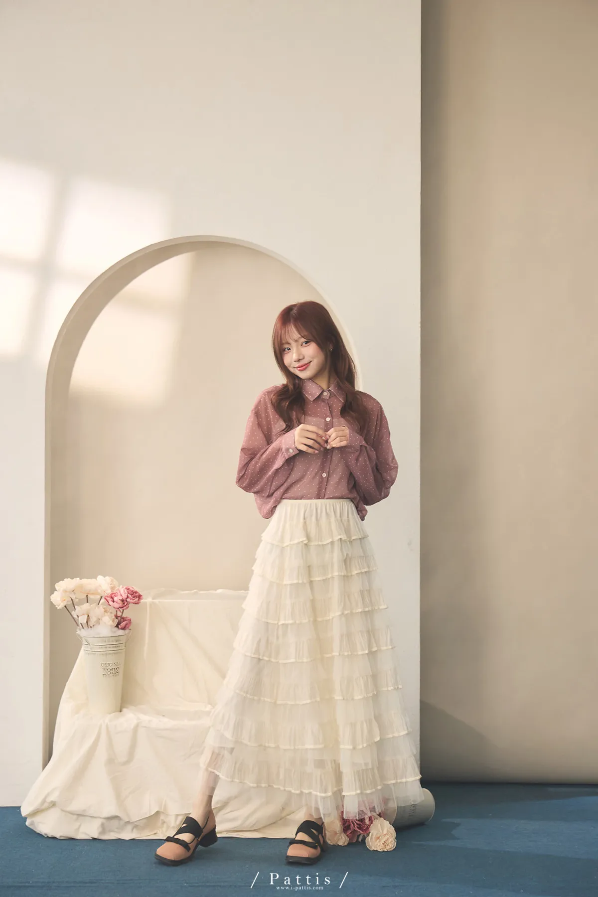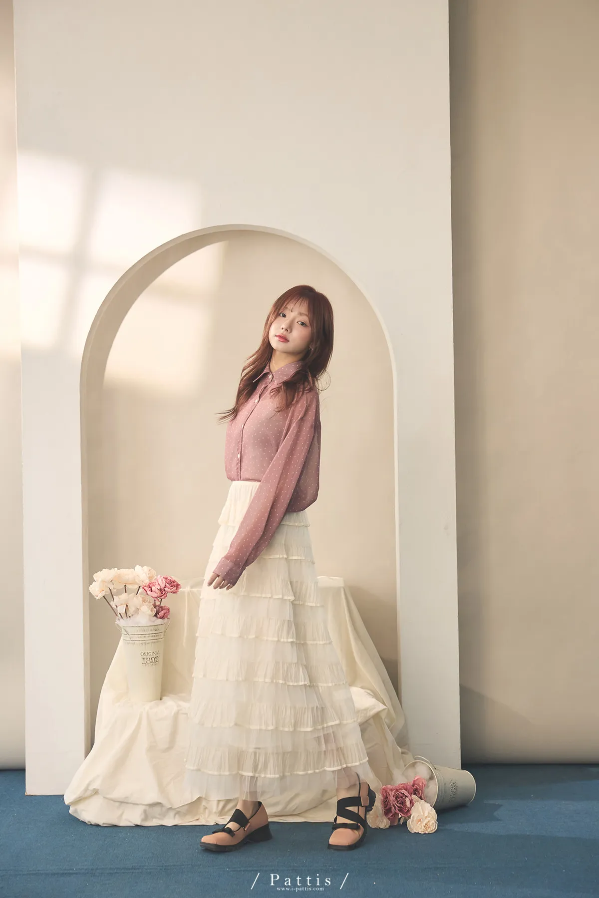 (現貨)後頸是我的領地 | 後領巾綁帶點點透肌襯衫上衣(深粉)