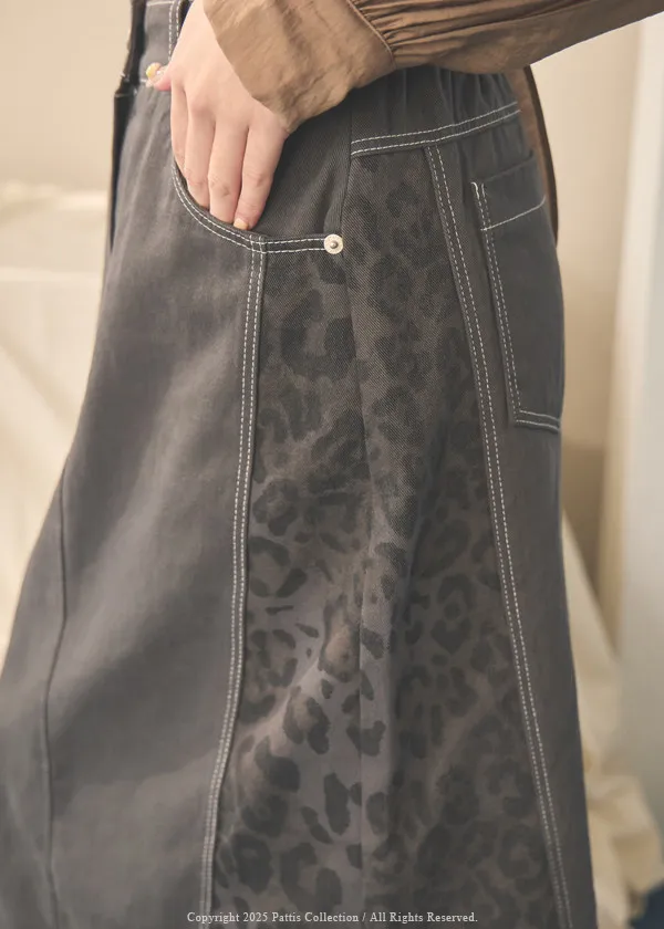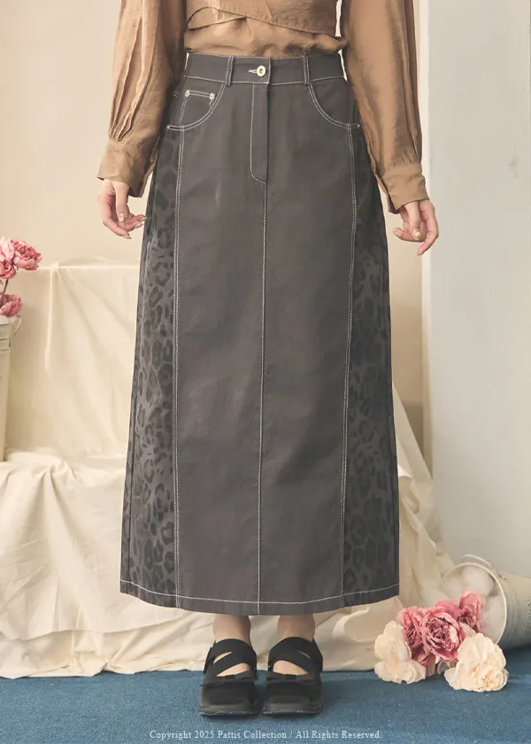 小獵物 | 豹紋拼接開岔長裙(深灰)