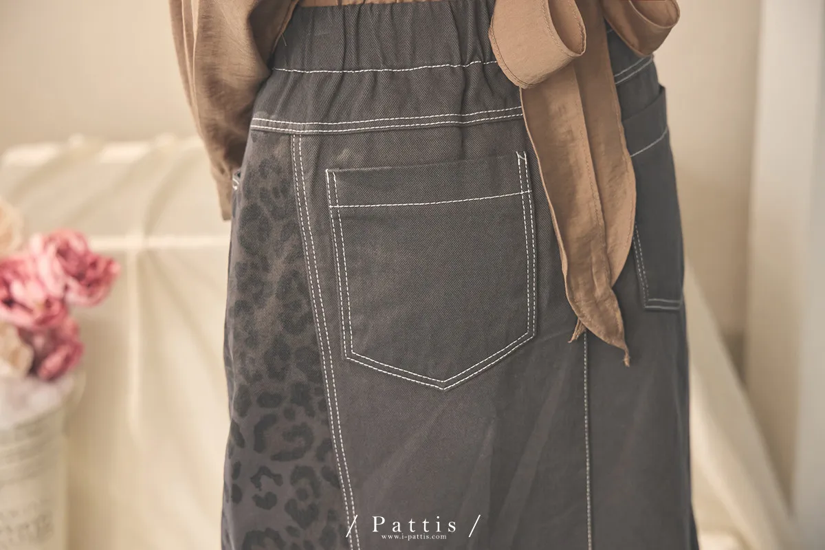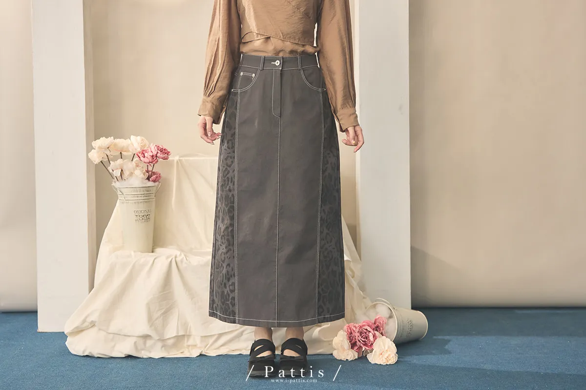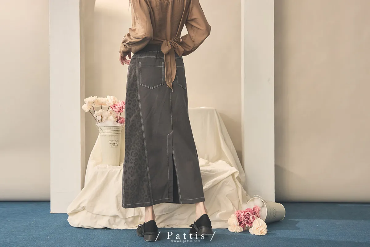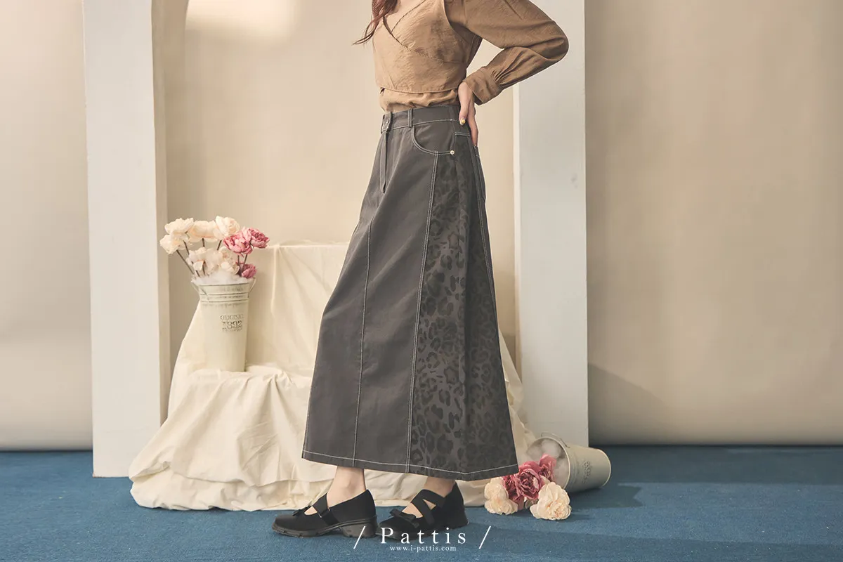 (現貨) 小獵物 | 豹紋拼接開岔長裙(深灰)