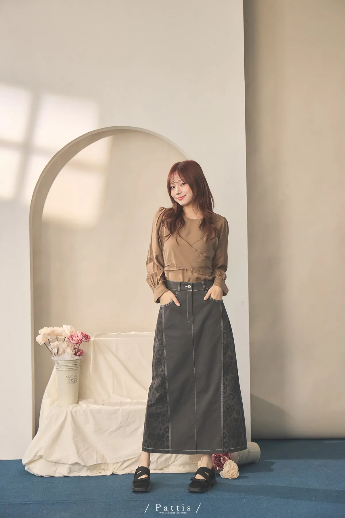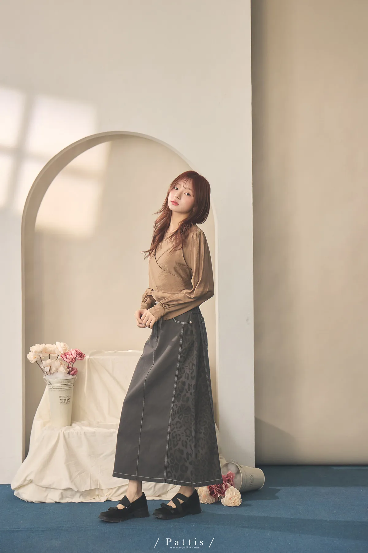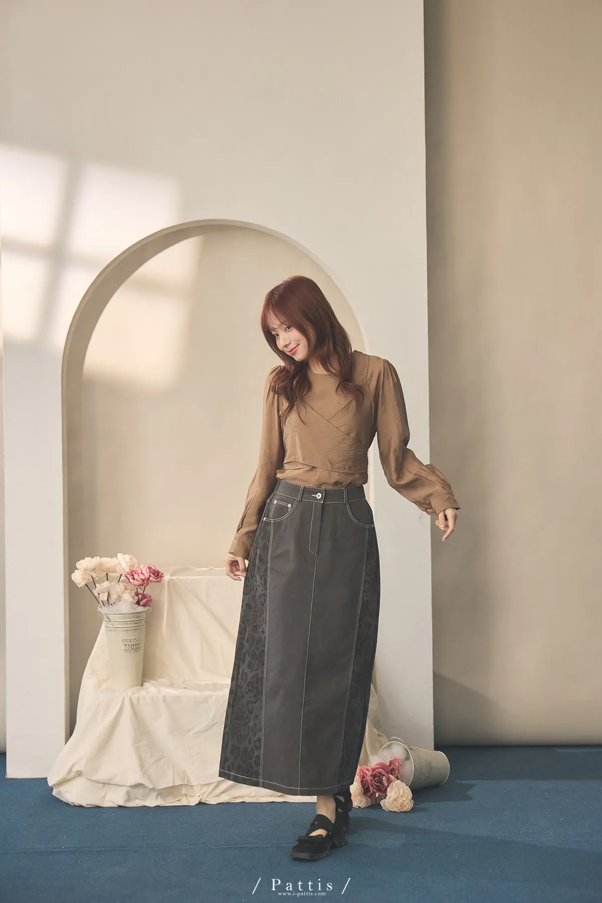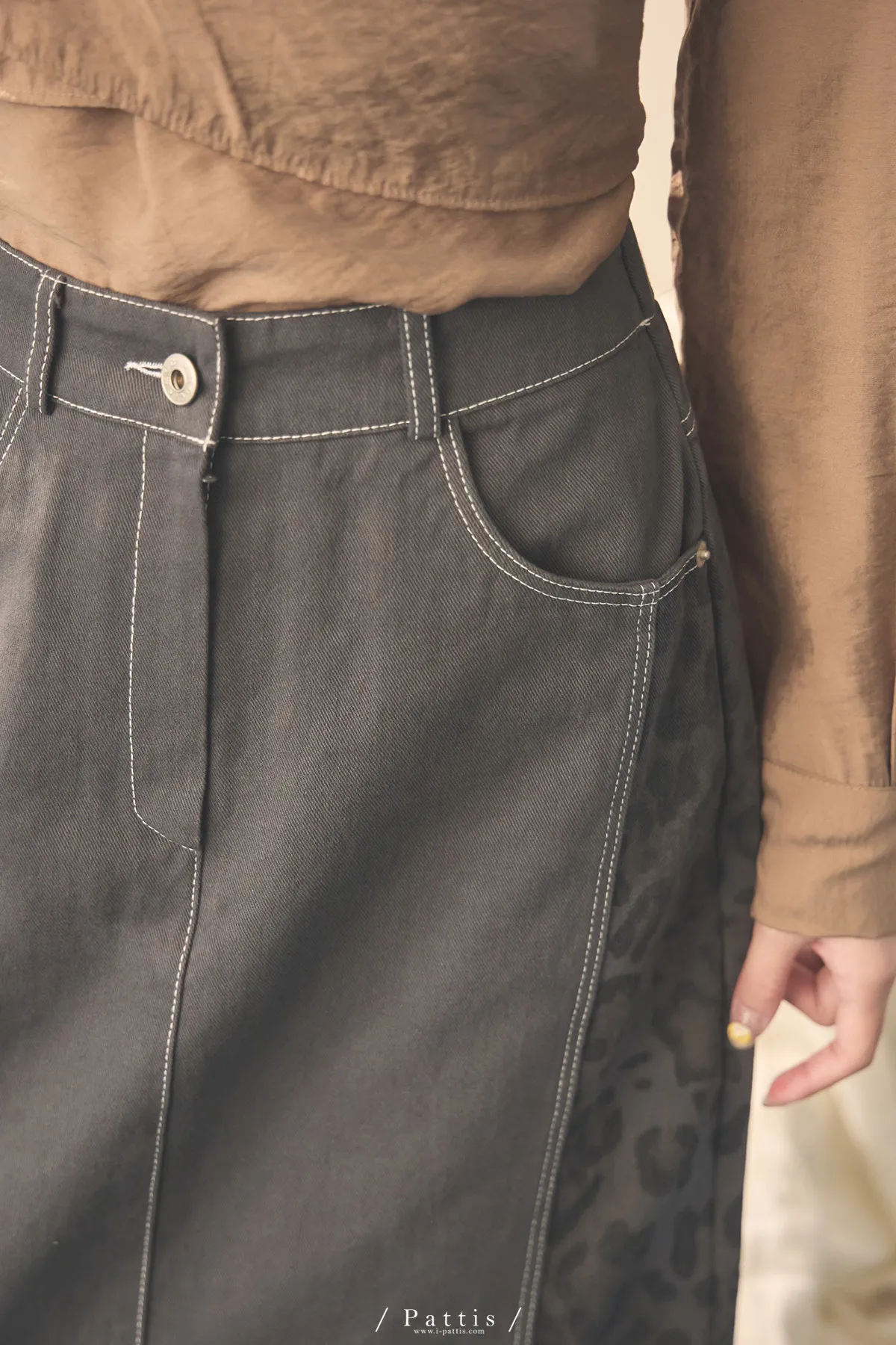 (現貨) 小獵物 | 豹紋拼接開岔長裙(深灰)