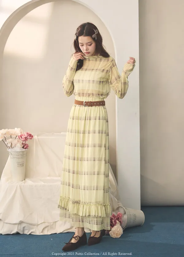 成熟女子的叛逆期 | (可分售)格紋透肌上衣+鬆緊荷葉裙set組(黃)