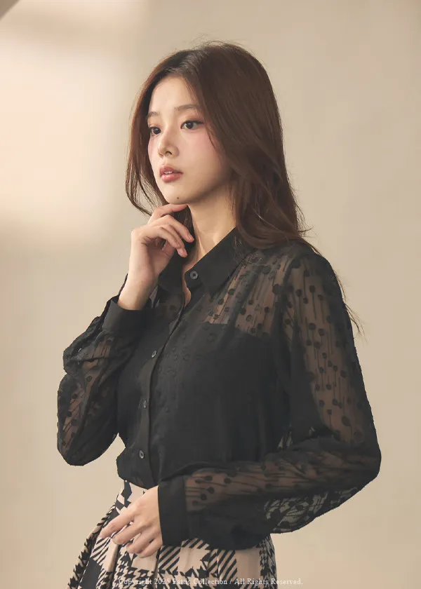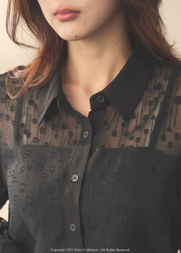 雨林之約 | 點點絲線感透肌襯衫上衣(黑)