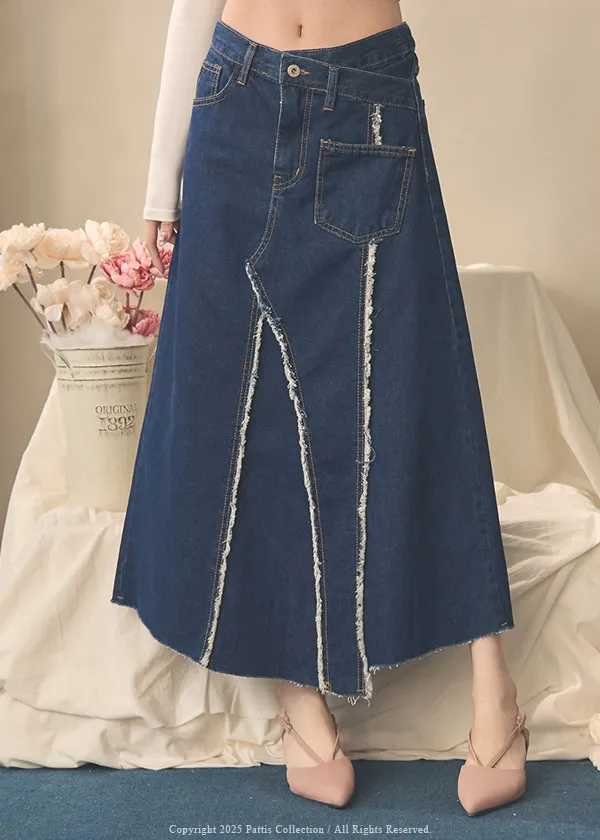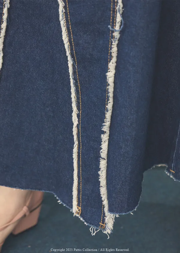 夢境裡的無所不能 | 不對稱拼接設計流蘇丹寧裙(單一色)