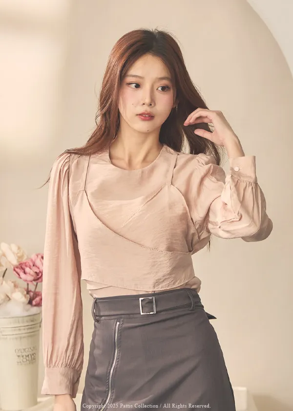如果不能抱緊妳 | 交叉綁帶圓領上衣(粉)