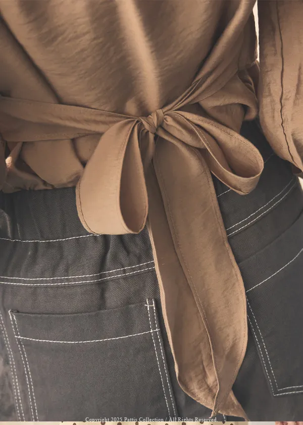 如果不能抱緊妳 | 交叉綁帶圓領上衣(咖啡)