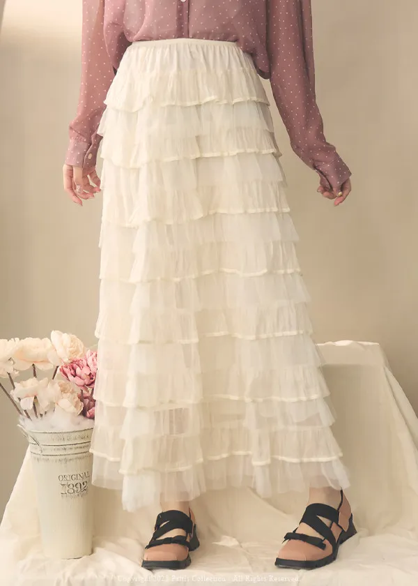 偷嚐一口奶油蛋糕 | 多層次拼接層紗蛋糕裙(米白)