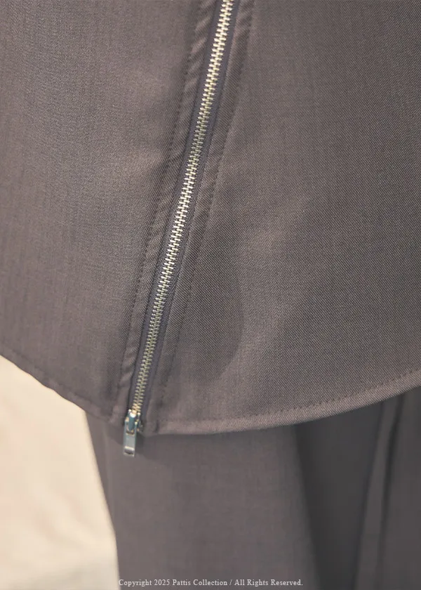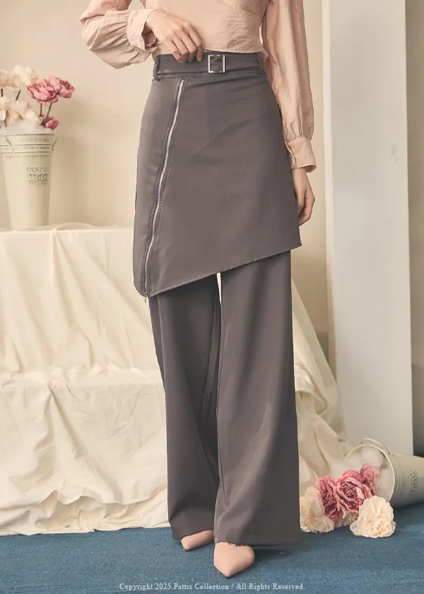 開放式故事結尾 | 拉鍊繫帶雙層造型西裝寬褲(深灰)