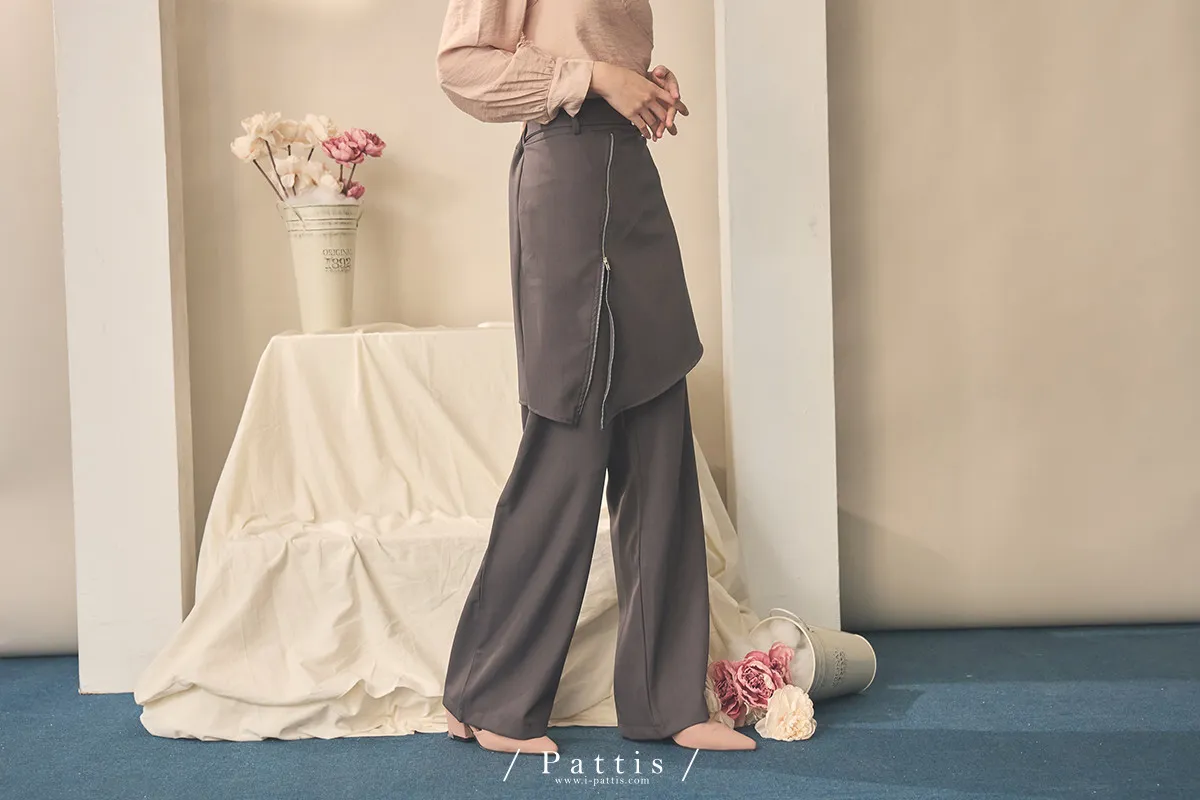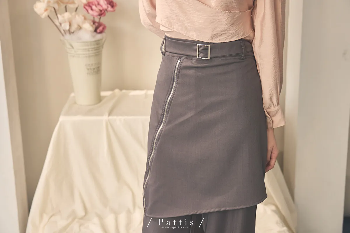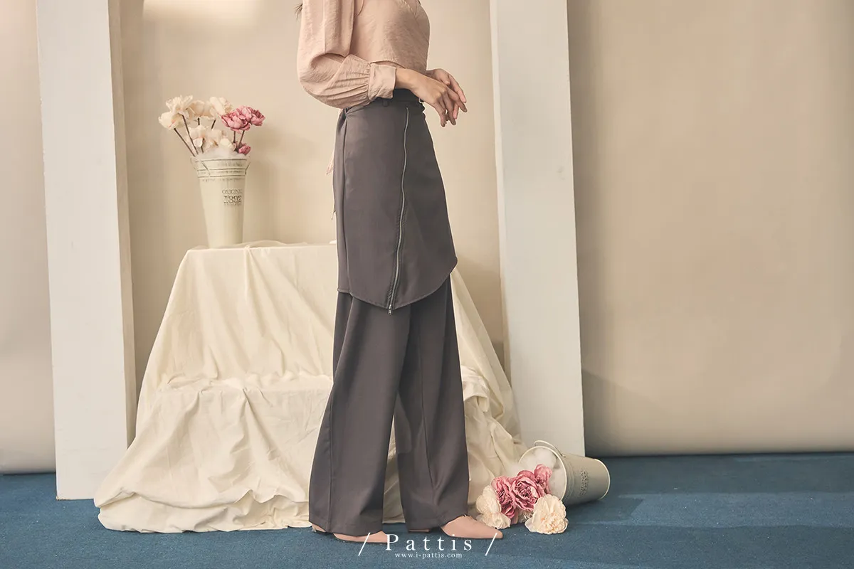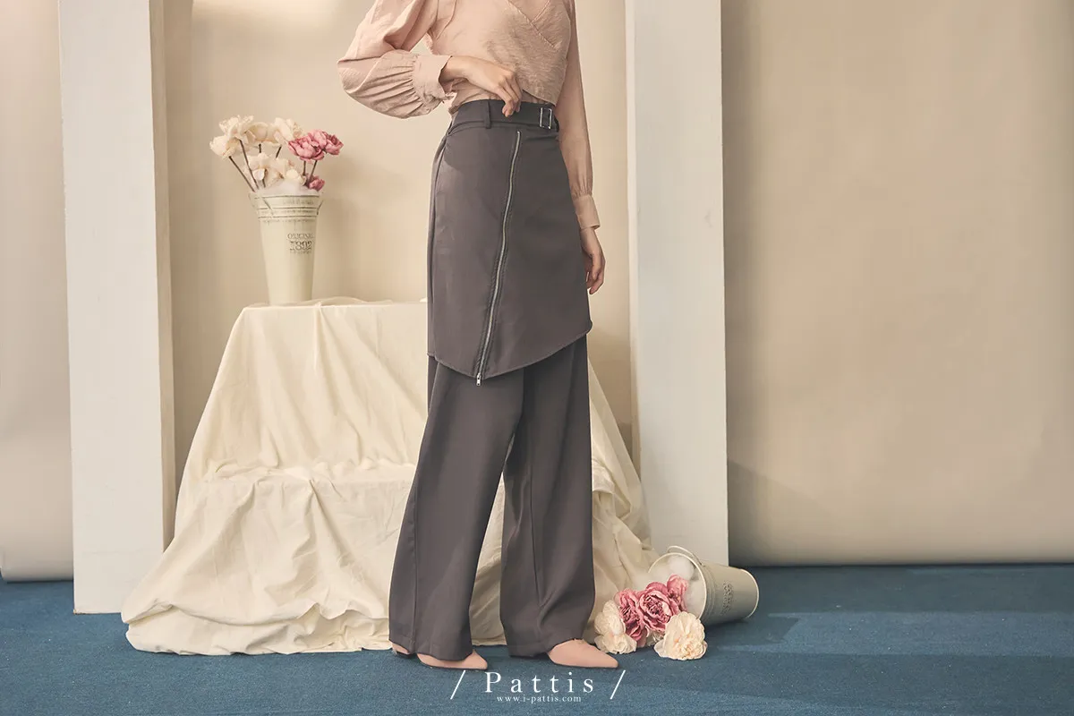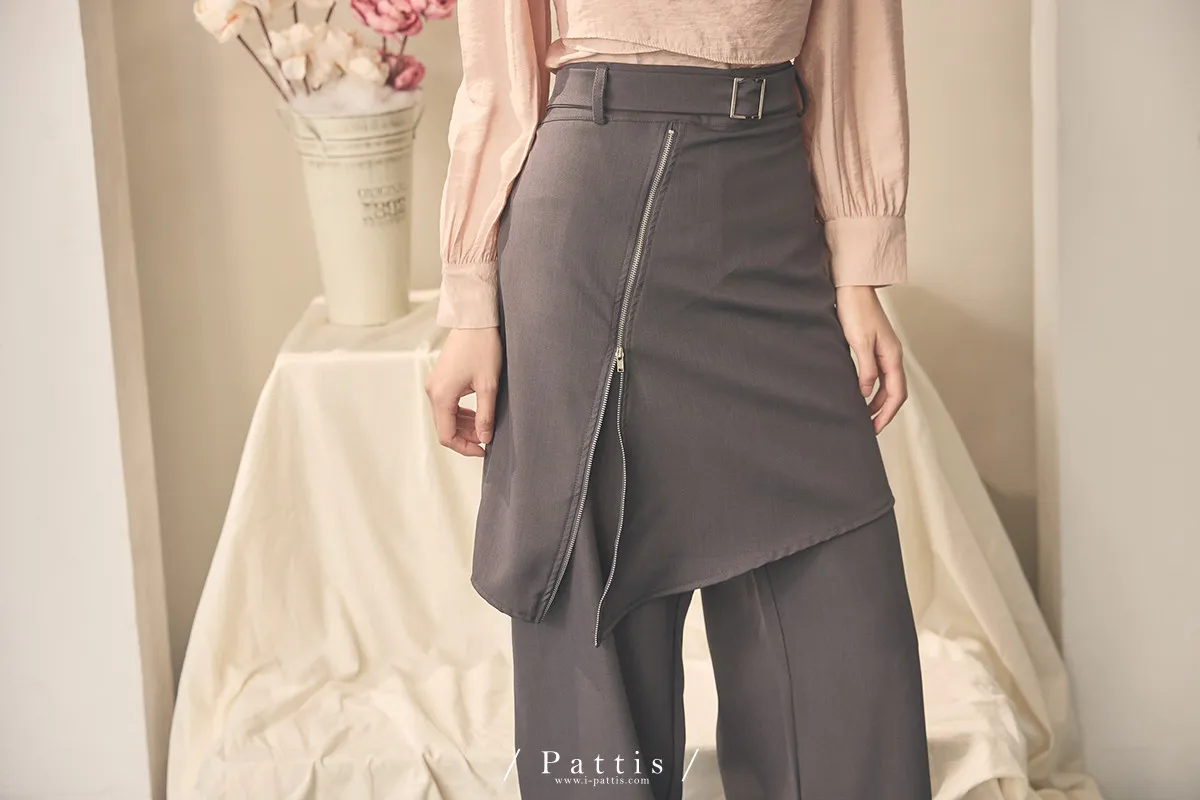 (現貨) 開放式故事結尾 | 拉鍊繫帶雙層造型西裝寬褲(深灰)