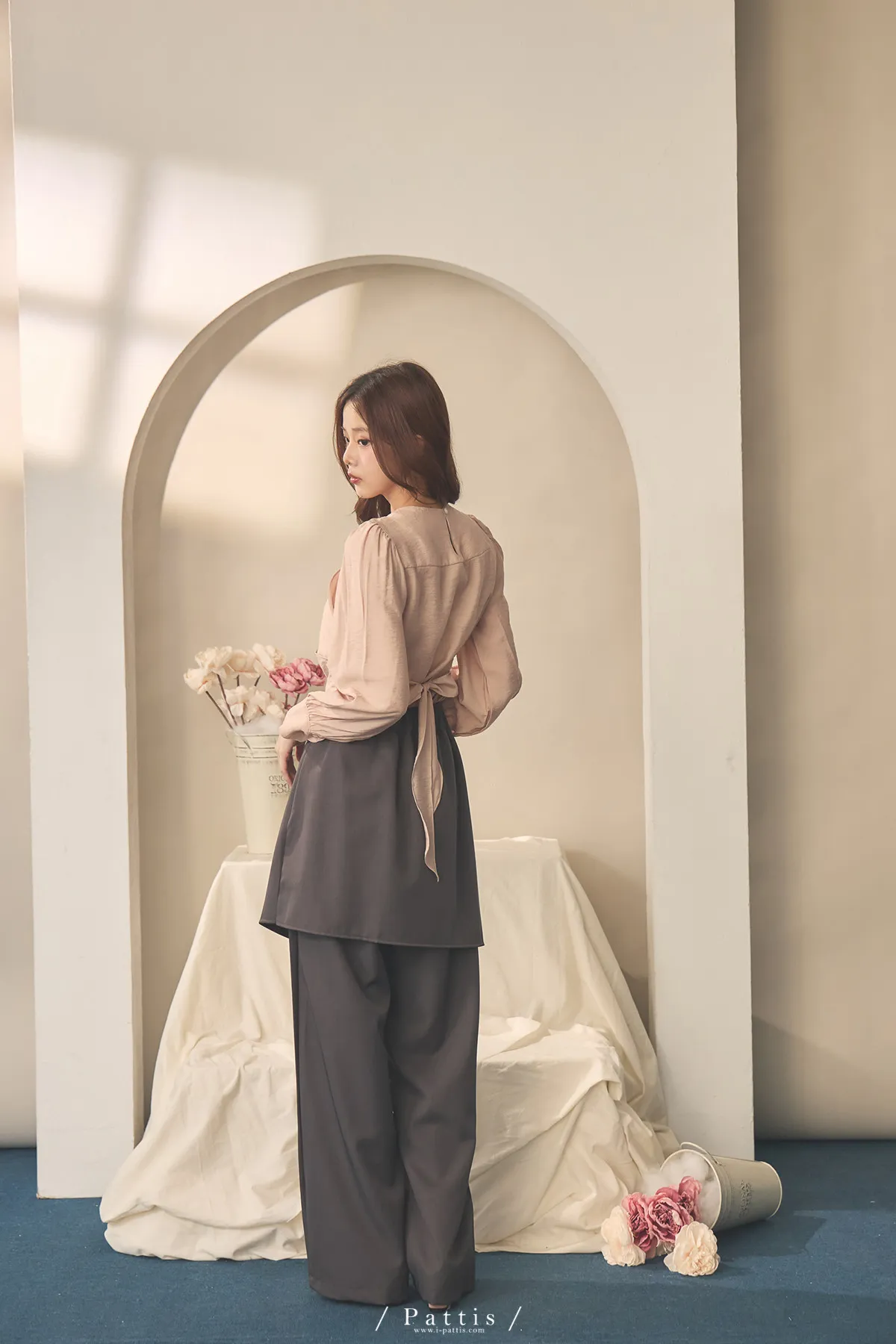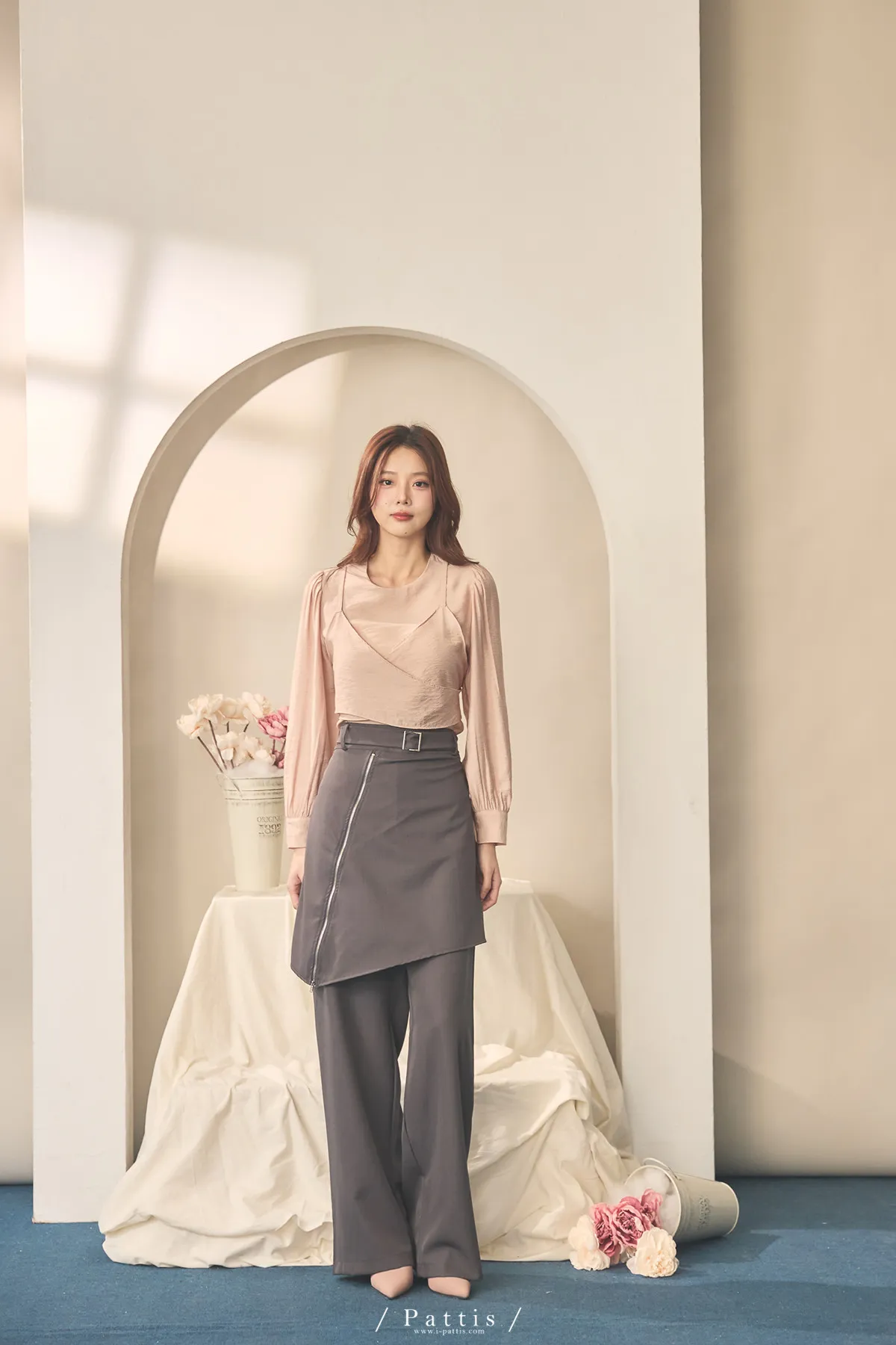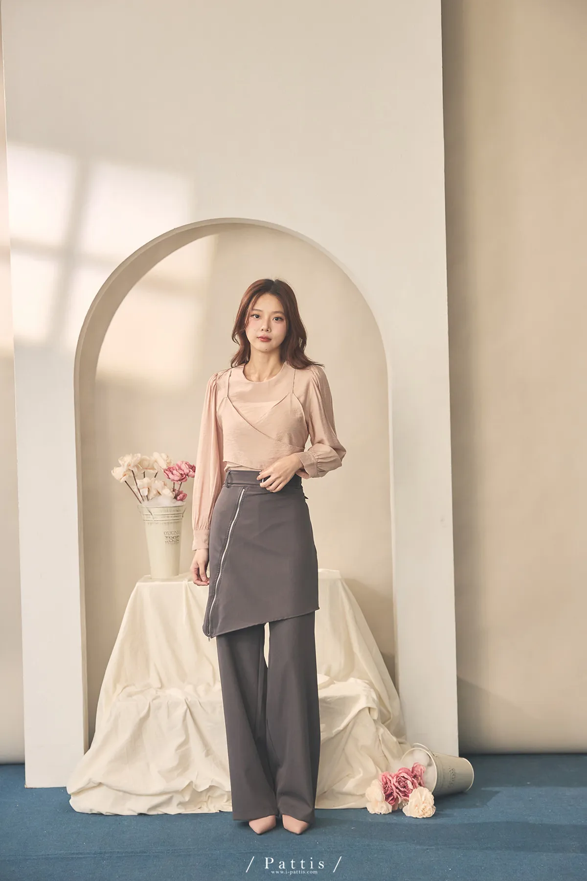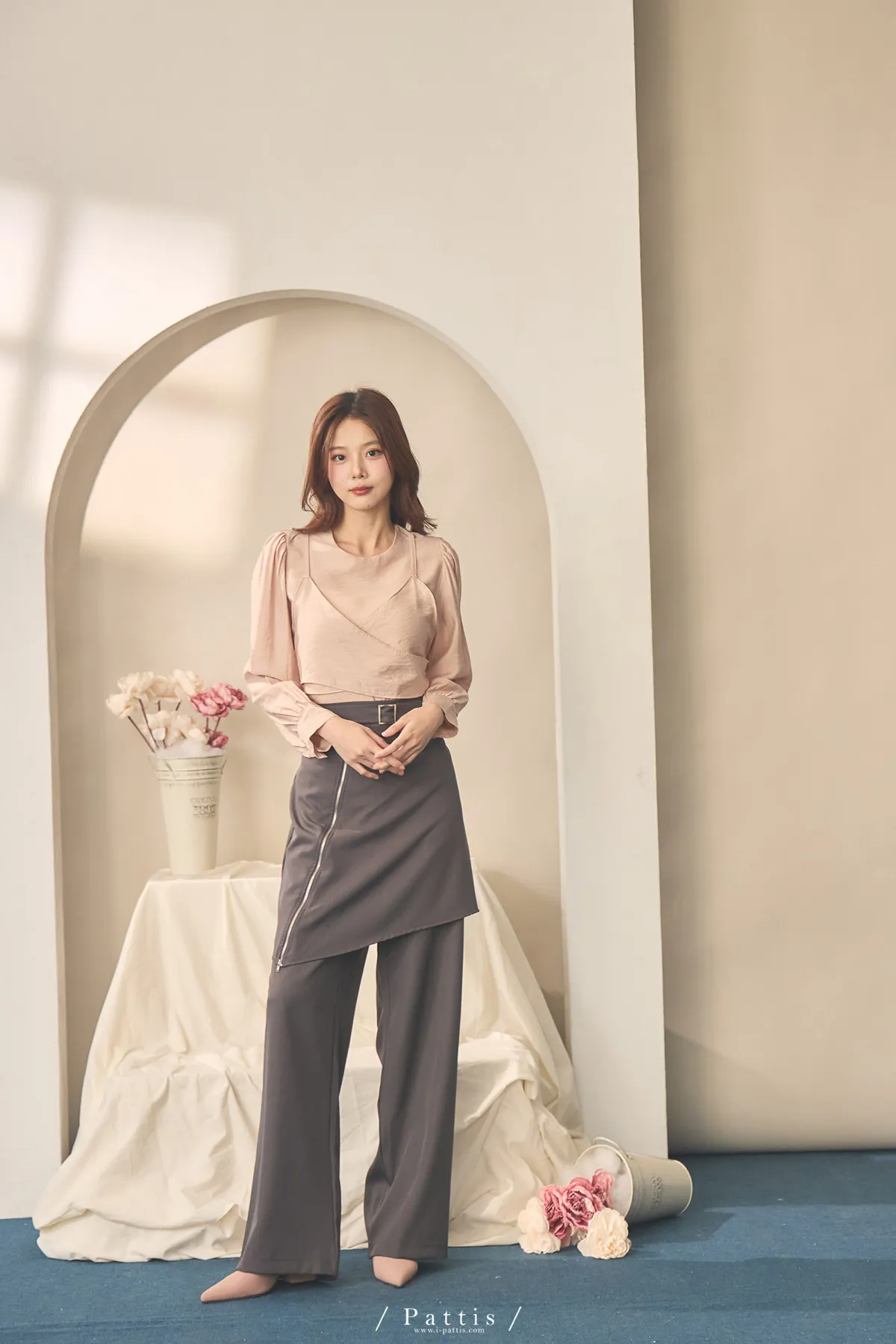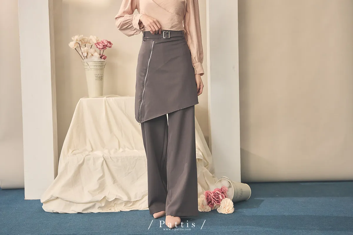 (現貨) 開放式故事結尾 | 拉鍊繫帶雙層造型西裝寬褲(深灰)