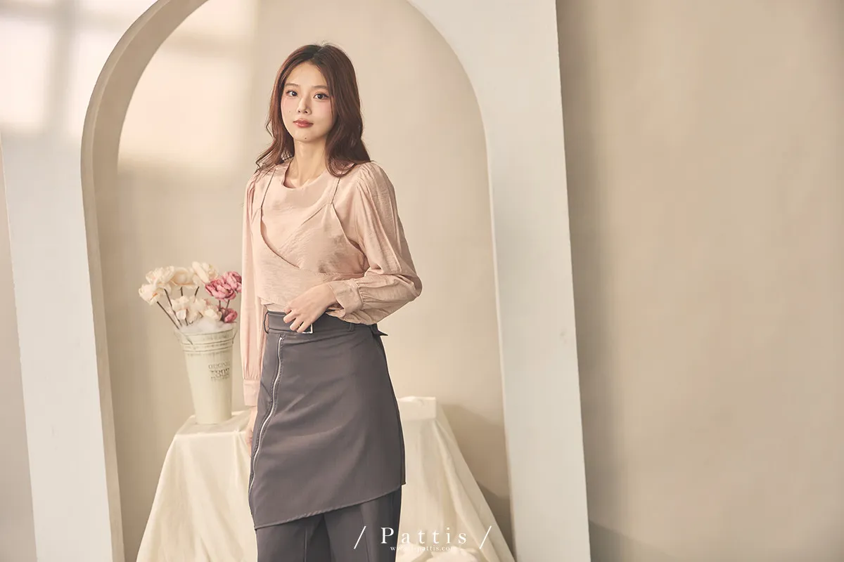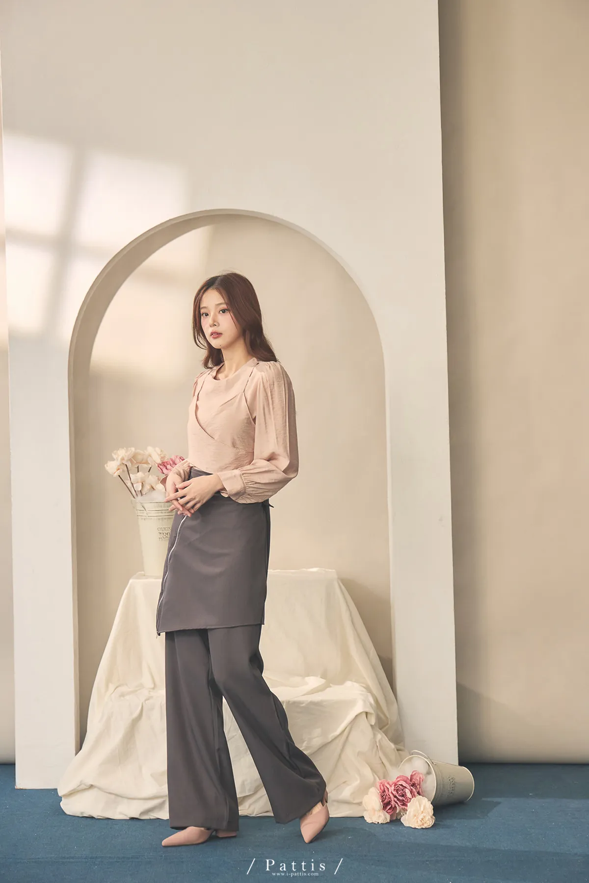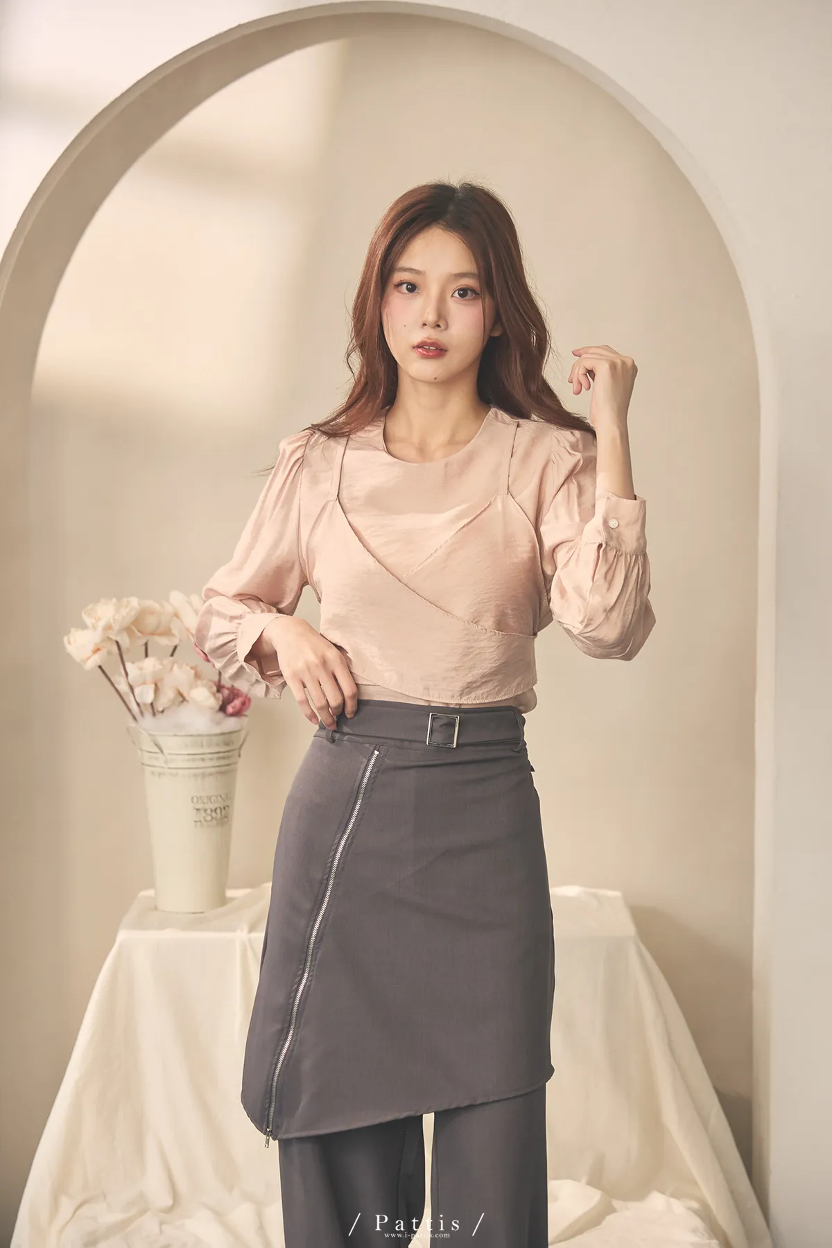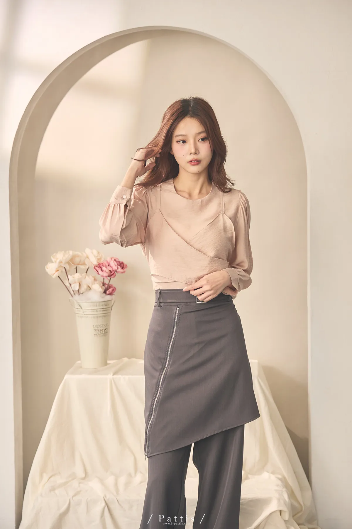 (現貨) 開放式故事結尾 | 拉鍊繫帶雙層造型西裝寬褲(深灰)
