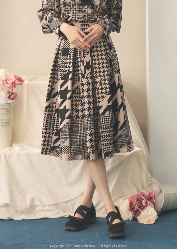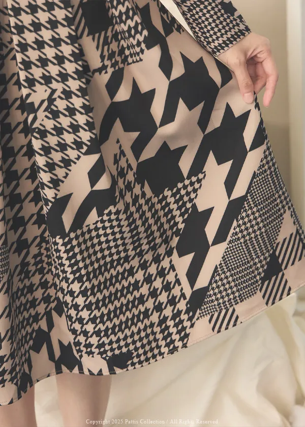 候鳥紛歸 | 拼接千鳥格紋壓摺裙(棕)
