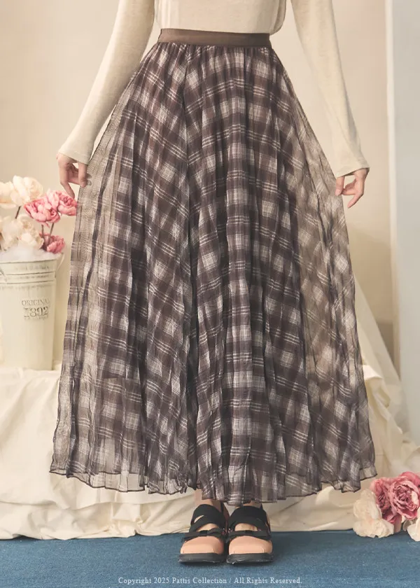 *特*巧克力請加點萊姆酒 | 雙色格紋百褶鬆緊紗裙(米棕)