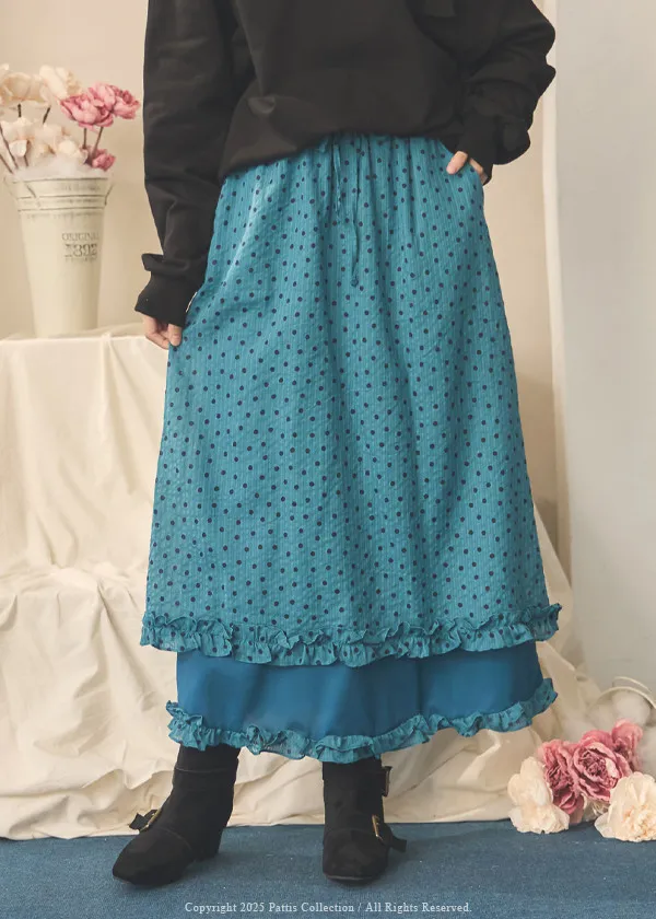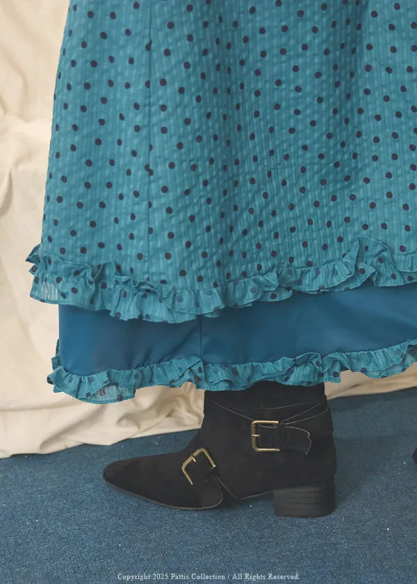 終點定在象牙海岸 | 雙層綴荷葉邊圓點皺皺長裙(藍綠)