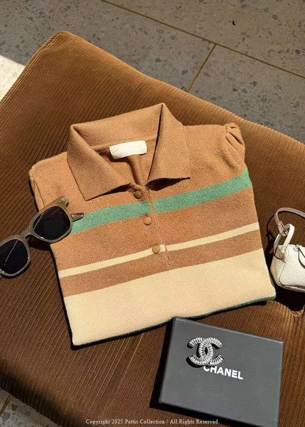 海天地層都是畫布 | 條紋多彩針織領上衣(咖啡)