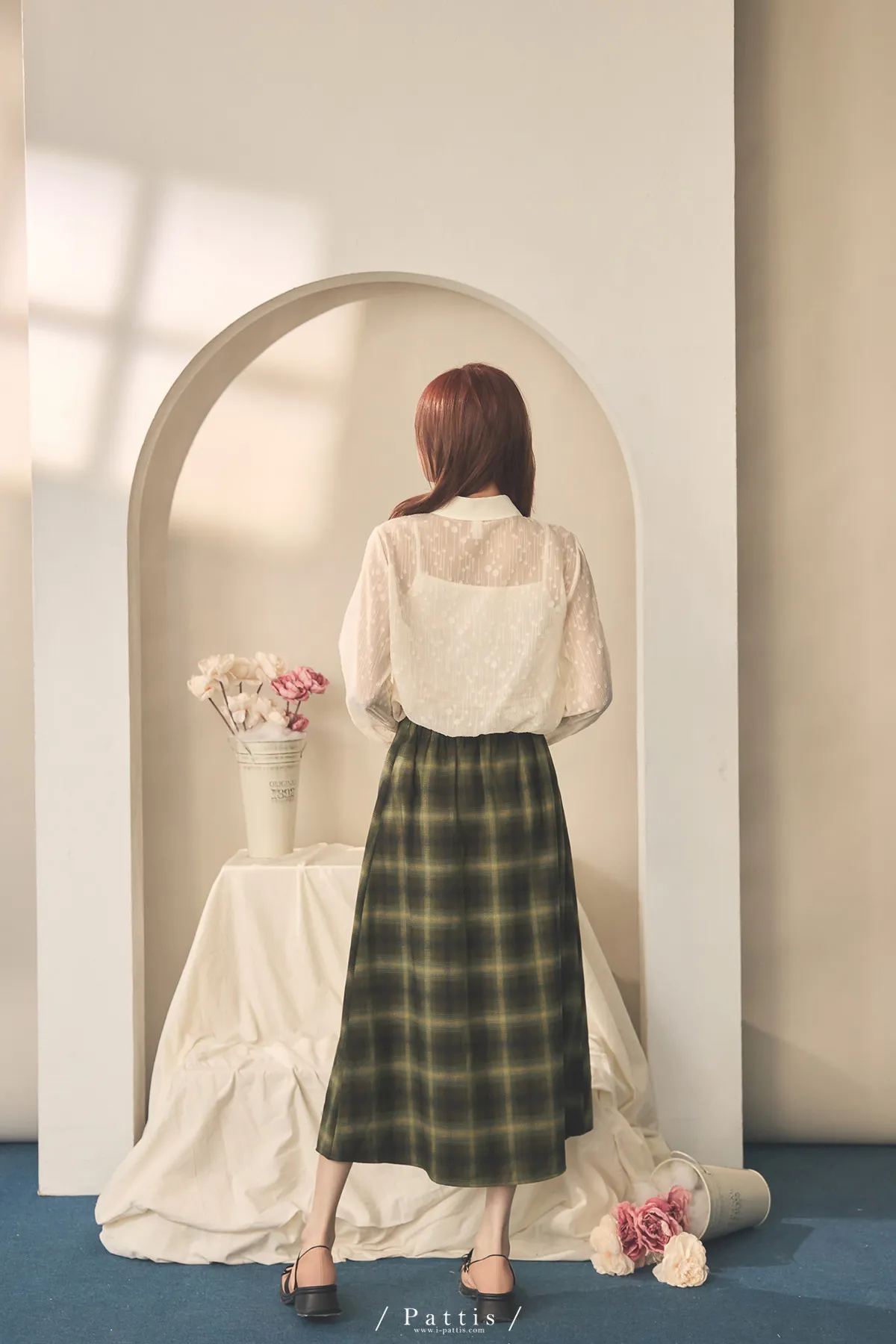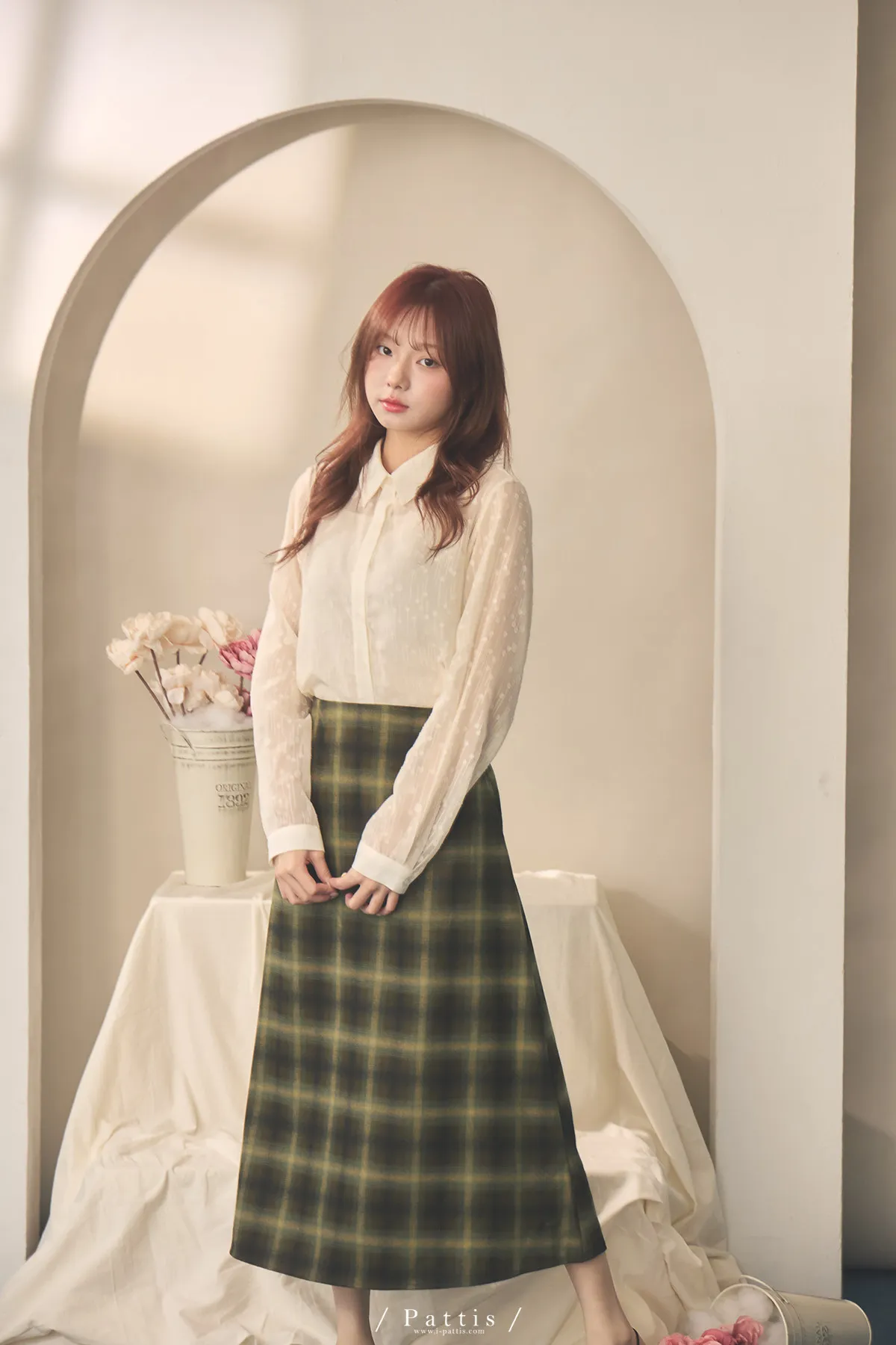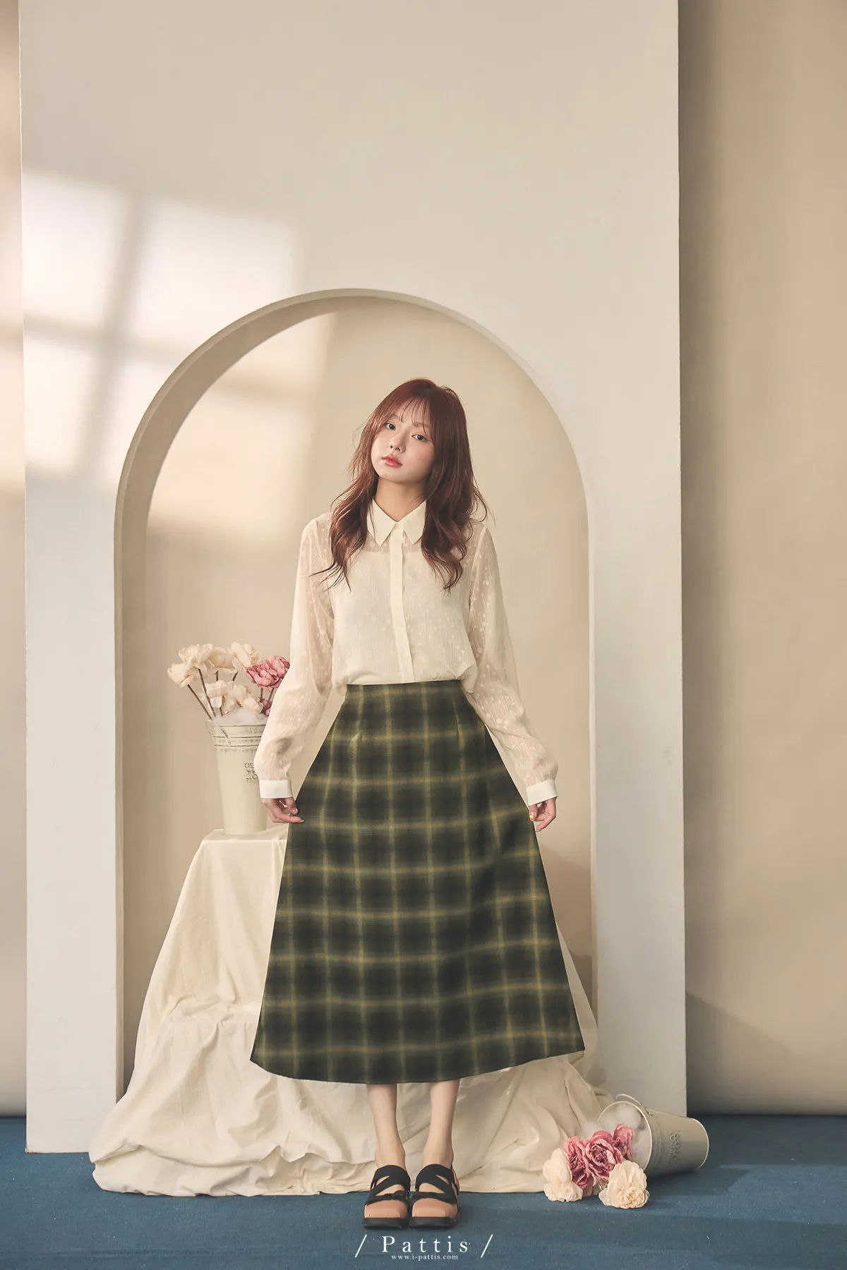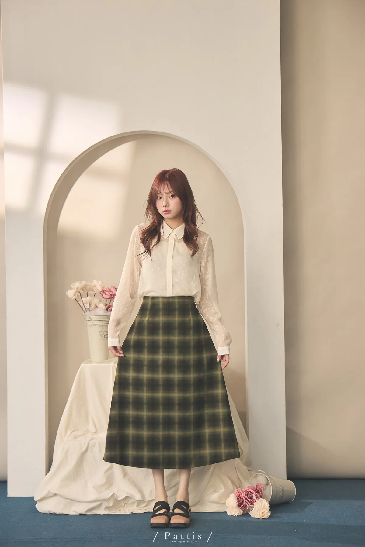 (現貨) *特*毛呢錯視感格紋長裙(黃綠)