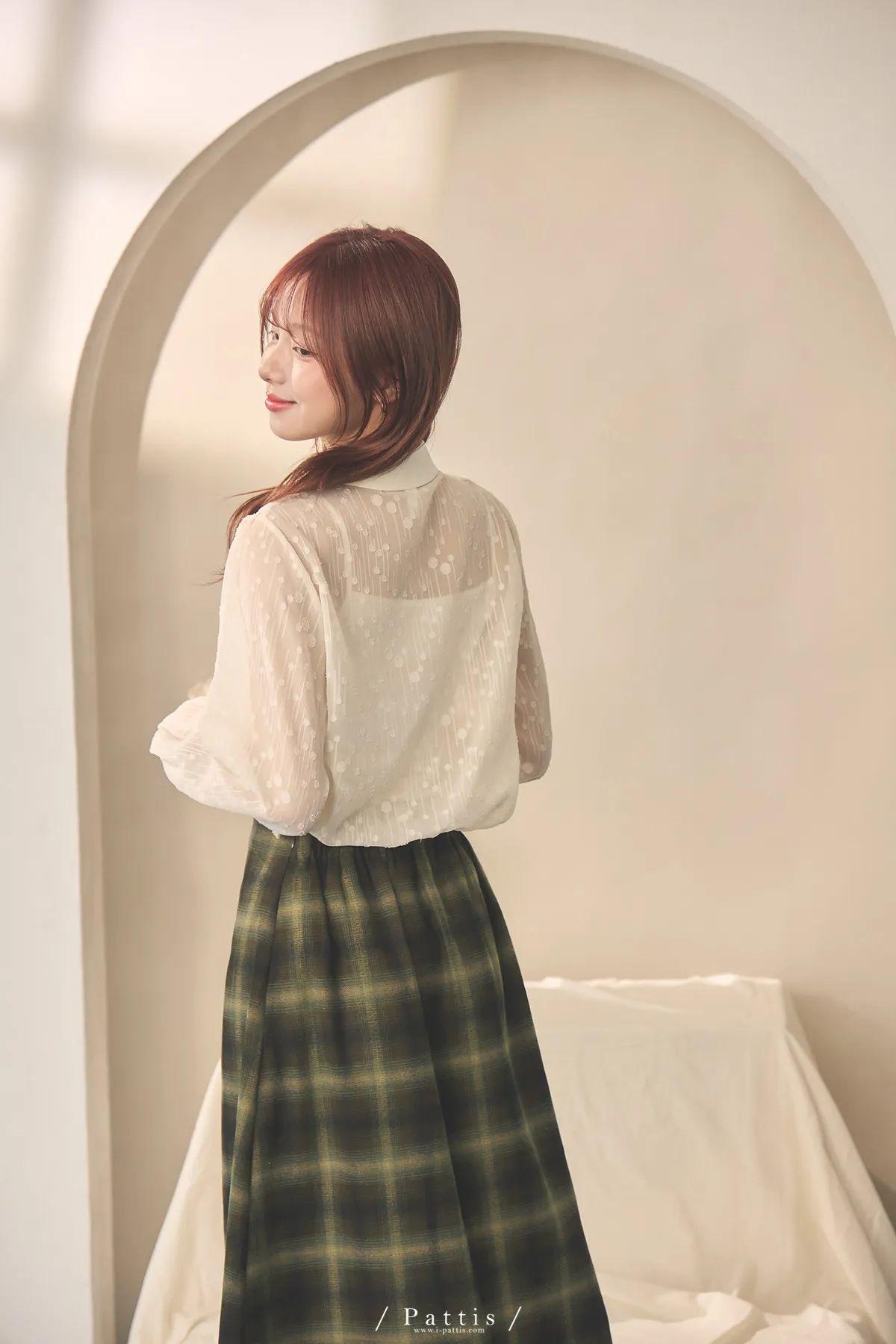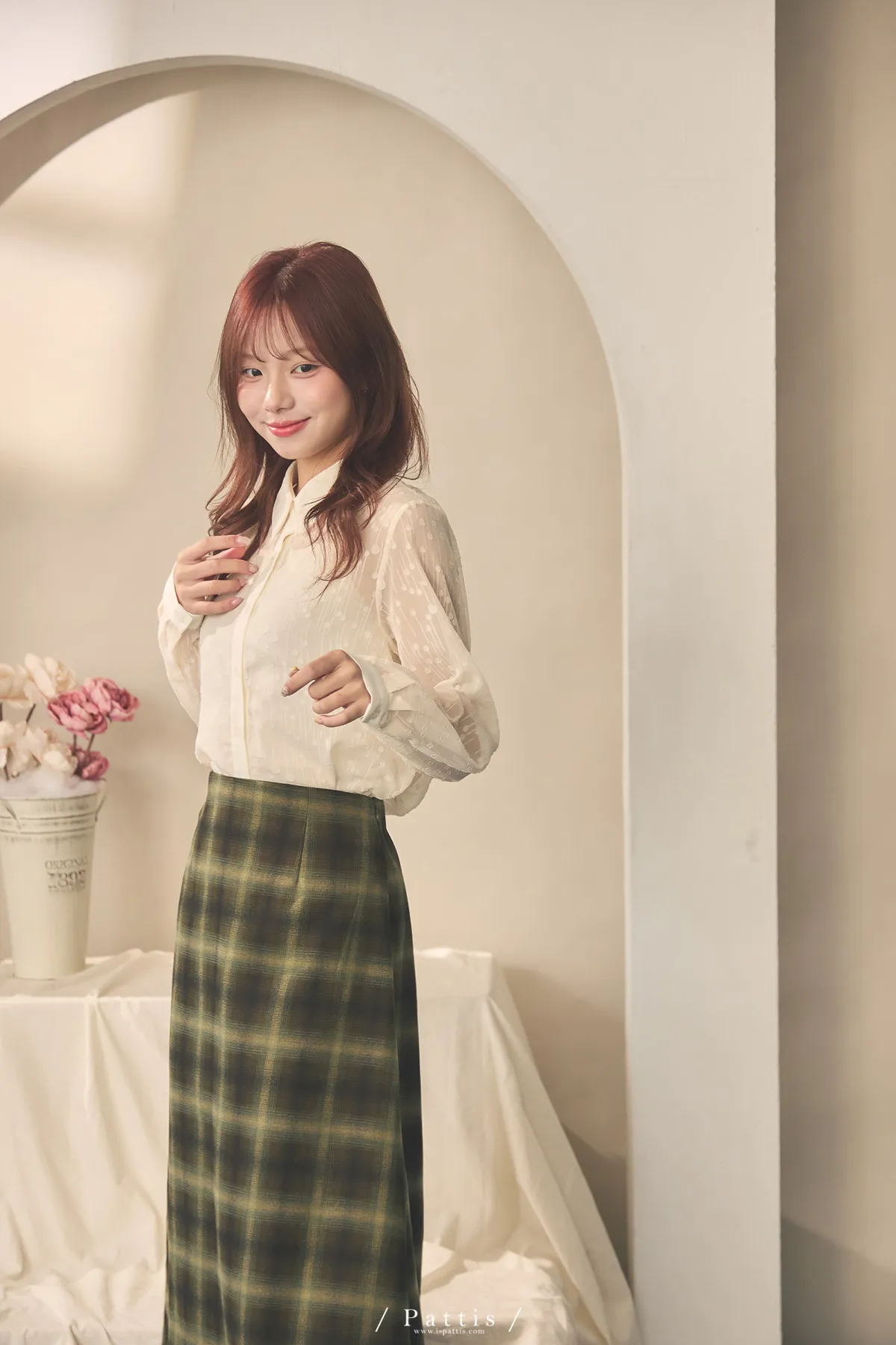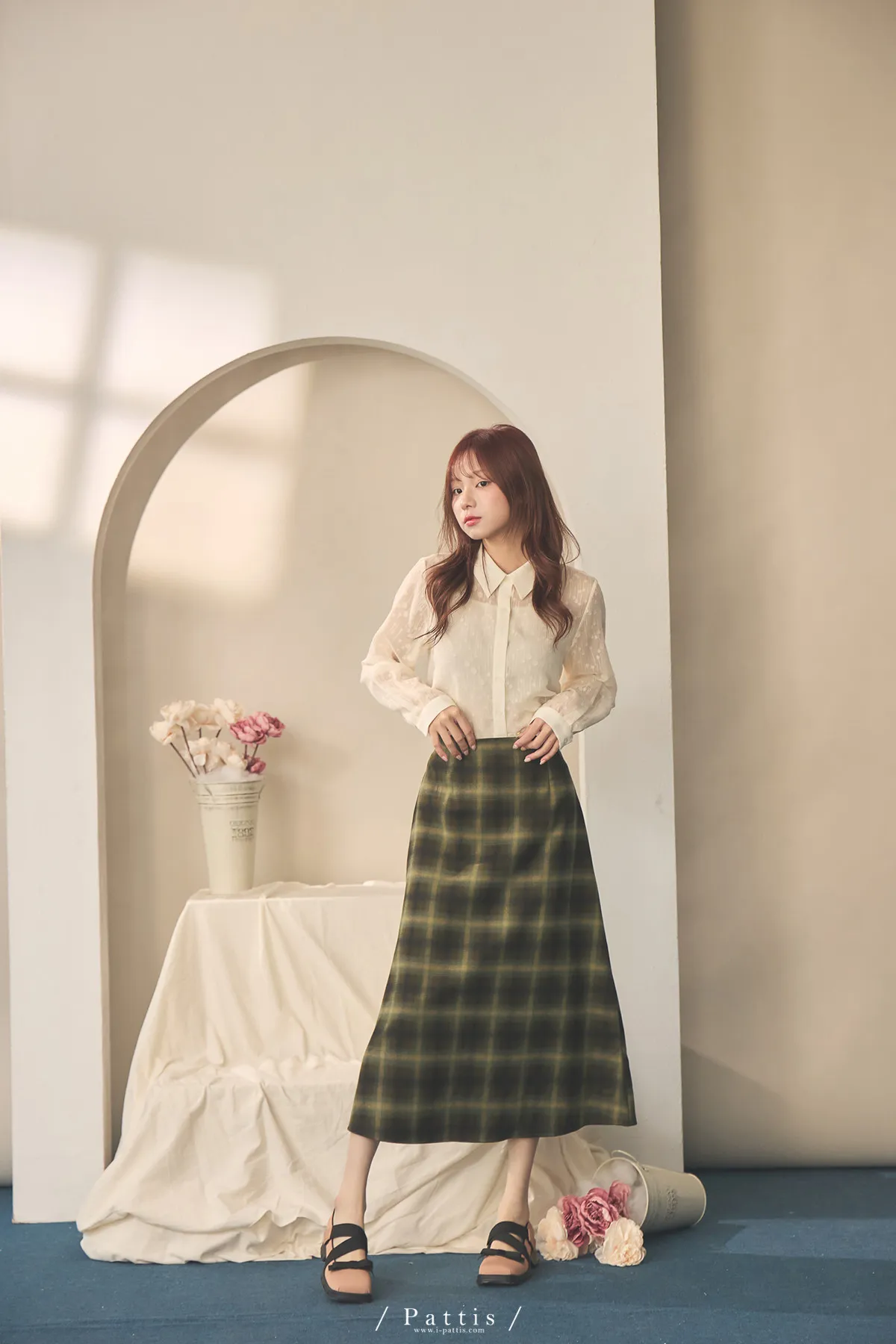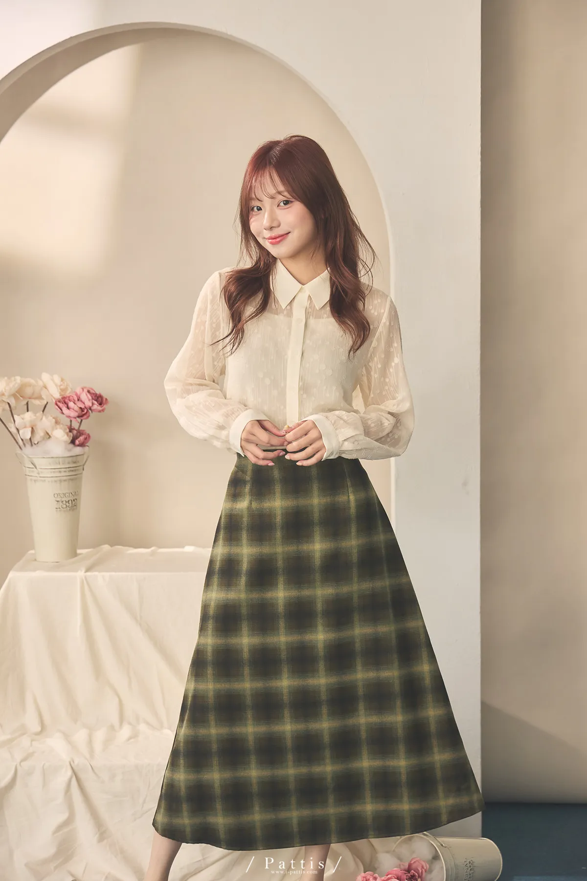 (現貨) *特*毛呢錯視感格紋長裙(黃綠)