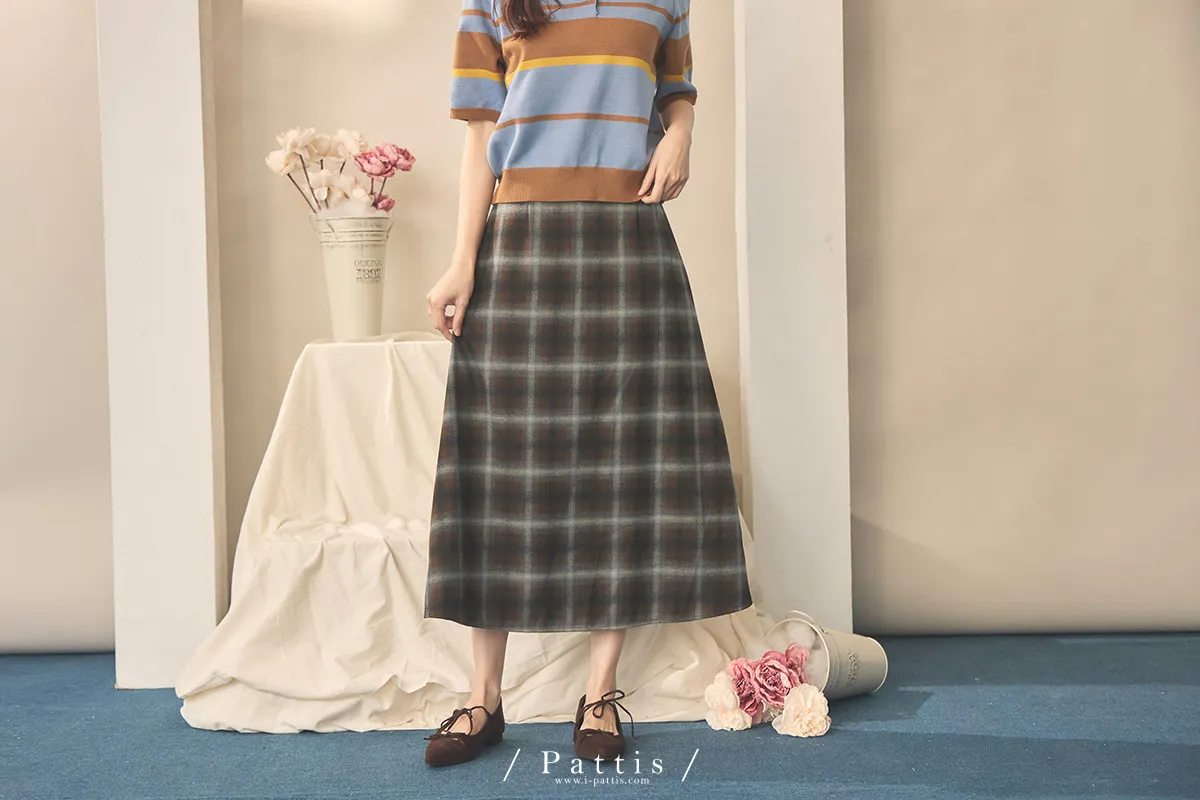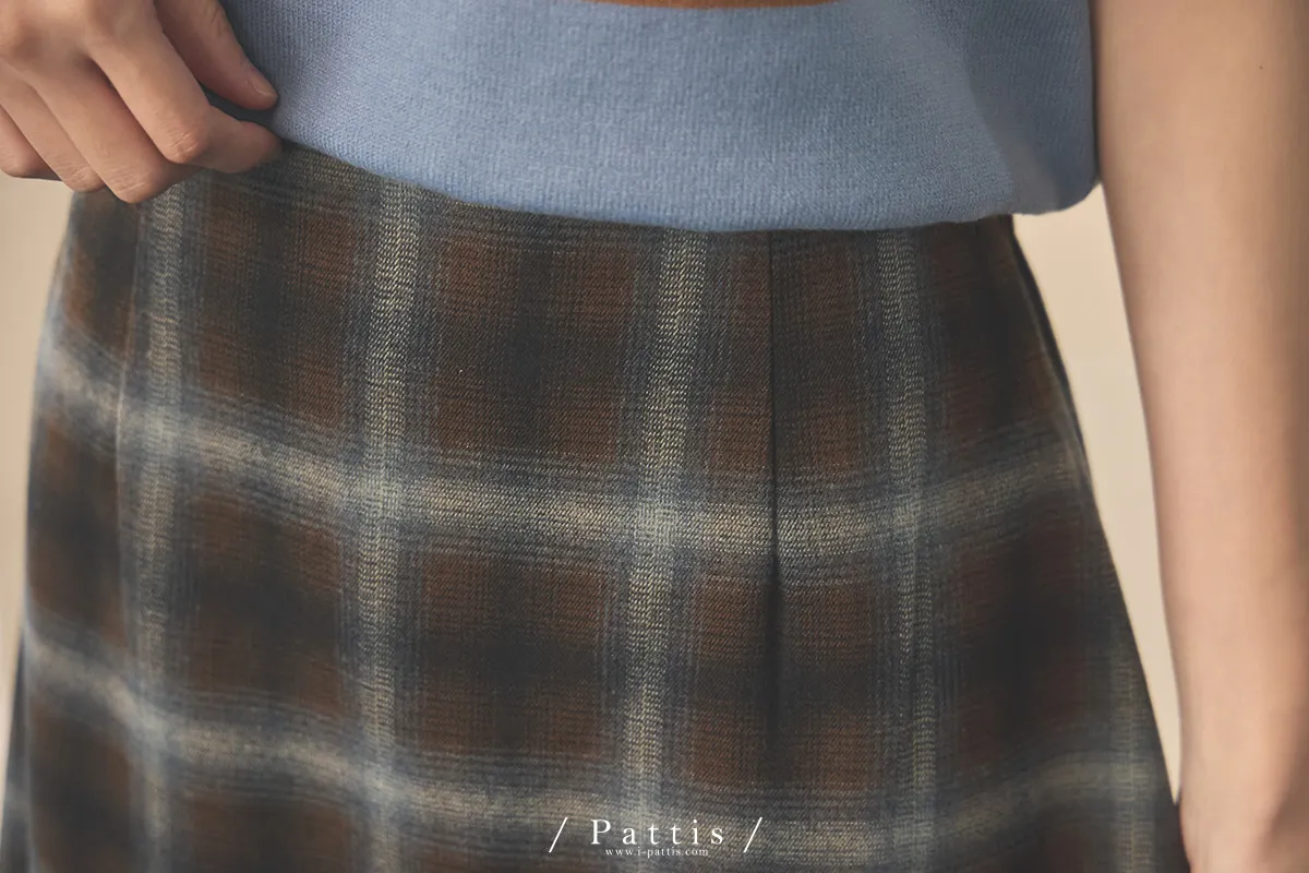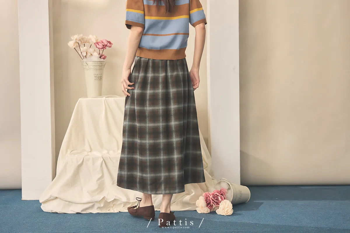 (現貨) *特*毛呢錯視感格紋長裙(黑)