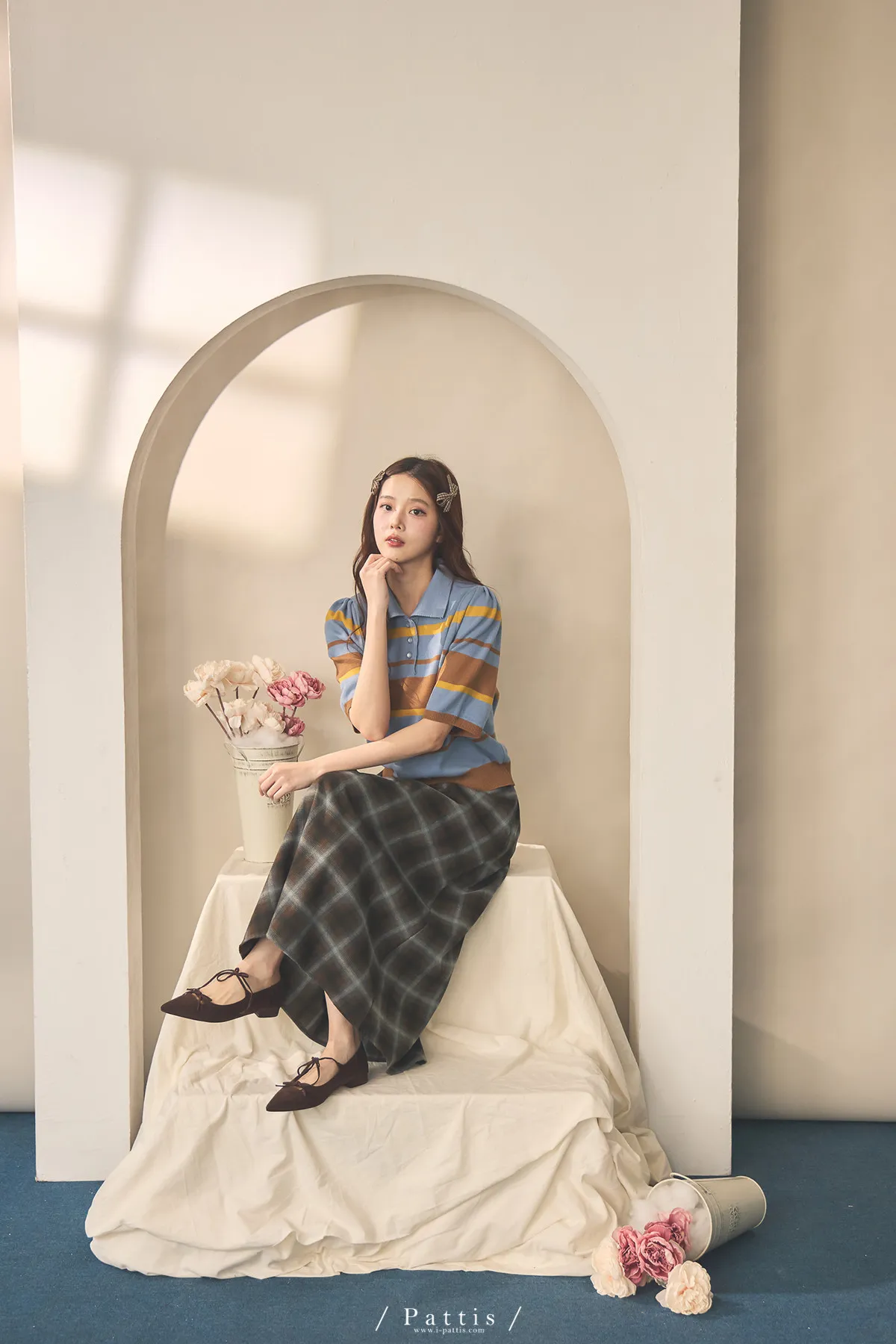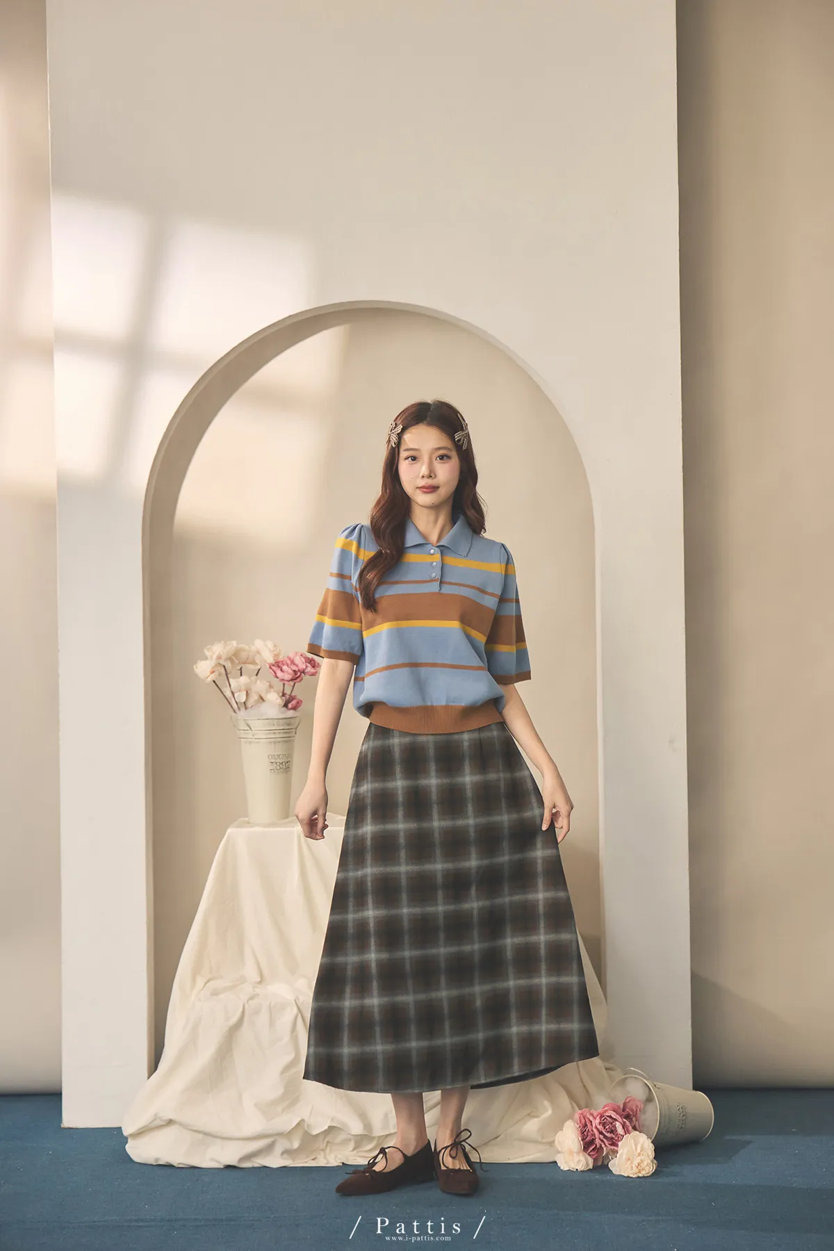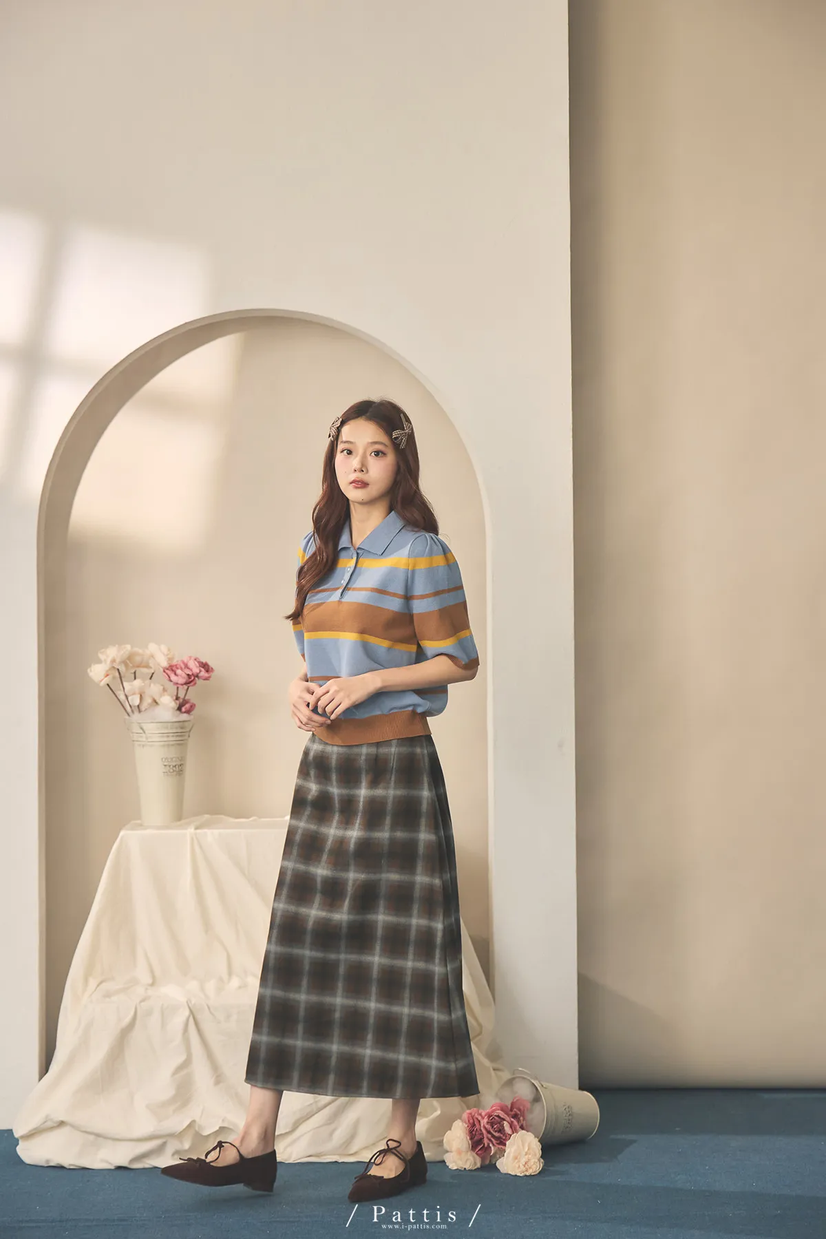 (現貨) *特*毛呢錯視感格紋長裙(黑)